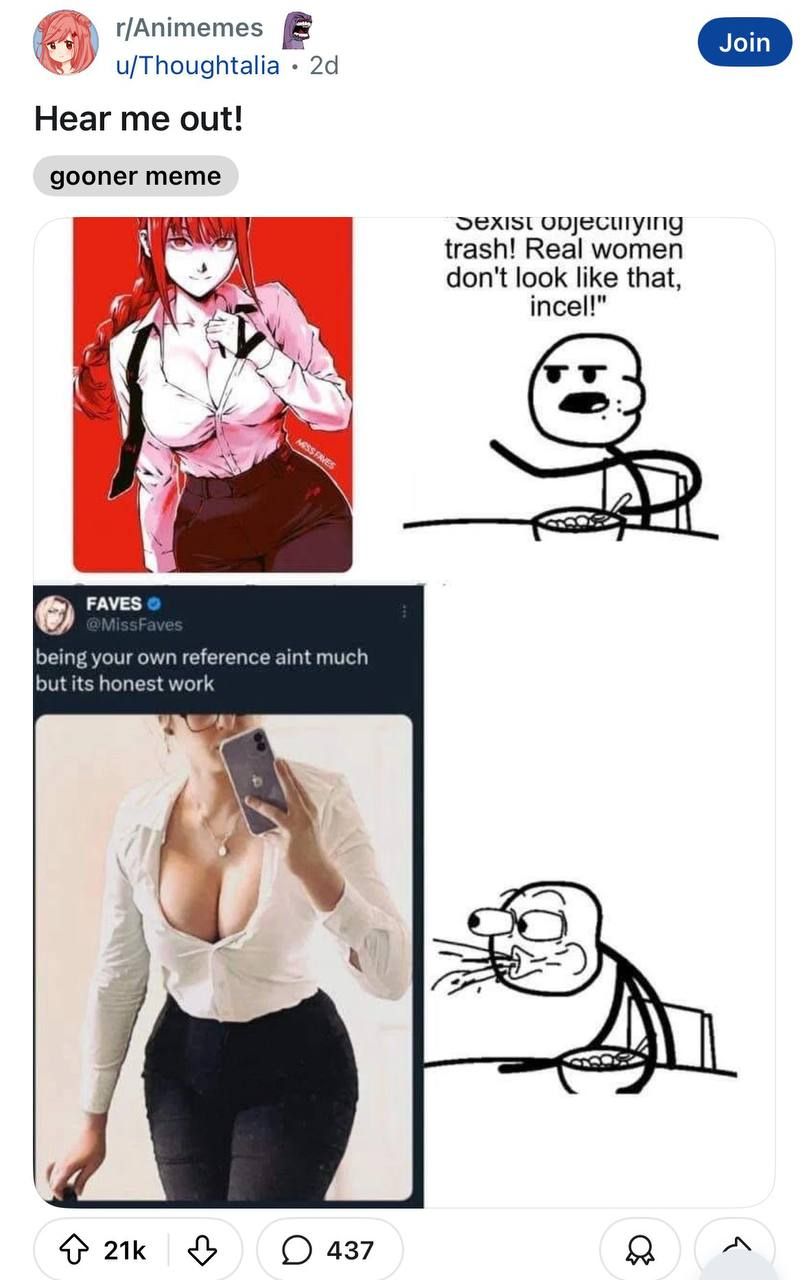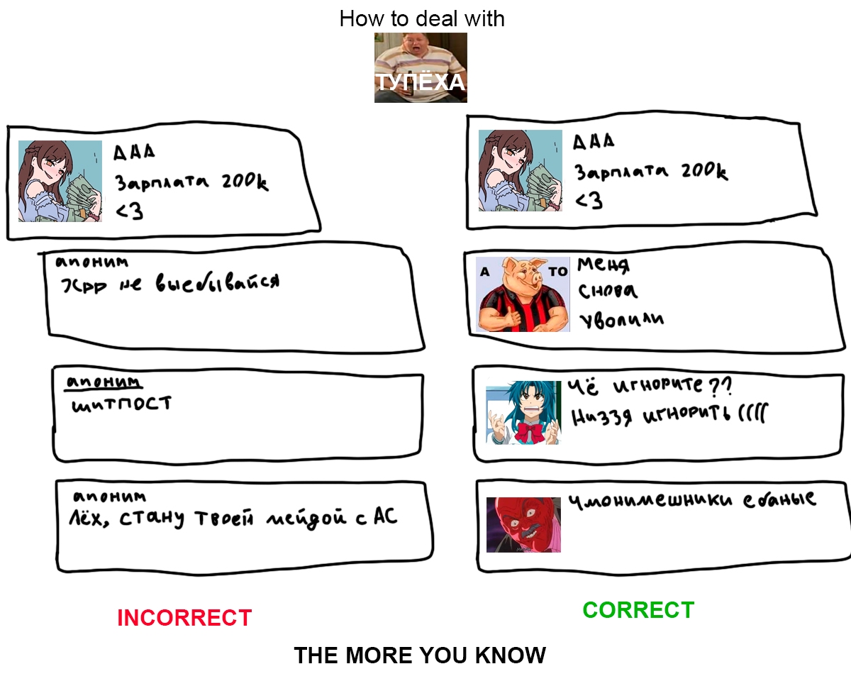 >>1050213 >так она буквально ныла, что мужик не тот, а мужика пиздец хочется, она готова даже за жирного скуфа лишь бы человеком был Буквально инцелы итт, которые сперва ноют что хочется тяночку и готовы на любую, а если поковырять немного то выяснится что там нужна 12/10 Стейси девственница верная бессребреница, которая будет любить этого шизика потому что прост, и на меньшее они не согласны.