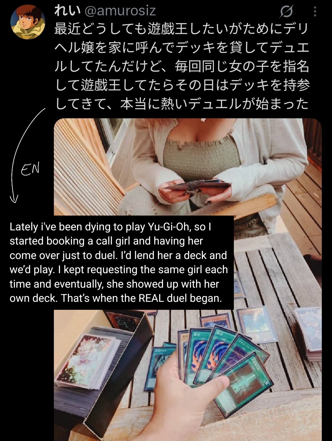Да и вообще в оригинально посте было написано не про свиданки за бабки, а буквально дерихеру - проститутка по вызову. Так что кто там в этих отношениях на самом деле в плюсе не сразу понятно.