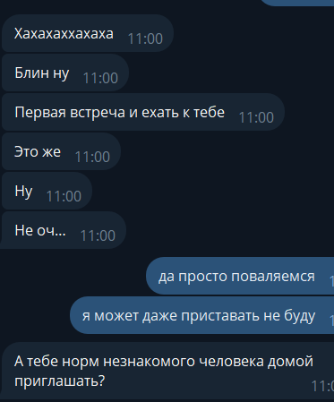 >она сразу , что МУЖИК ДОЛЖЕН СДЕЛАТЬ ПЕРВЫЙ ШАГ, ряяя, это неправильно когда женщина первой Значит твой братюня её не устраивает и все. К чедам сами на хуй лезут как к тебе та баба, которая ночью полезла ширинку расстегивать чтобы начать сосать.