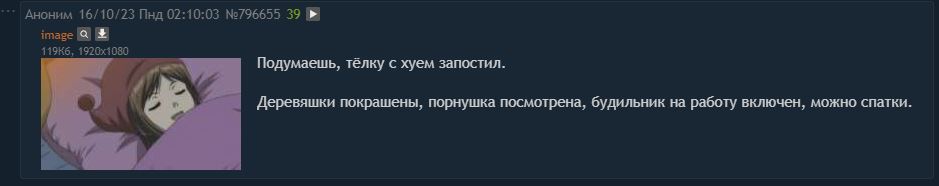>>1050222 >Сколько ей лет? Наверняка 40+, а где она была в 25-35, отшила всех мужиков нахуй, а на таких как мы даже не посмотрела 28 >Надо было расспросить поточнее, мб там 80% мужского пола это "не мужчины" лан как-нибудь уточню если вновь ее на вписке увижу. >А че не сказал ей про этот тред? Ну хуй знает, я про двощ вообще стараюсь не говорить, это такая зараза похуже хмурого, засосет не выйдешь уже никогда из этой психотронной тюрьмы. >Значит твой братюня её не устраивает и все. К чедам сами на хуй лезут как к тебе та баба, которая ночью полезла ширинку расстегивать чтобы начать сосать. Ну может быть, хотя у братюни своя автомастерская и 200-300к ежемесячного дохода. Она про это знает.