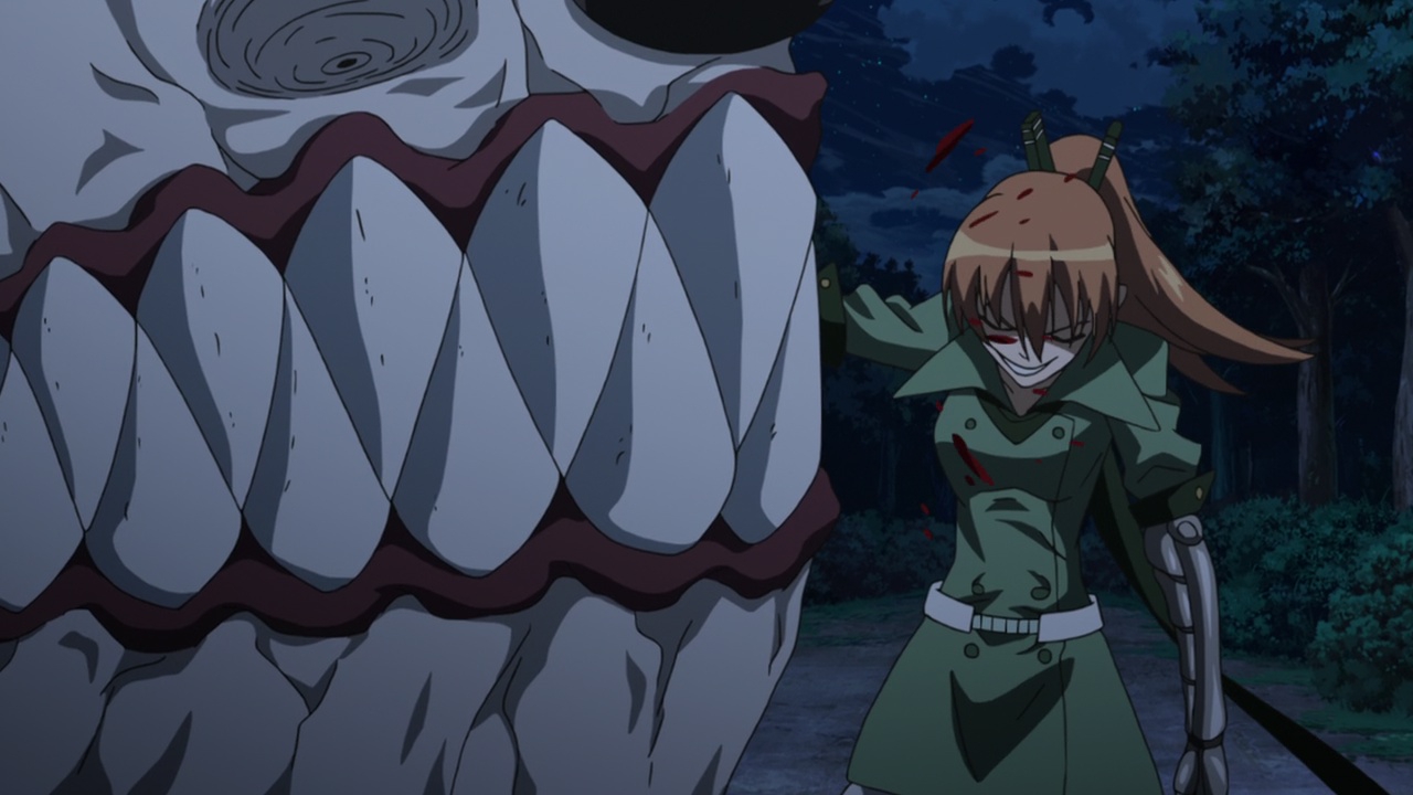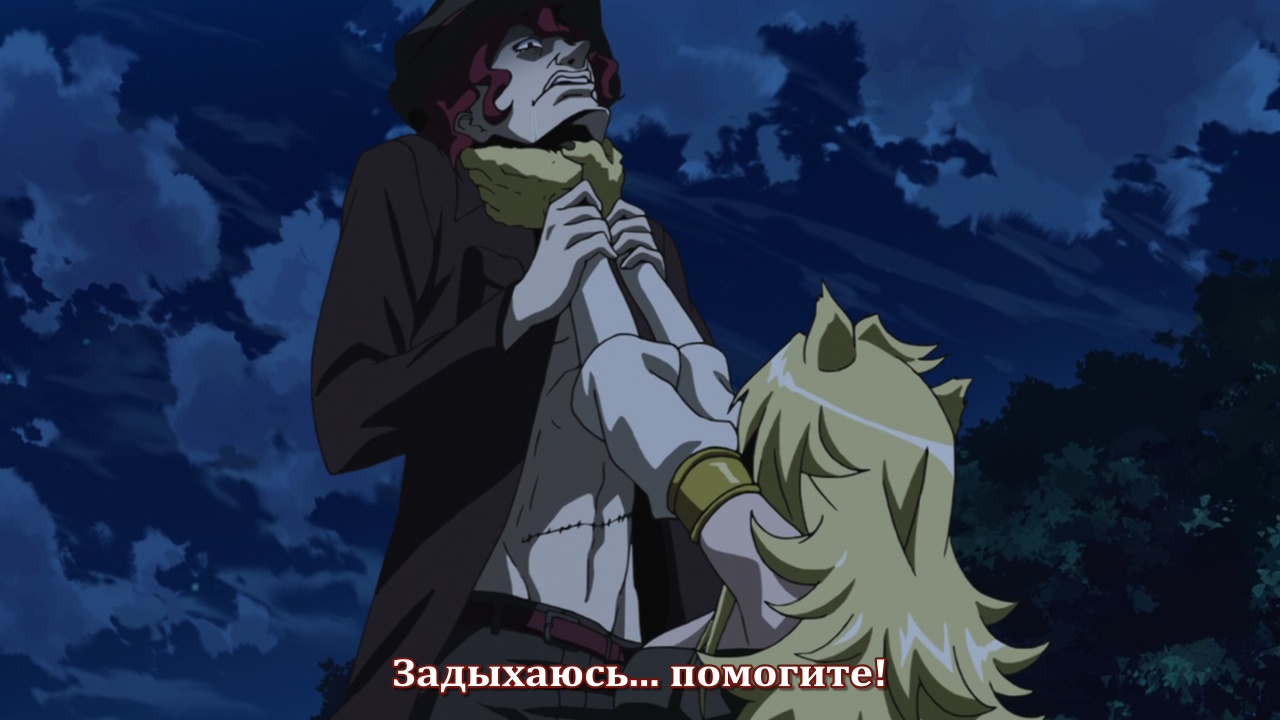Рассказ одной девки успевает занять одну серию, шлюшку-убийцу за её весьма уныло пиздят и девка выбывает из анимы. То есть, если мне понравился чардиз очкастой подрывняшки, у которой руки из жопы и которая взорвала своего наставника или чертоффки-гяру, которая постоянно красит ногти и засовывает в рот всякие съедобные палки, то они выбыли в 04 и в 05 серии и дальше аниму можно не смотреть.