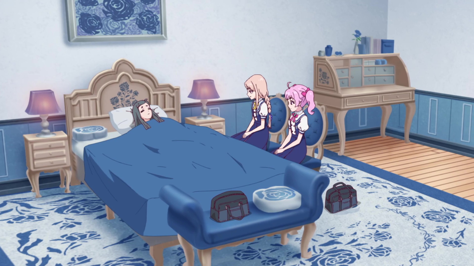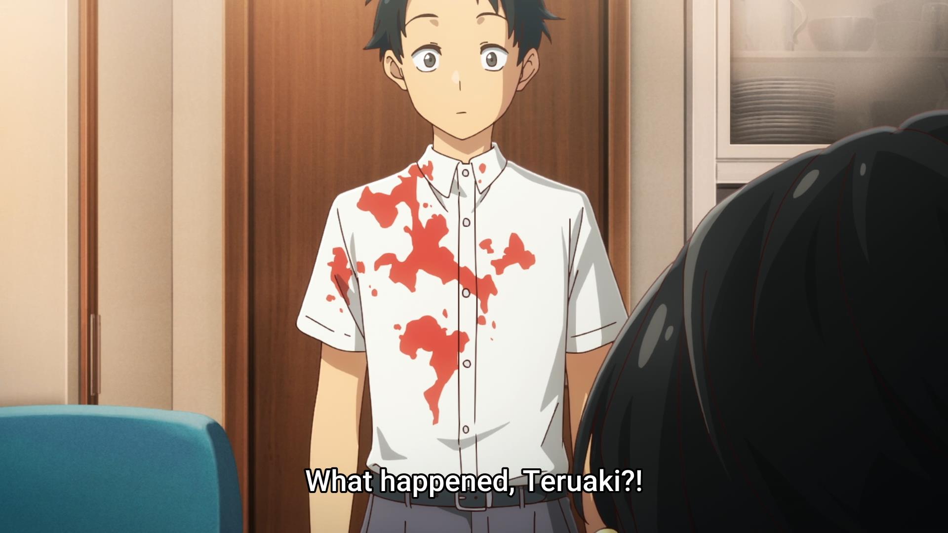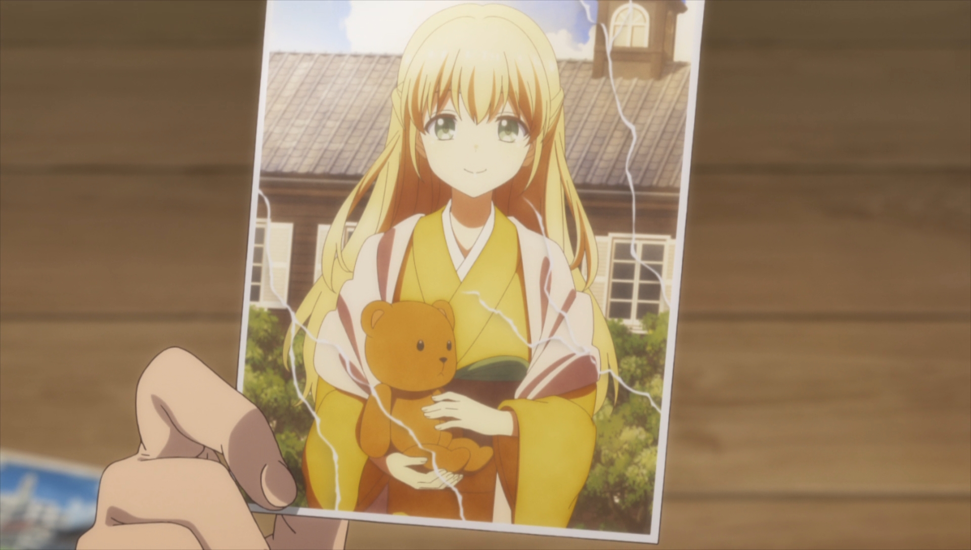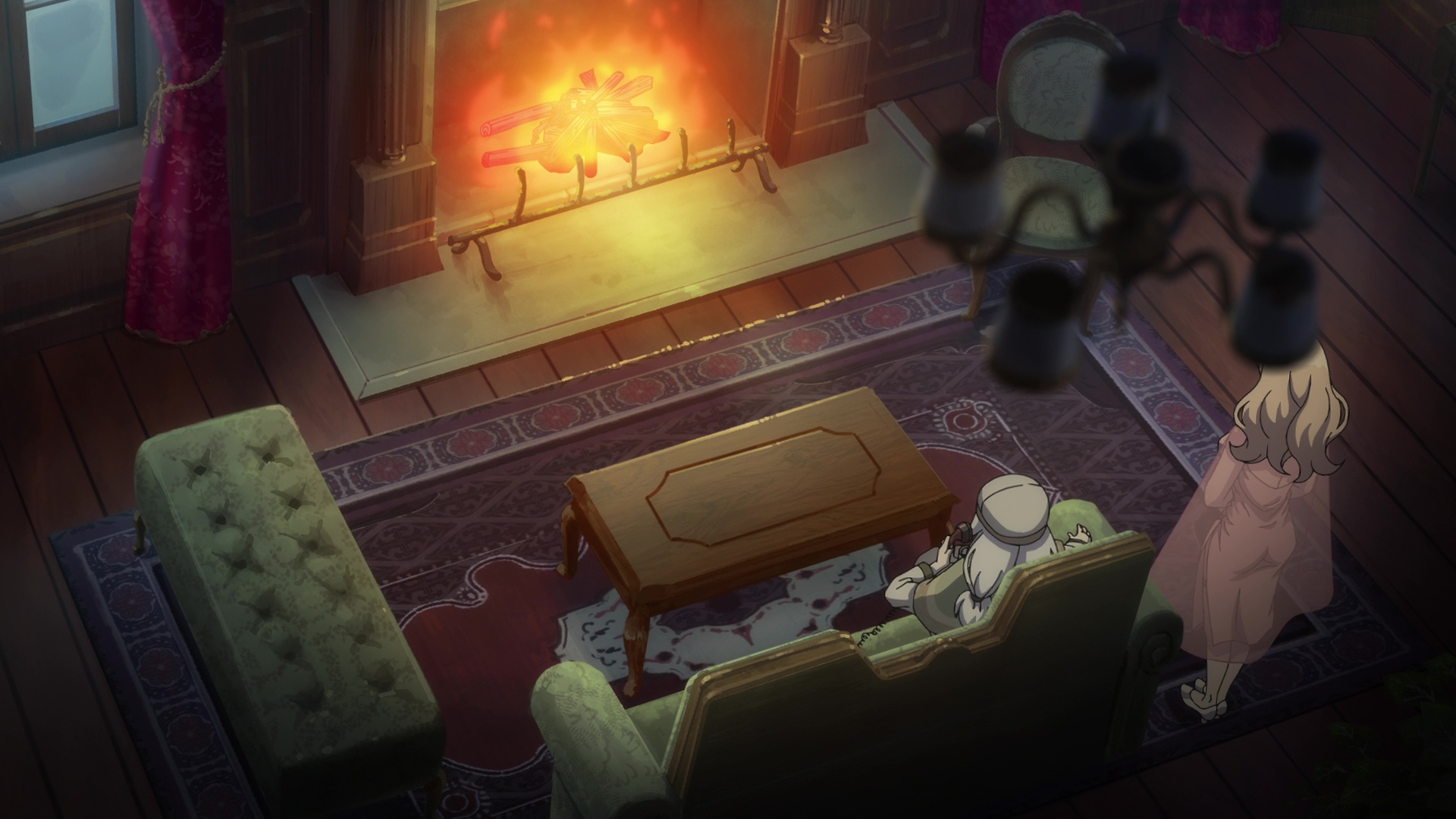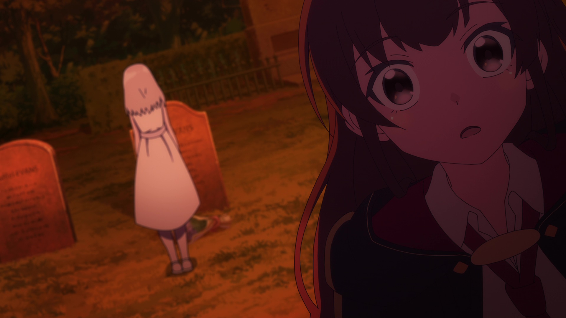 Я понимаю, что вам надо было изобразить больную девочку, и босиком и в ночнушке это общепринятый японский образ, но почему она где-то в ебенях играется, потом с грязными ногами и в соке от травы будет дальше на кровати болеть?
