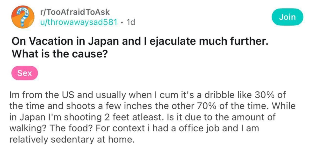 >>1052571 От этой хуйни говорят ваще пизда организму приходит, но раз чедик сказал надо кончать в пизду значит потерпит. Главное что не с японским омежкой инцелом, а со скандинавским гигачедом ебется
