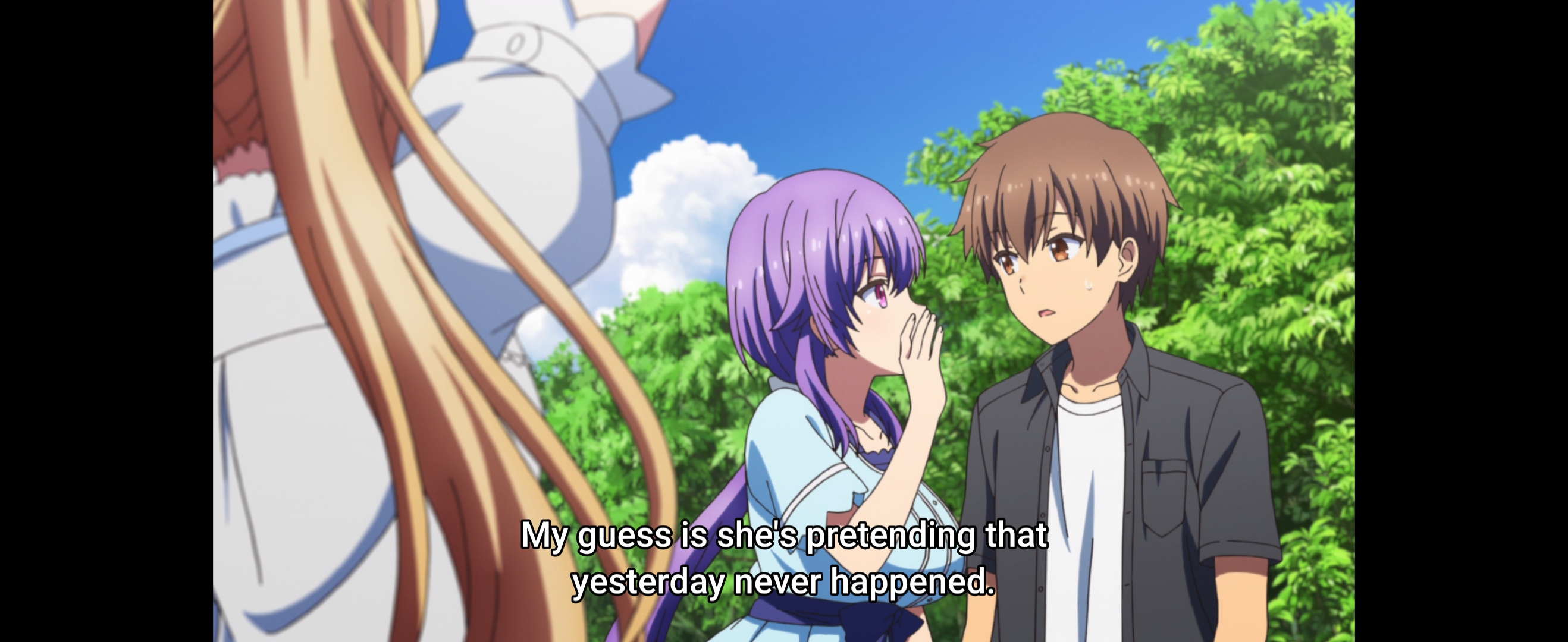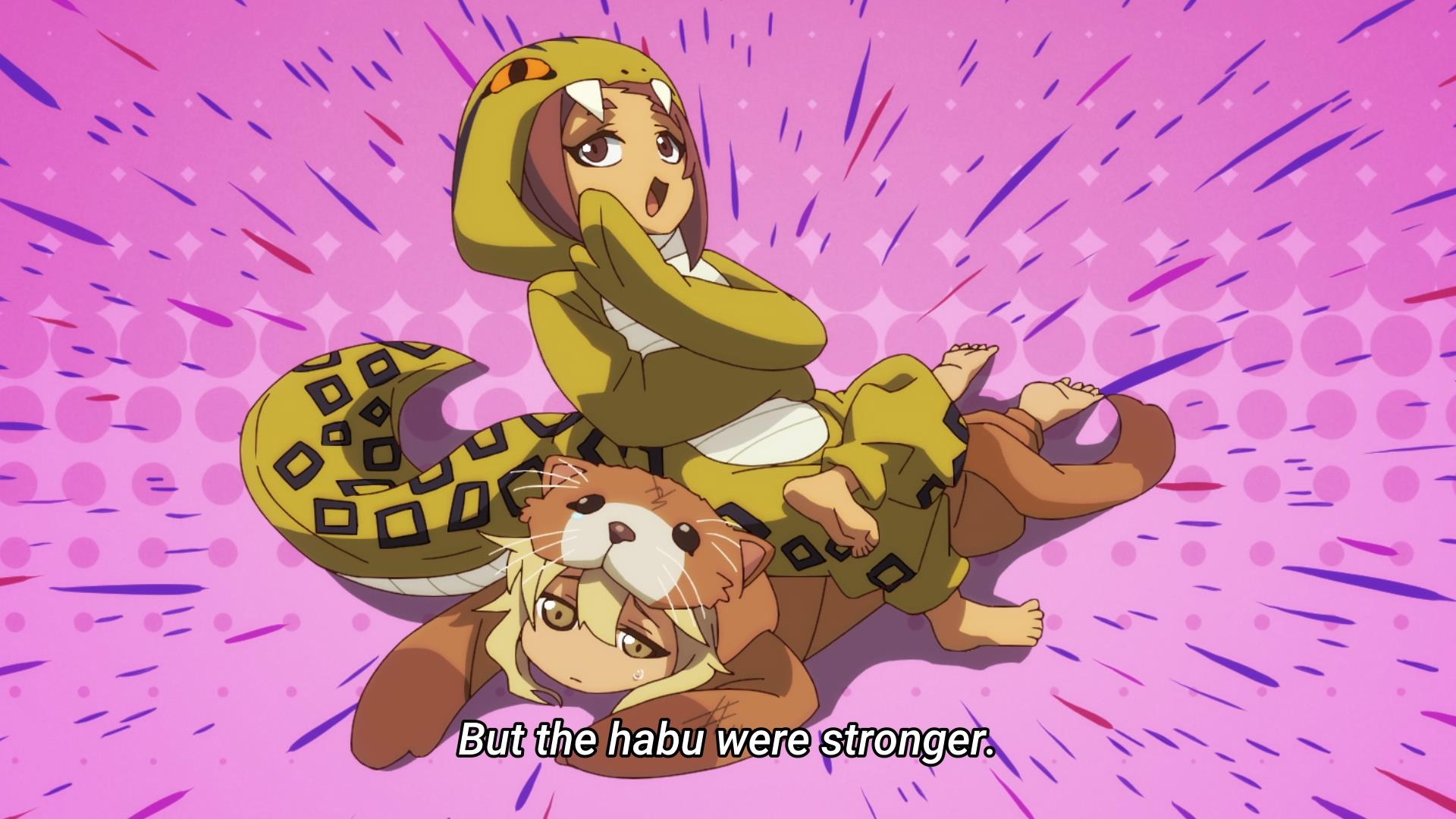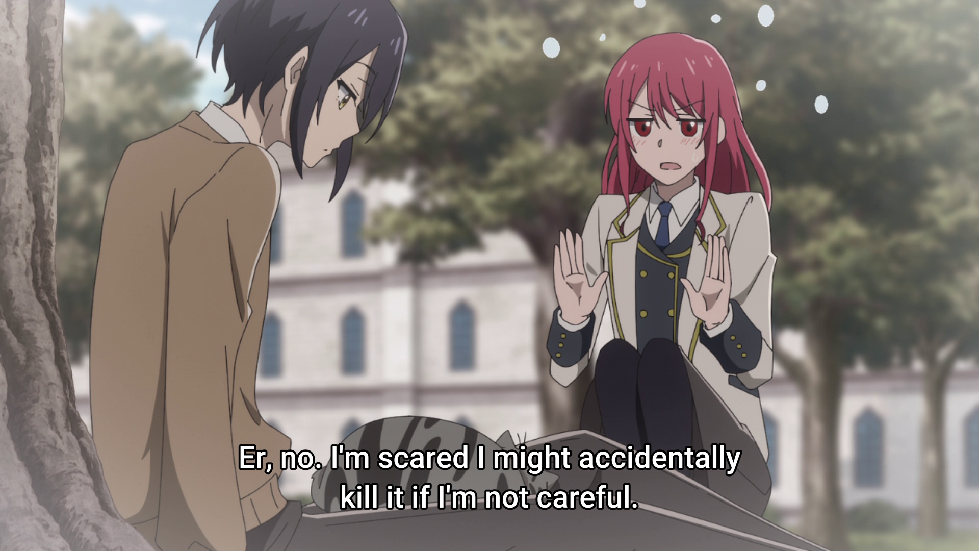 Второе — девка, которую надо убить, это типичная гамбатте-дурочка Ёфика-тян, автор ещё затирал про шрамы на её теле и как она всё равно старается быть на всепрощающем позитиве. А другая тёлка из основной пары, которая киллер, но хочет её защитить, это унылое кудере бревно со своей смазливной семейной историей, но которая пиздит всех остальных. При таких унылых ГГ могли бы вытянуть остальные девки, но они 1. Выбывают из татйла и 2. Сама анима не комедия, чтобы как-то развлекать.