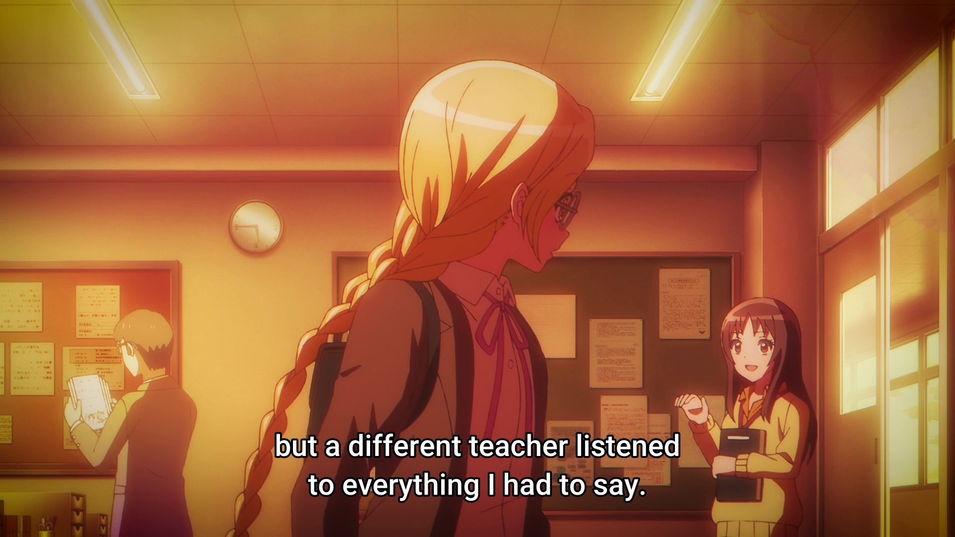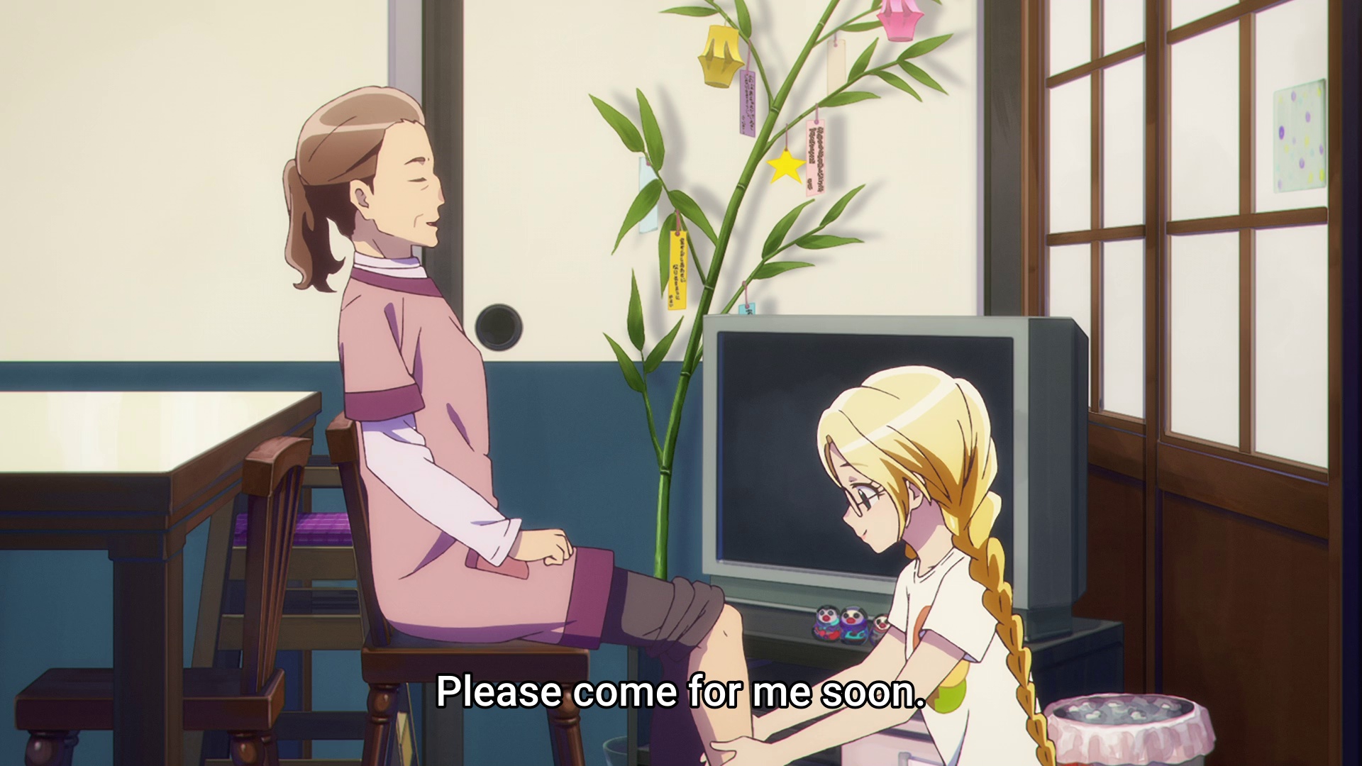 Понравилось то, что авторы этого аниме, ставят перед зрителями вопрос, знакомый каждому, проблему, с которой каждый сталкивался. В шедевре японской анимации «Атака титанов» ставятся тоже важные темы, но обычный человек не сталкивается с ними в своей жизни, например, запустить гул земли, чтобы спасти твой народ или нет? Бля, мне надо курсач ебаный сделать, какой гул земли? А тут вполне реальная, я бы сказал прикладная информация. Просмотром доволен, 9/10 (у гг старая бабка, а не симпатичная милфа-домохозяйка), всем рекомендую, на подумать.