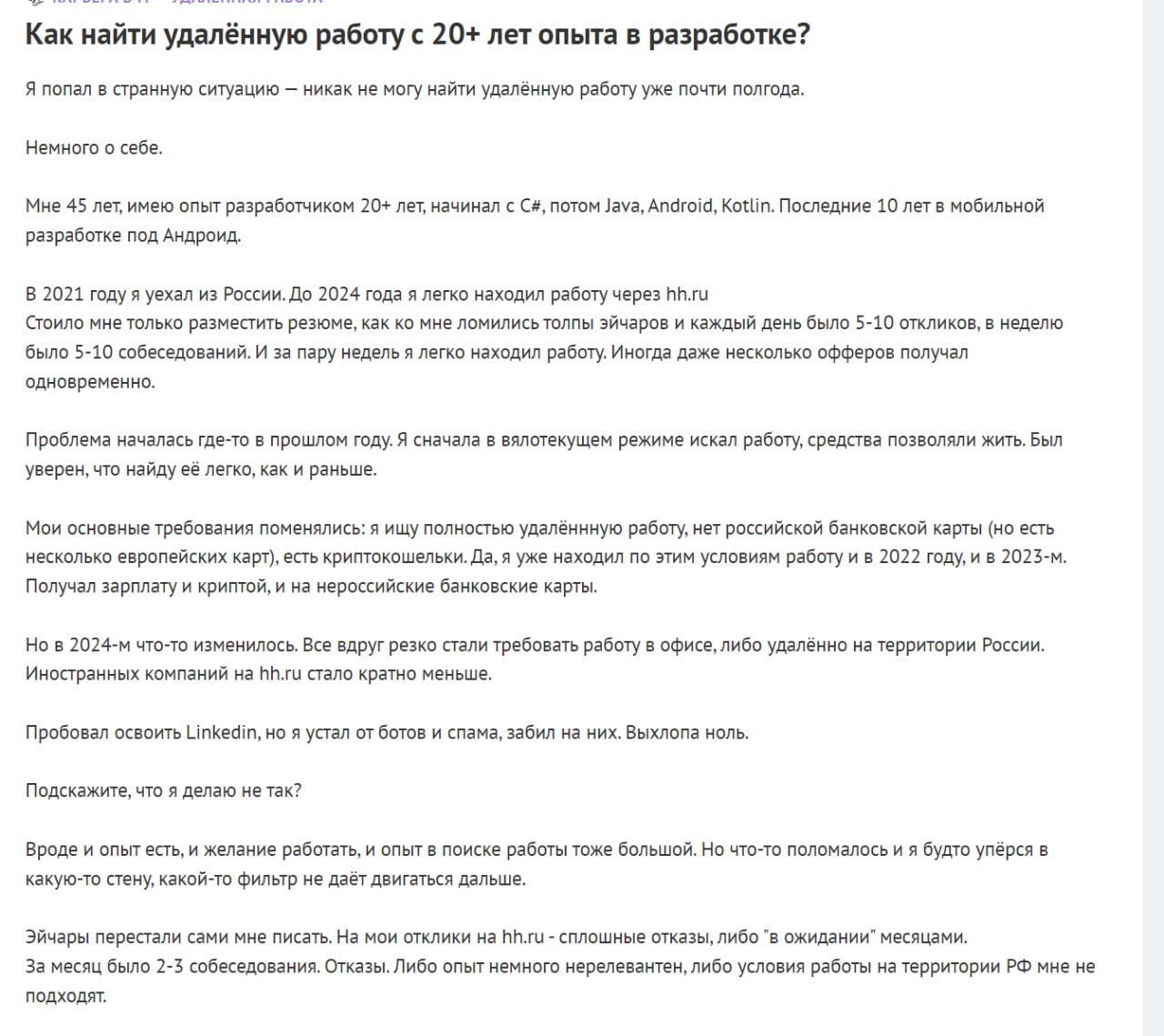 >>1052692 Я пока не ищу. Хочу стек сменить кардинально и боюсь не найти нихуя, т.к. придётся вообще через джуновские вакухи перекатываться, которых просто больше не существует.