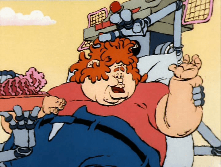 Порадовали и отсылки на настоящее время, например, когда маленькому нехочухе включили мультики, он смотрел сразу шесть разных мультиков на 6 разных телевизорах. Ну тут снимаю шляпу перед авторами, предсказать, что через 40 лет, малютки будут одновременно смотреть на сабвей серф, резку мыла и анекдоты в своих вонючих тики токах – это гениально. А еще был момент, когда, играя в автомат, где надо стрелять в человечка из пистолета, нехочуха ни разу не попал, и тогда человечек сам застрелился, наверное, из вежливости к нехочухе. Ну это опять же отсылка на современных гулей, дед инсайдов и прочих зомбиков. Отсылки можно искать бесконечно, но нужно переходить к сути.