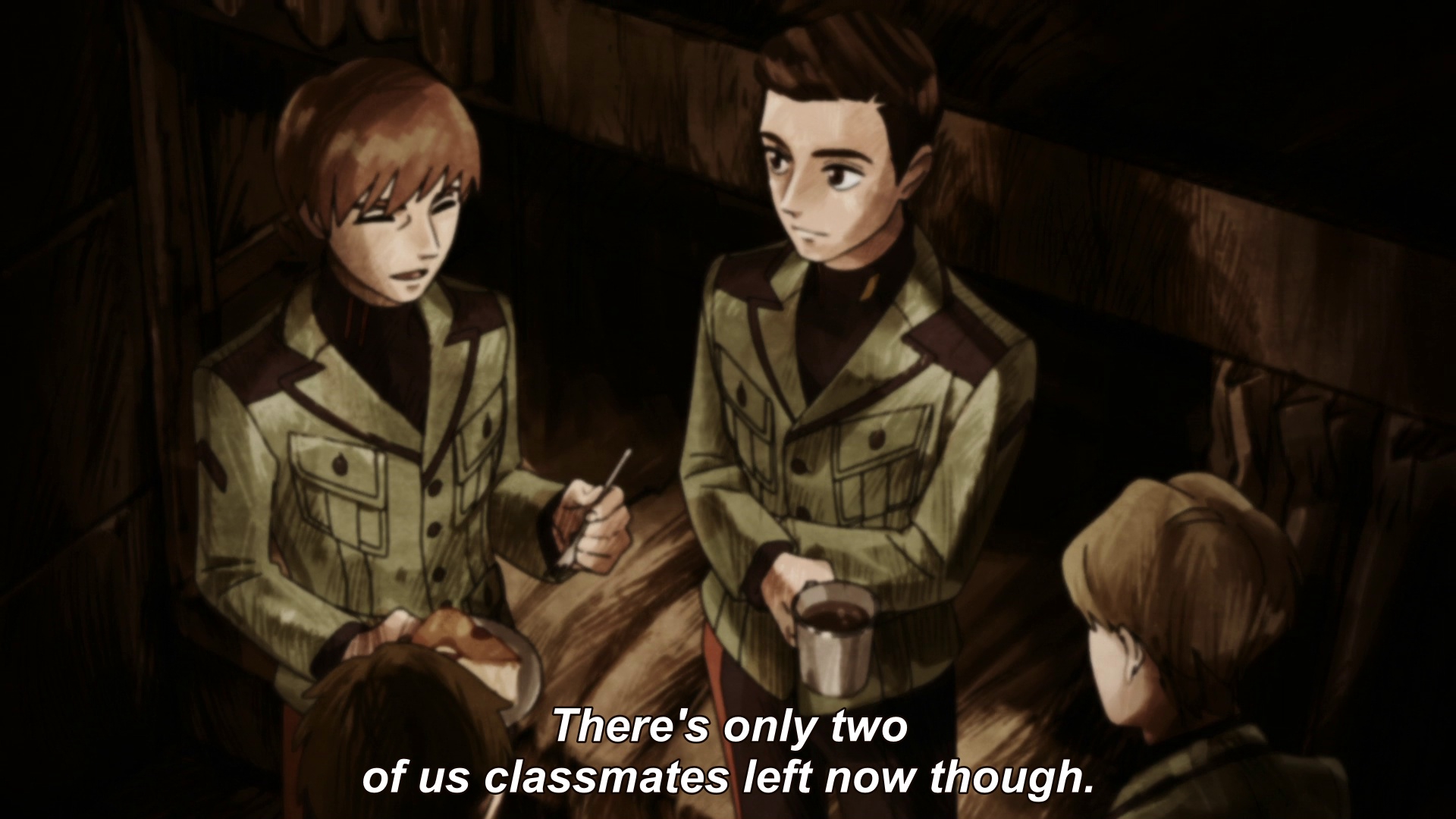 Наоборот смерти побочников и статистов, которые отлетают за арку/серию/сцену, являются наиболее душевными — у них есть личности, семьи, какая-то предыстория, но, как говорит командир Эрвин на вебм, сейчас всё это уже не важно, сейчас нужно выполнить задачу и бесславно сдохнуть, и вот этот диссонанс между тем, как сцене похуй на этих чуваков и как она на них плюёт, и то, какой важный вклад они делают в сюжет, буквально самое душевное дерьмо и залетает лучше, чем сопли слюни слёзы про умирающих двенадцать серий девачек роботов с истекающим сроком годности или подростков, которые, уже после смерти, хотят получить свой талон на бесплатный обед в школьной столовой.