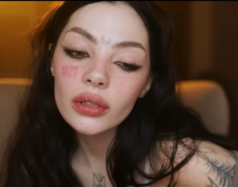 Новинка с блядским взглядом и прозрачным бельем, через которое видно соски и пизду.