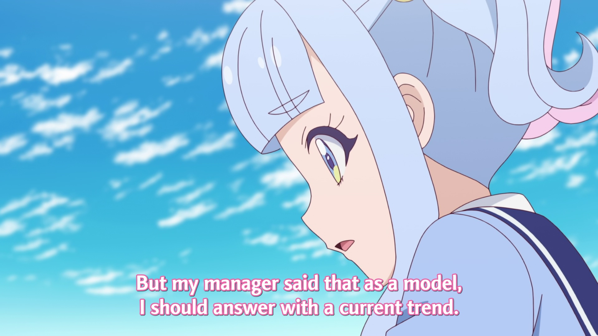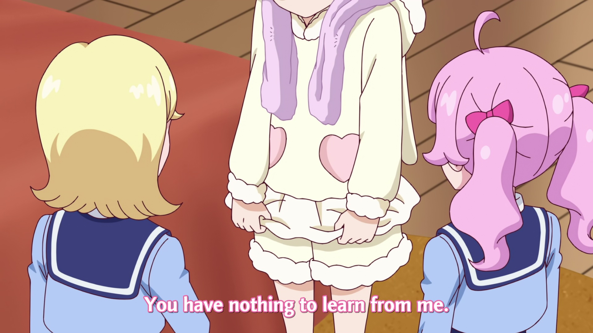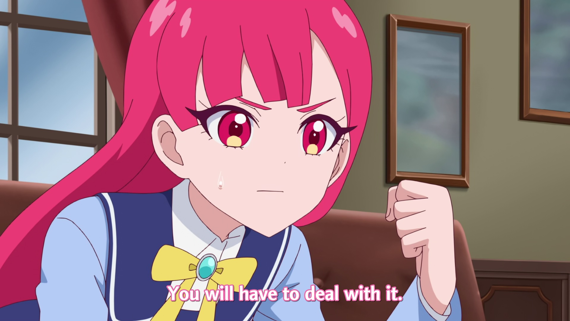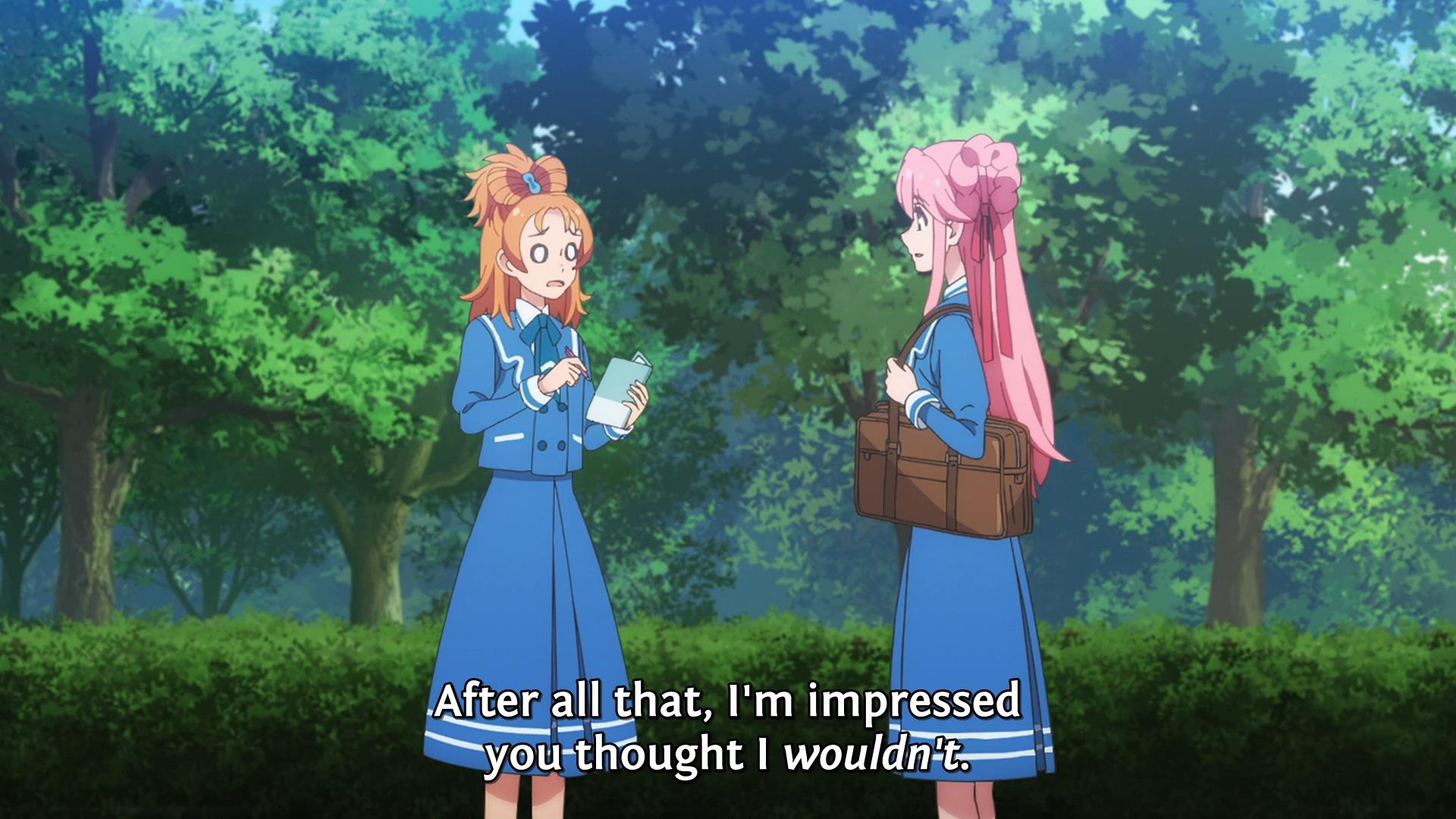 Главная героиня трясунья пиздетсс, последний раз нечто подобное видел в Girls und Panzer, когда на ГГ поражение немецкой команды в финале Танкового биатлона повесили, из школы за профнепригодность турнули и ещё из Семьи изгнали, а потом снова посадили в танк.