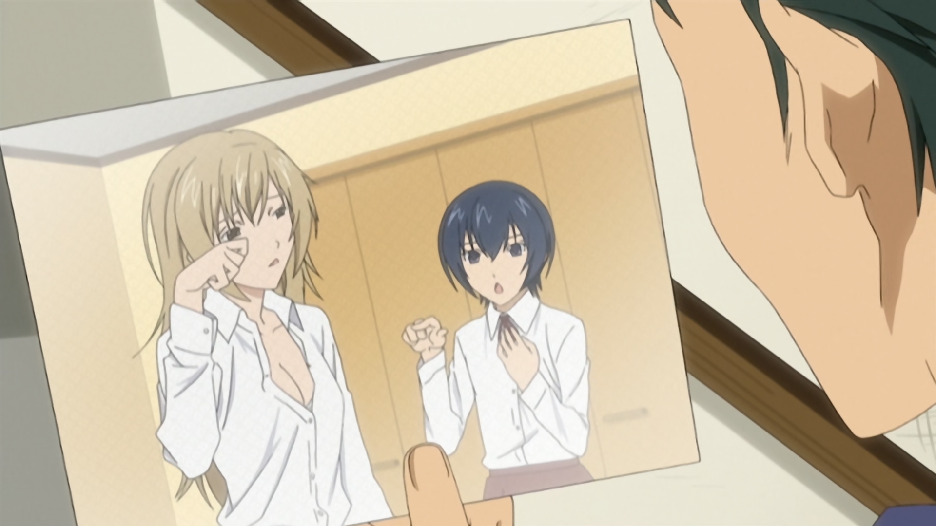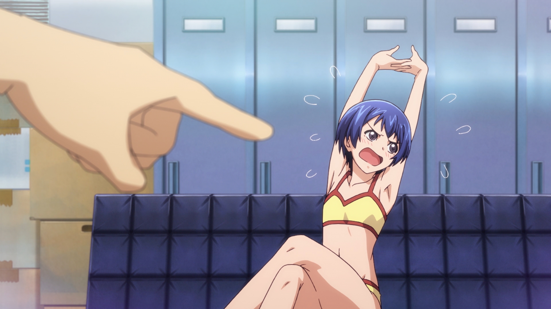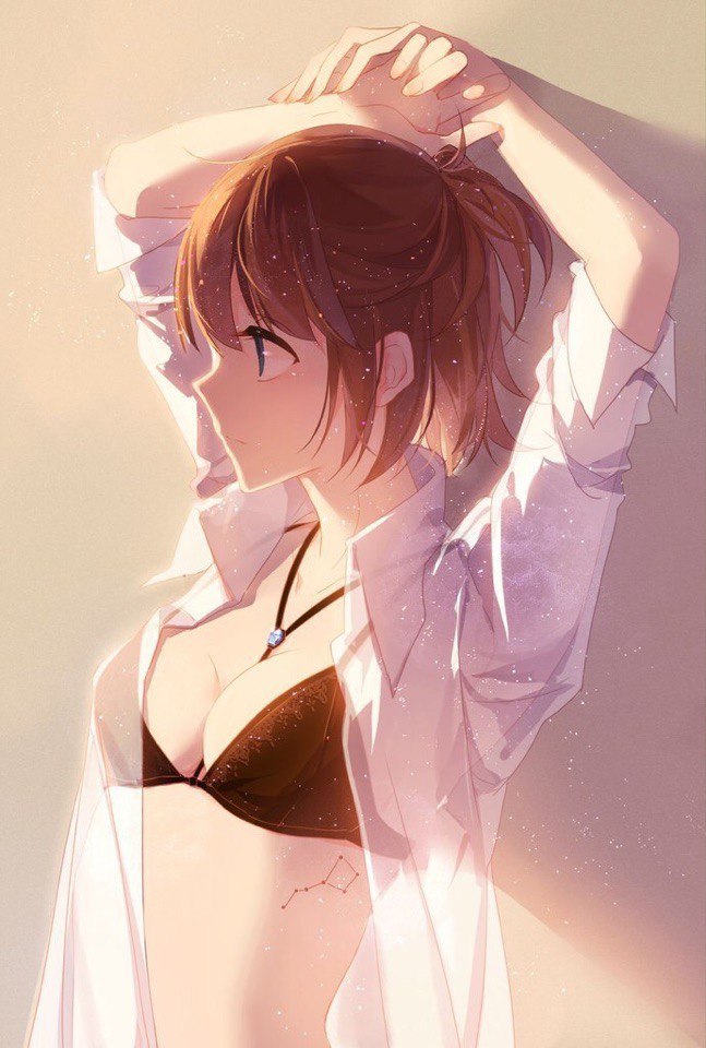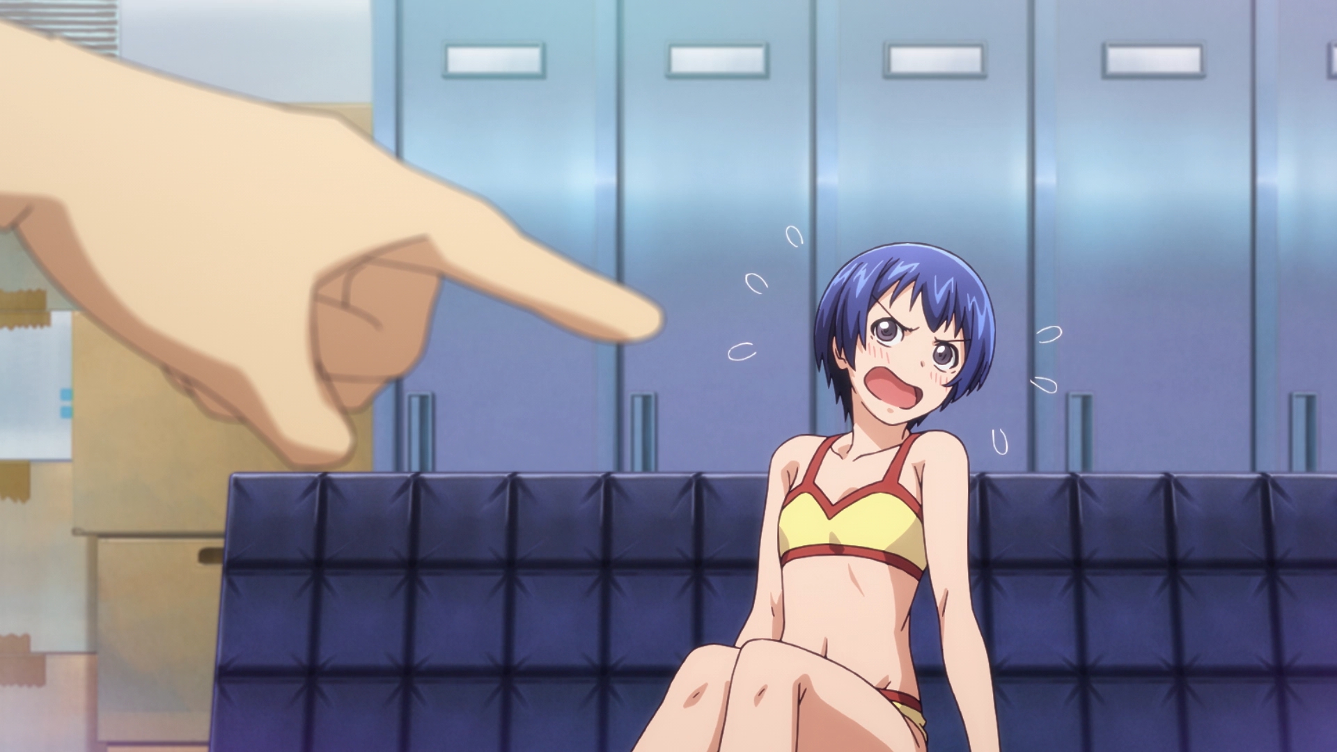 >“Don’t look down on me while acting so tired! You damn G! People who have too much in that regard get so arrogant just like how winning the lottery changes people…” >“Yeah, but there would have to be something severely wrong with a world that let flat-chested girls look down on well-endowed girls.” >“Here’s a little piece of trivia for you. In the day of the Greeks they had no bras, so having a flat chest was a status symbol. Large breasts would sag and no one wants to see that.” >“Yes, but that no longer applies in this day and age. And you act like having a flat chest was a virtue, but works like the Venus de Milo make it pretty obvious they thought you needed a bare minimum size even back then. All in all, isn’t it nice to have a size that allows you to complain about how limited your options for a swimsuit are?” >“I’ve complained about that before. …But for the opposite reason.” >“Oh, is that so?”