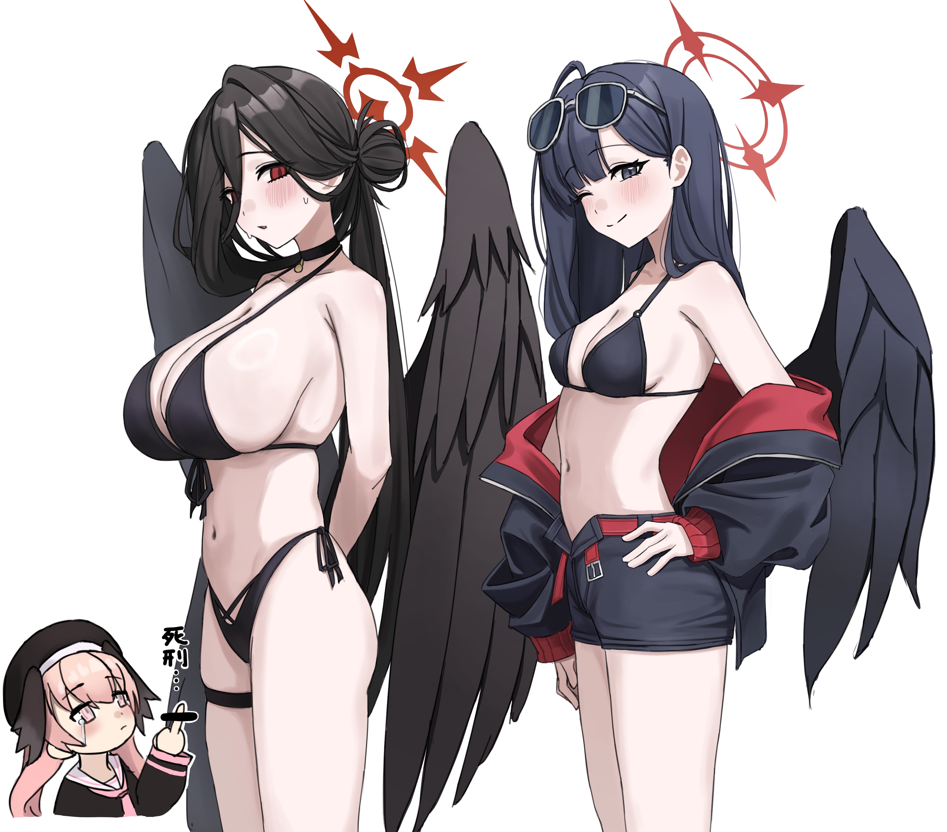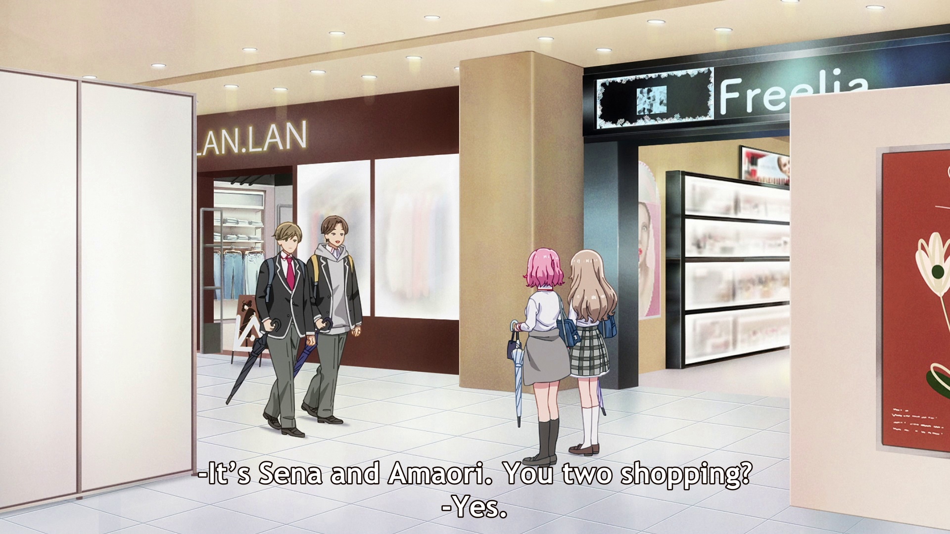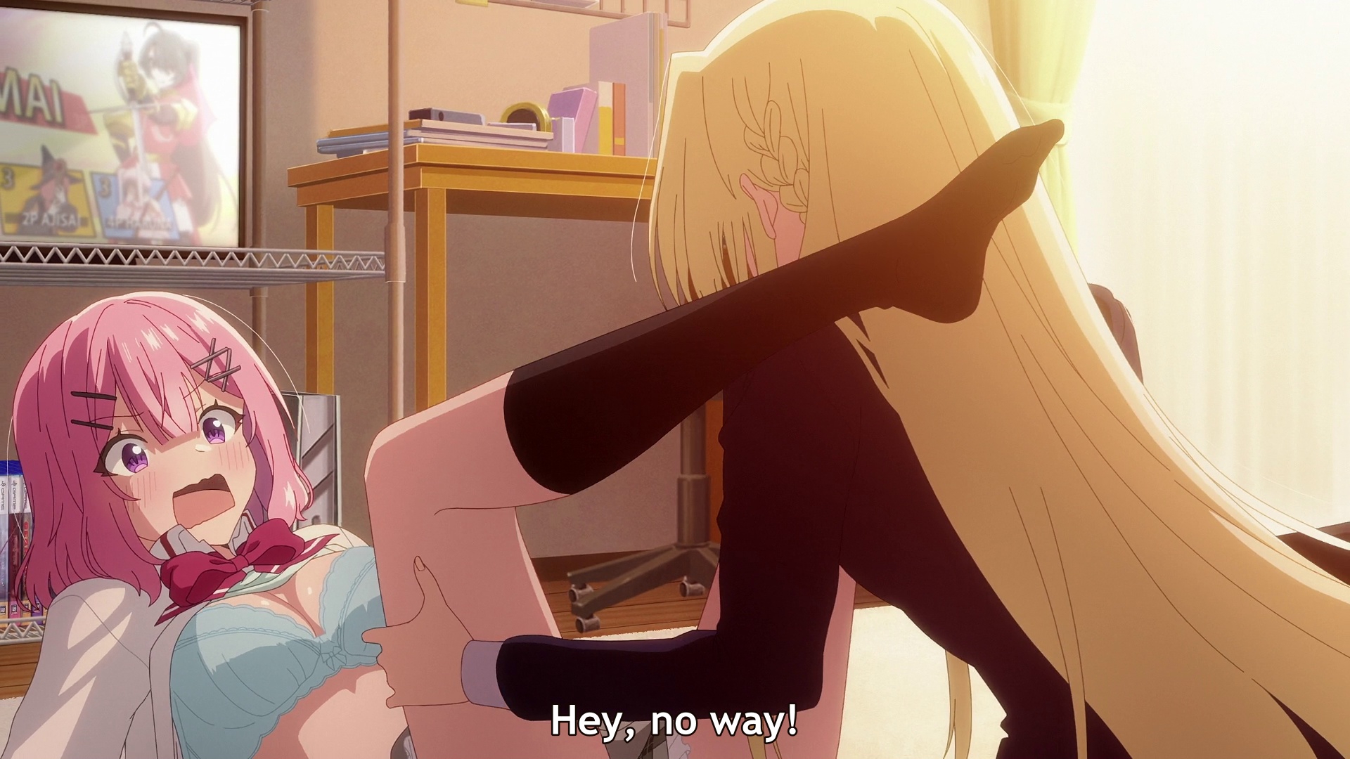 >“Don’t look down on me while acting so tired! You damn G! People who have too much in that regard get so arrogant just like how winning the lottery changes people…” >“Yeah, but there would have to be something severely wrong with a world that let flat-chested girls look down on well-endowed girls.” >“Here’s a little piece of trivia for you. In the day of the Greeks they had no bras, so having a flat chest was a status symbol. Large breasts would sag and no one wants to see that.” >“Yes, but that no longer applies in this day and age. And you act like having a flat chest was a virtue, but works like the Venus de Milo make it pretty obvious they thought you needed a bare minimum size even back then. All in all, isn’t it nice to have a size that allows you to complain about how limited your options for a swimsuit are?” >“I’ve complained about that before. …But for the opposite reason.” >“Oh, is that so?”