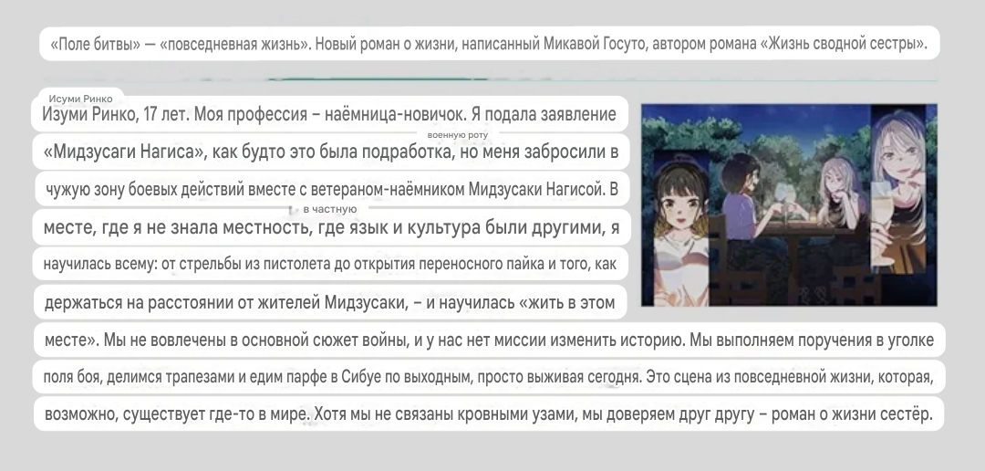 Вот Наги-сан прям очень хорошая девочка. Не просто терпит всю охуительную наглость и жадность Рури, но и реально заинтересовывает в своей научной области, берёт с собой в крутые поездки, даже вон в соавторы статьи вписала и позвала чуть ли не в экспедицию. Ну и вообще тот случай, когда доброта персонажа показана не слащаво-вербальной, как у >>1066381, а действенной и проявляемой в конкретных ситуациях, вместо подаваний платочков и ёщ-ёщ.