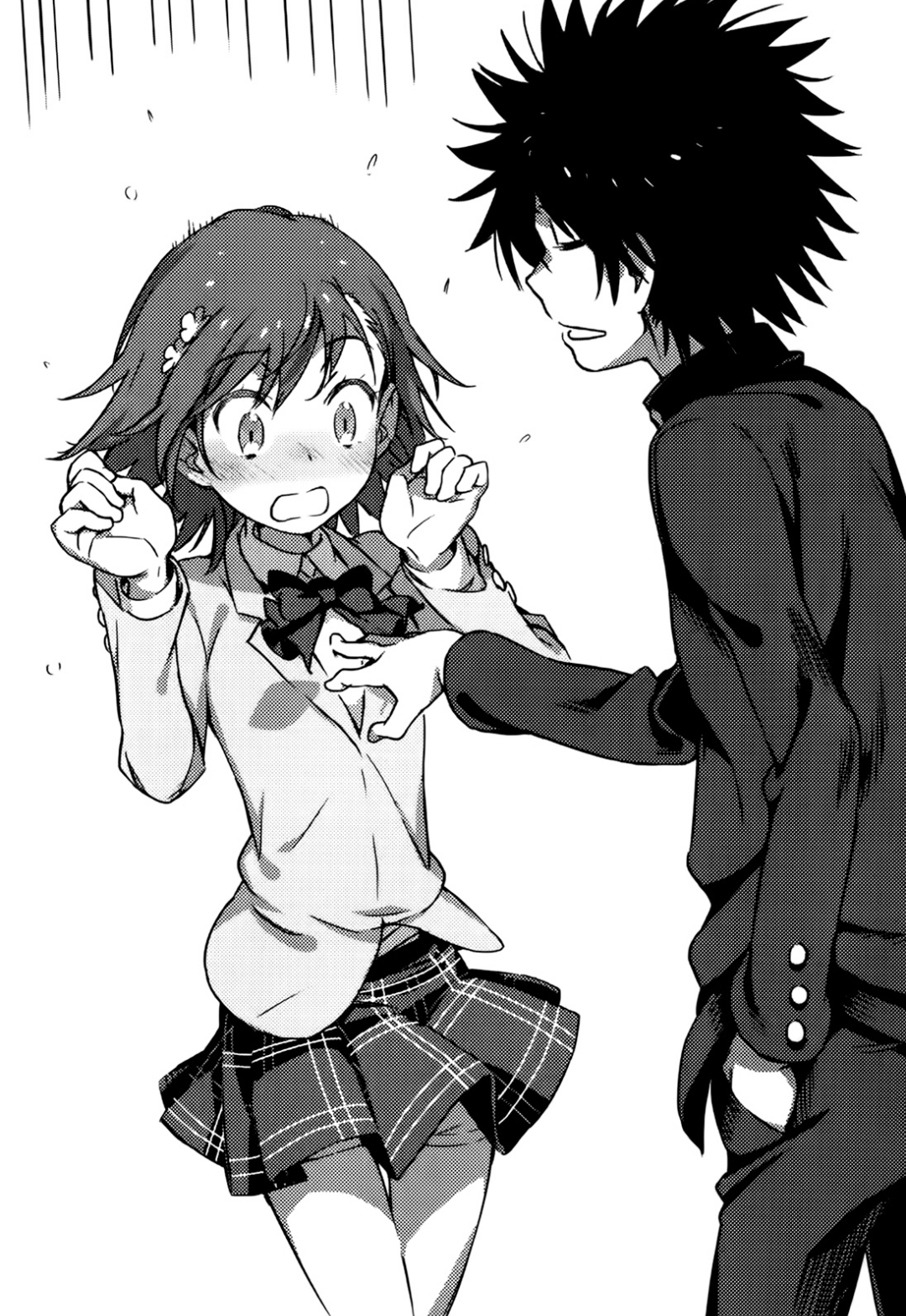 >“Yes, yes, I’ll destroy that illusion. IDTI, IDTI.” >“Don’t make some nonsensical abbreviation! And where do you think you’re touching me!?” >“C’mon, it’s not like I want to touch something like this!!” >“Something like this…!!!???” >“Don’t go to the pointless effort of making it feel so real. How do you do that anyway?” >“Th-th-these are not pads!!” >Mikoto was left trembling on the spot with an expression distorted by various emotions and her entire body turned beet red.