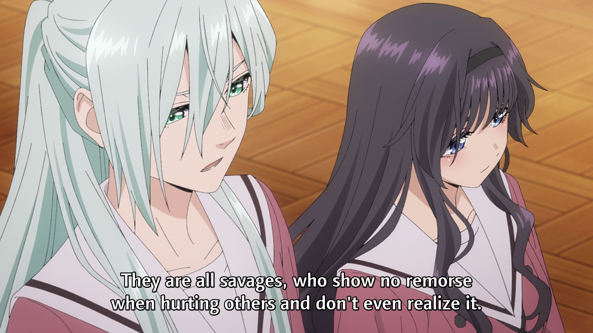 Какая же унылая шаболда, просто сложно придумать скучнее. Максимально унылый стереотипный тянущий голос, вызывающие зевоту манеры, ну пиздец. И теперь блять каждую серию нас похоже будут мучить этой хуйнёй, ах она такая ангел, ах как она мило улыбнулась, ах она такая добрая. Пизда. Если так реально пойдёт, это будет дроп, хотя тайтл конечно технически хорошо сделан.