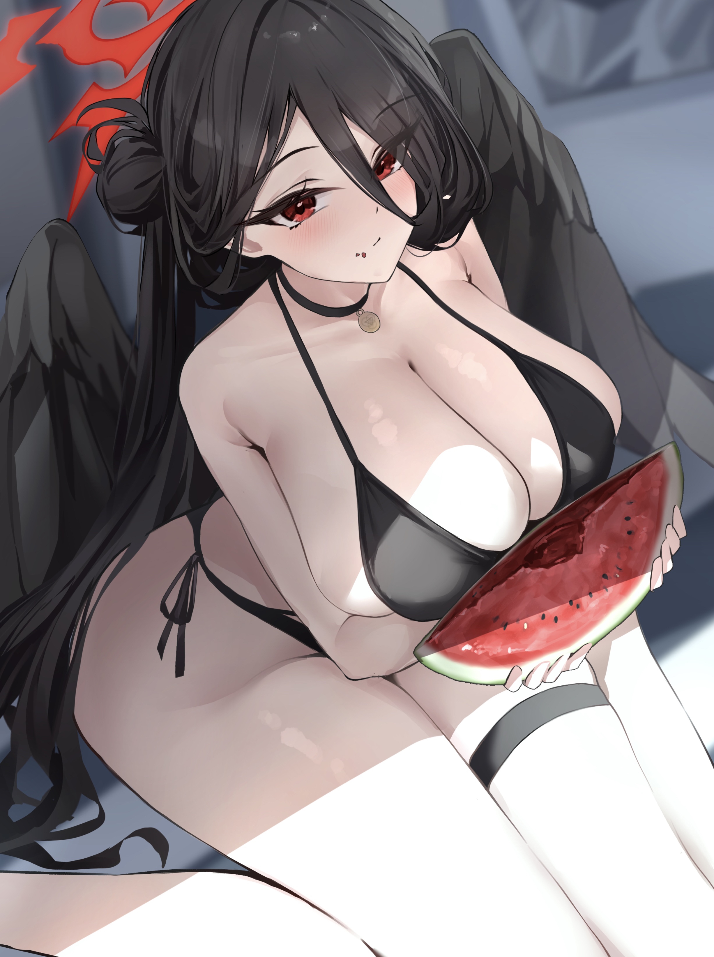 >A female student with long black hair and a bust plentiful enough to wrap Mikoto in killer intent burst out of the school. She was speaking with someone over her cell phone.