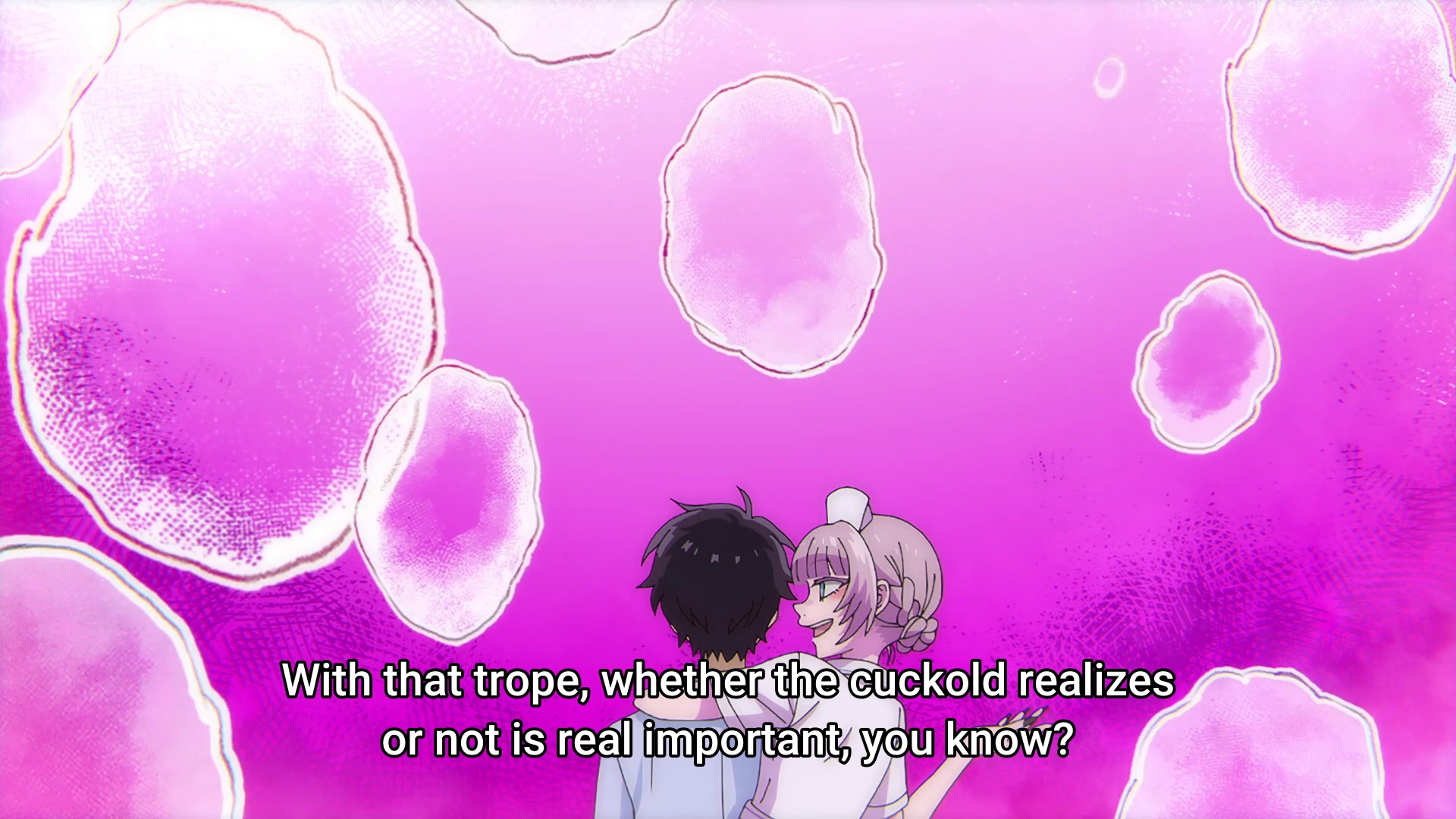 Автор норм тему делает. Тянка и чмошеля вроде любит, но и работу продажной шлюшкой тоже. На двух стульях сидеть не получается —> зато получается пиздатая и в какой-то степени уникальная личная драма, которую в аниме хуй когда показывали. Лучшая антигероиня последней пятилетки и по совместительству объект нападок инсельных лузеров со всего мира.