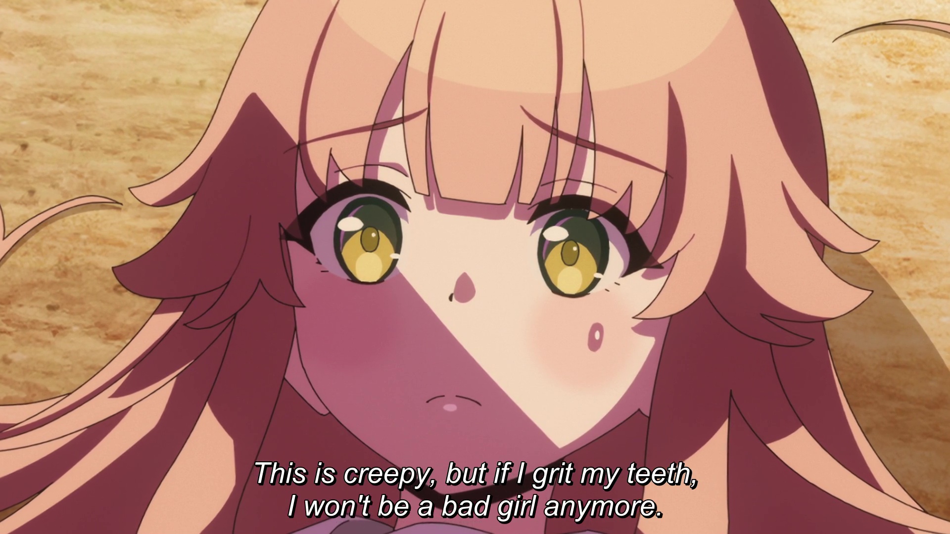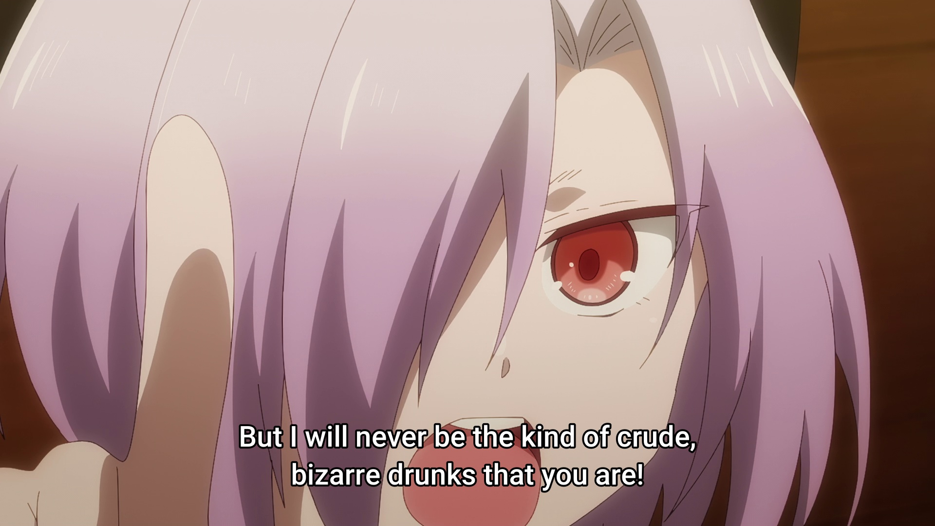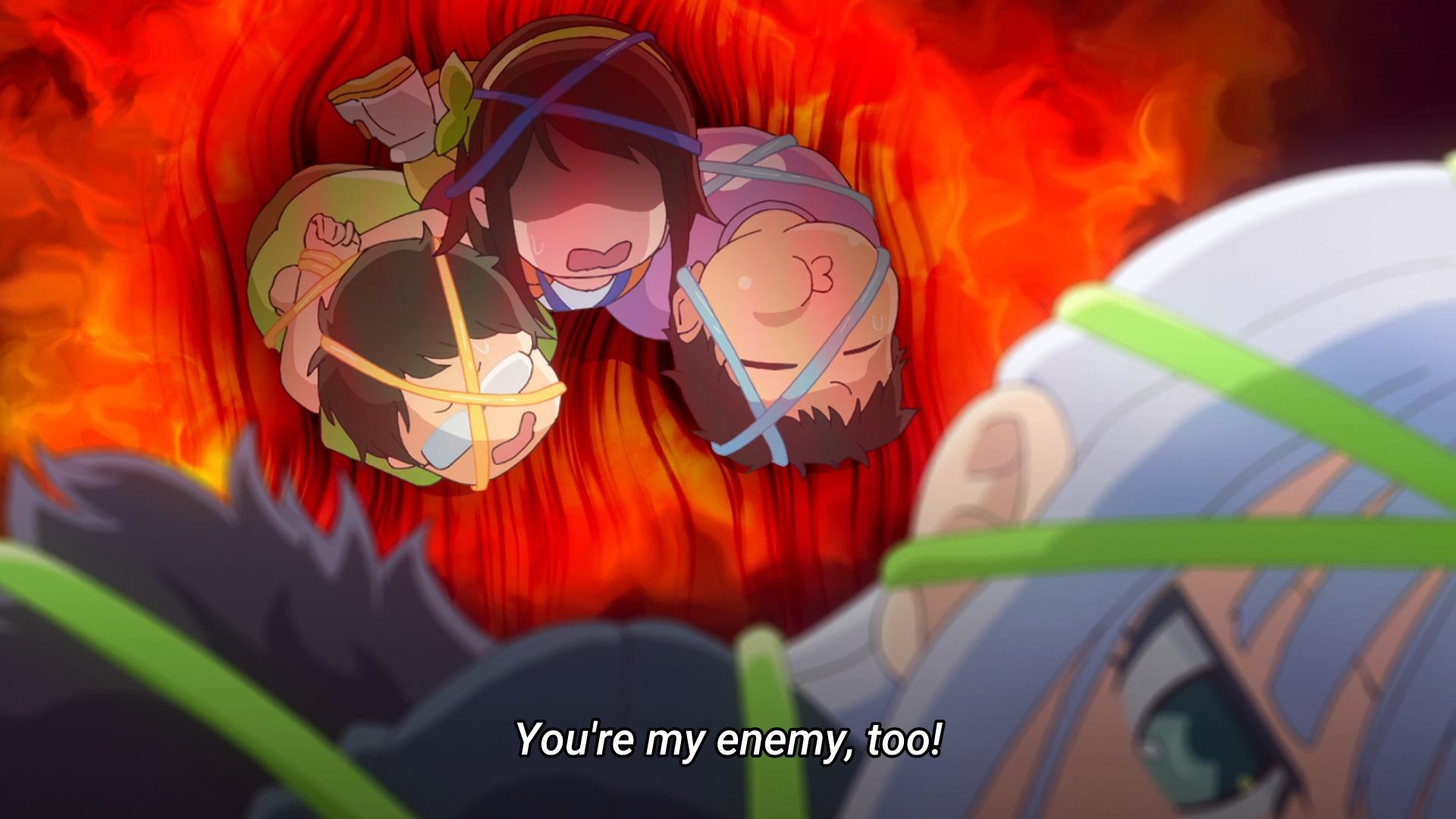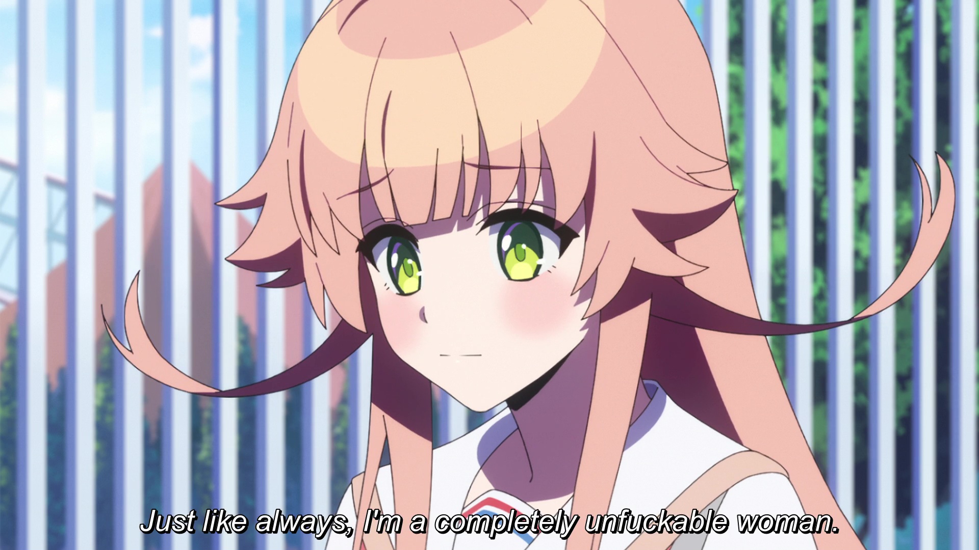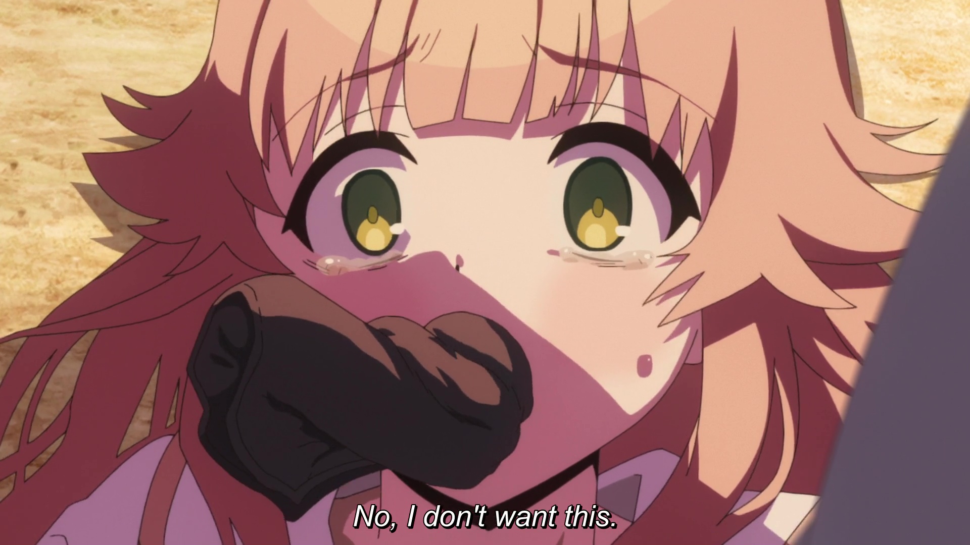 Серия в принципе довольно тупая, но когда в середине была короткая сцена с этой уныл-тян, у которой голос похож на ноющую псину, я чуть не выключил. Чем бы тайтл ни пытался быть, но такую унылую шаблонную поеботу делать тупо стыдно должно быть.