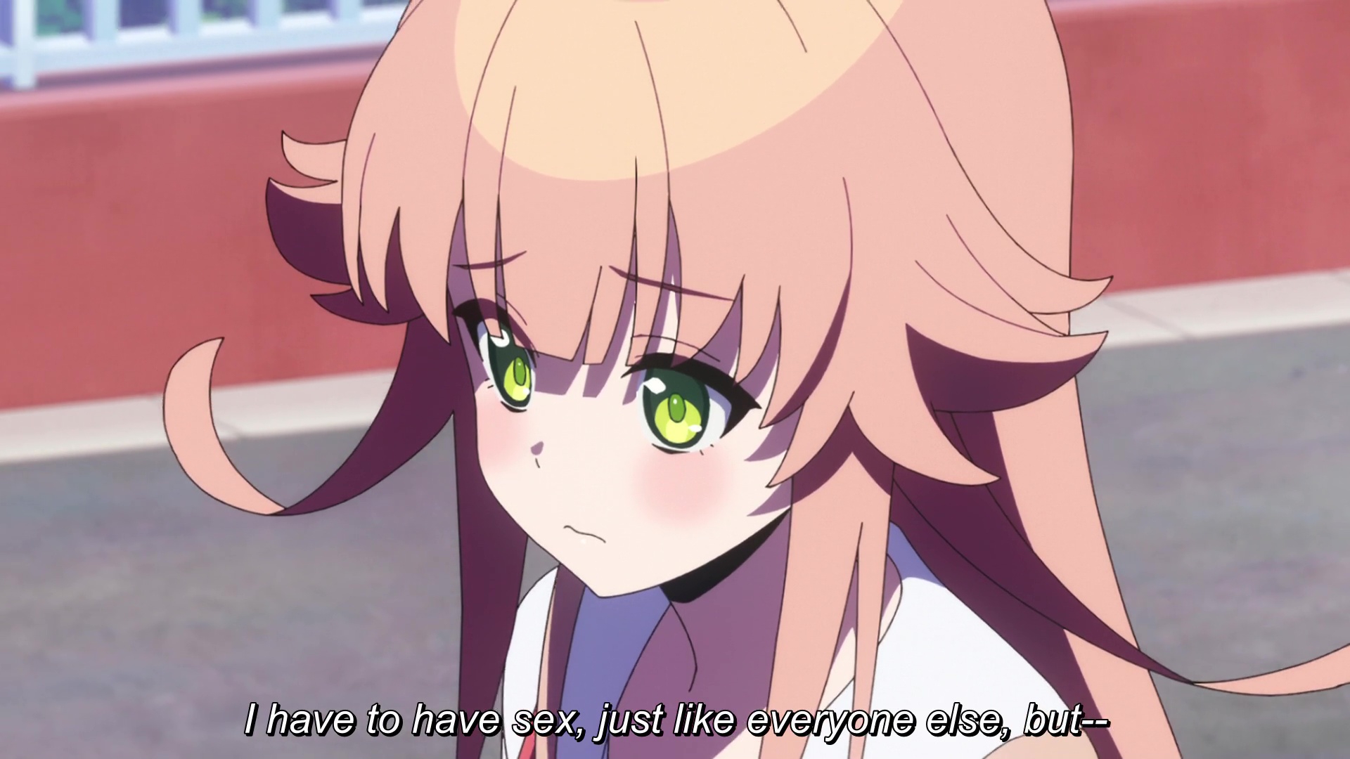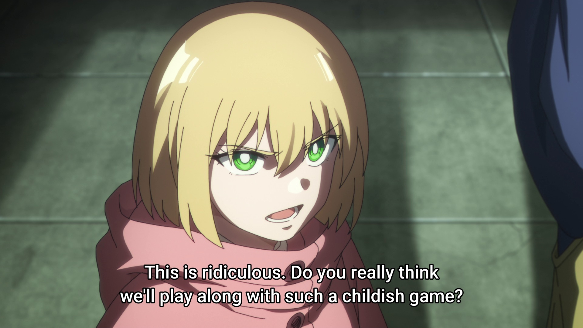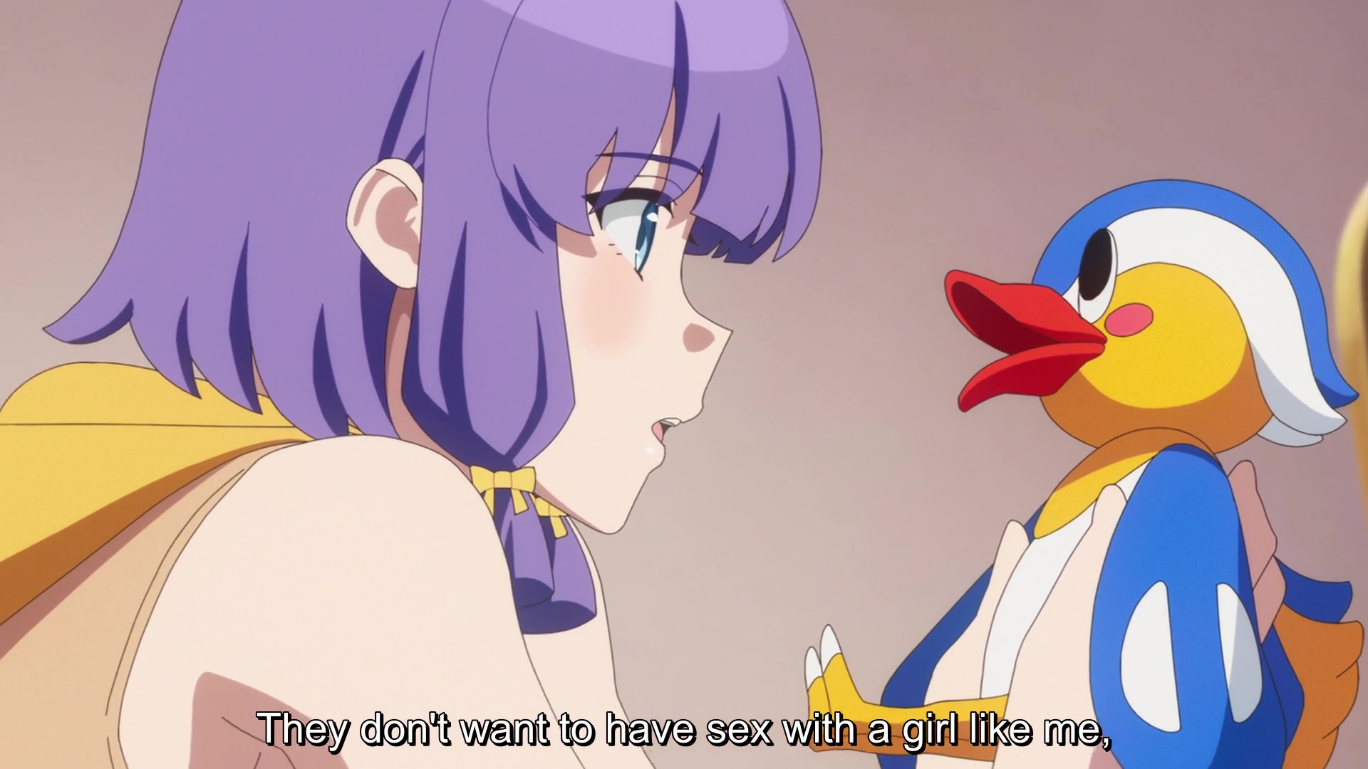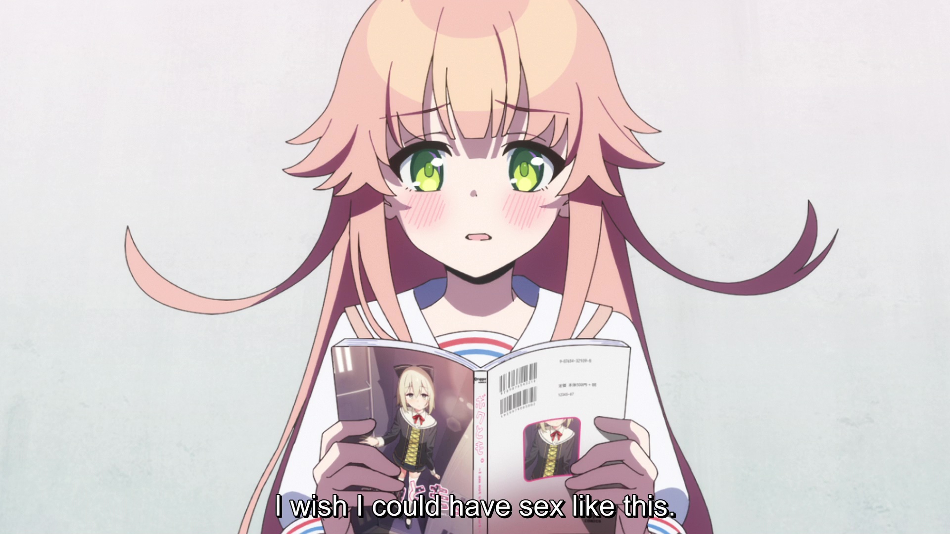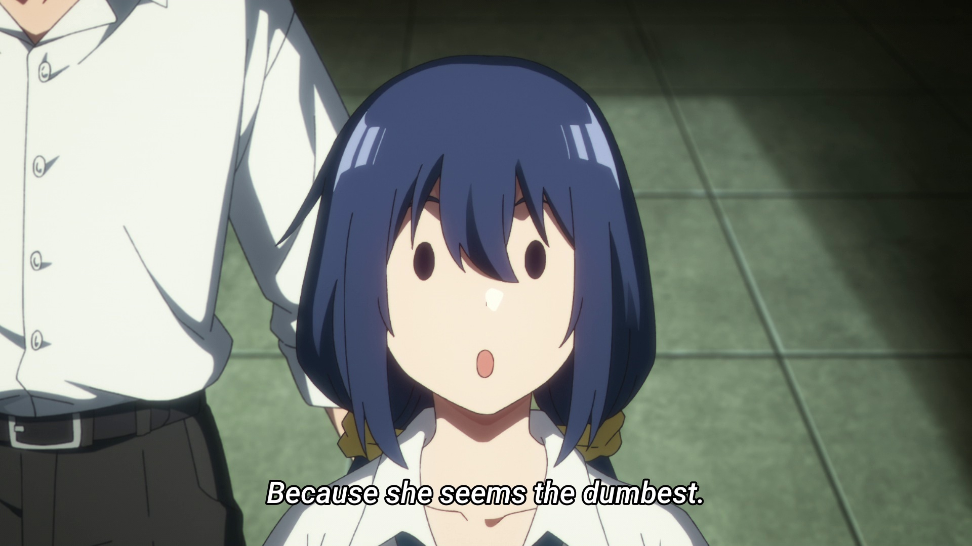 Серия в принципе довольно тупая, но когда в середине была короткая сцена с этой уныл-тян, у которой голос похож на ноющую псину, я чуть не выключил. Чем бы тайтл ни пытался быть, но такую унылую шаблонную поеботу делать тупо стыдно должно быть.