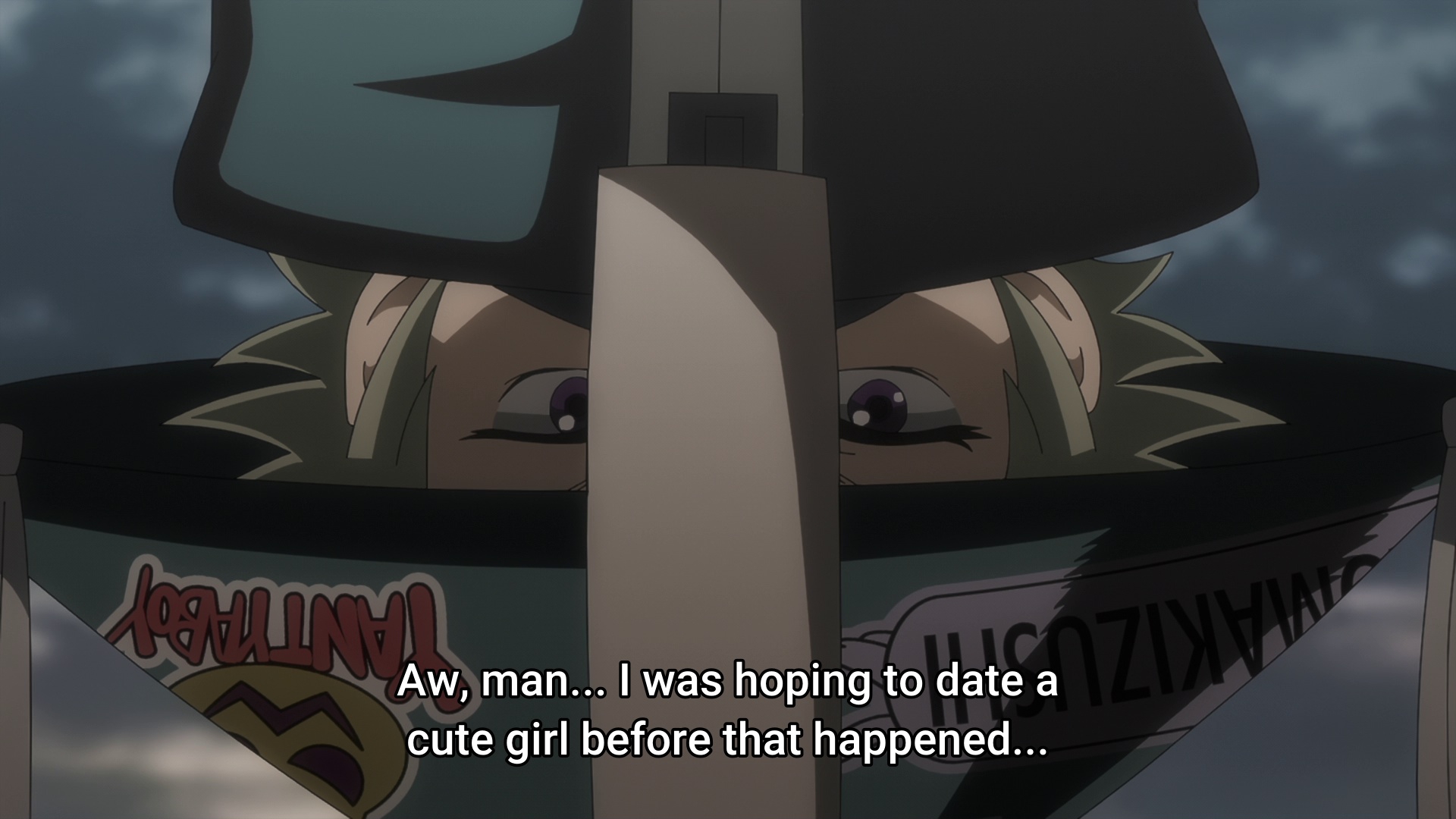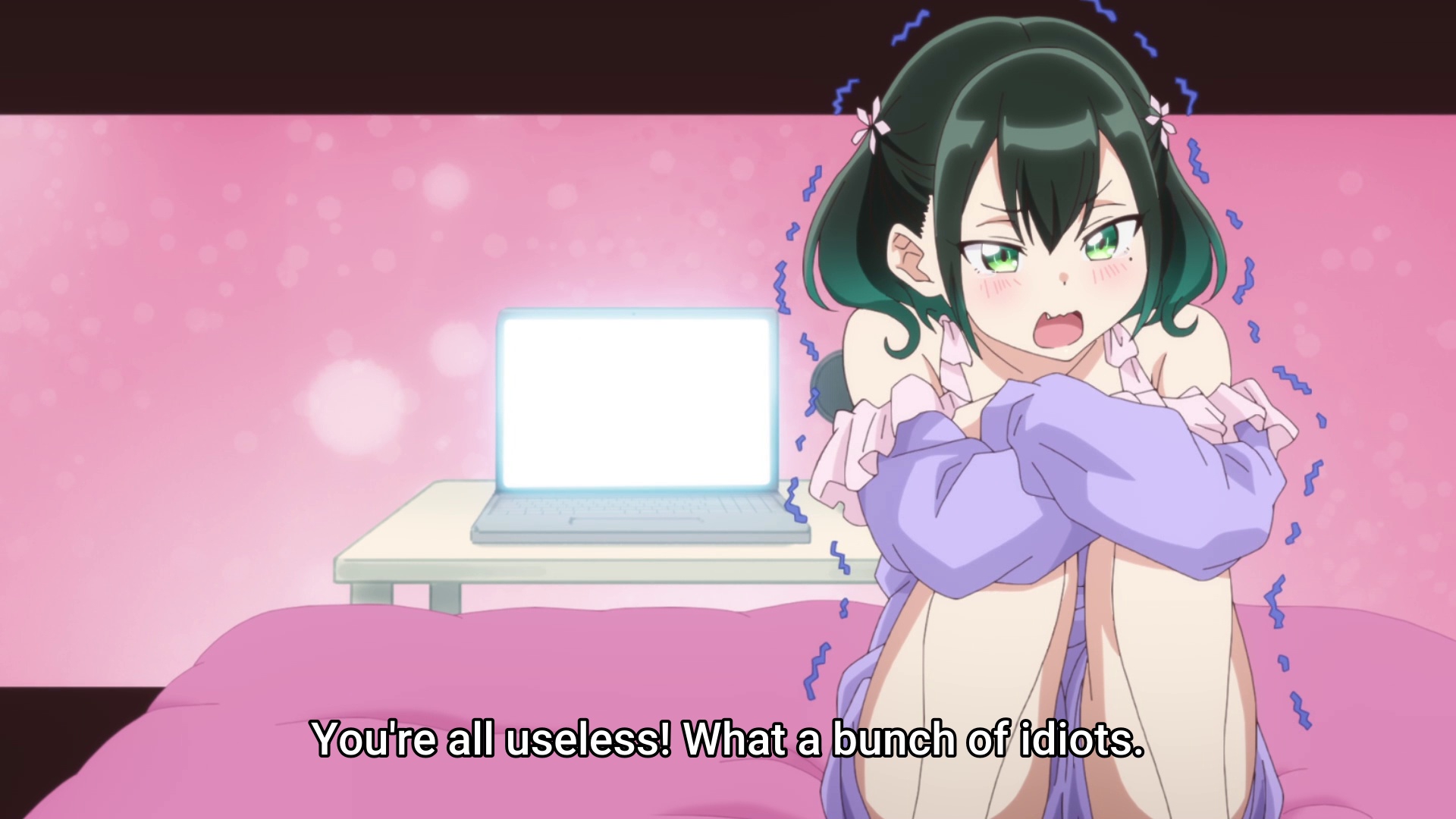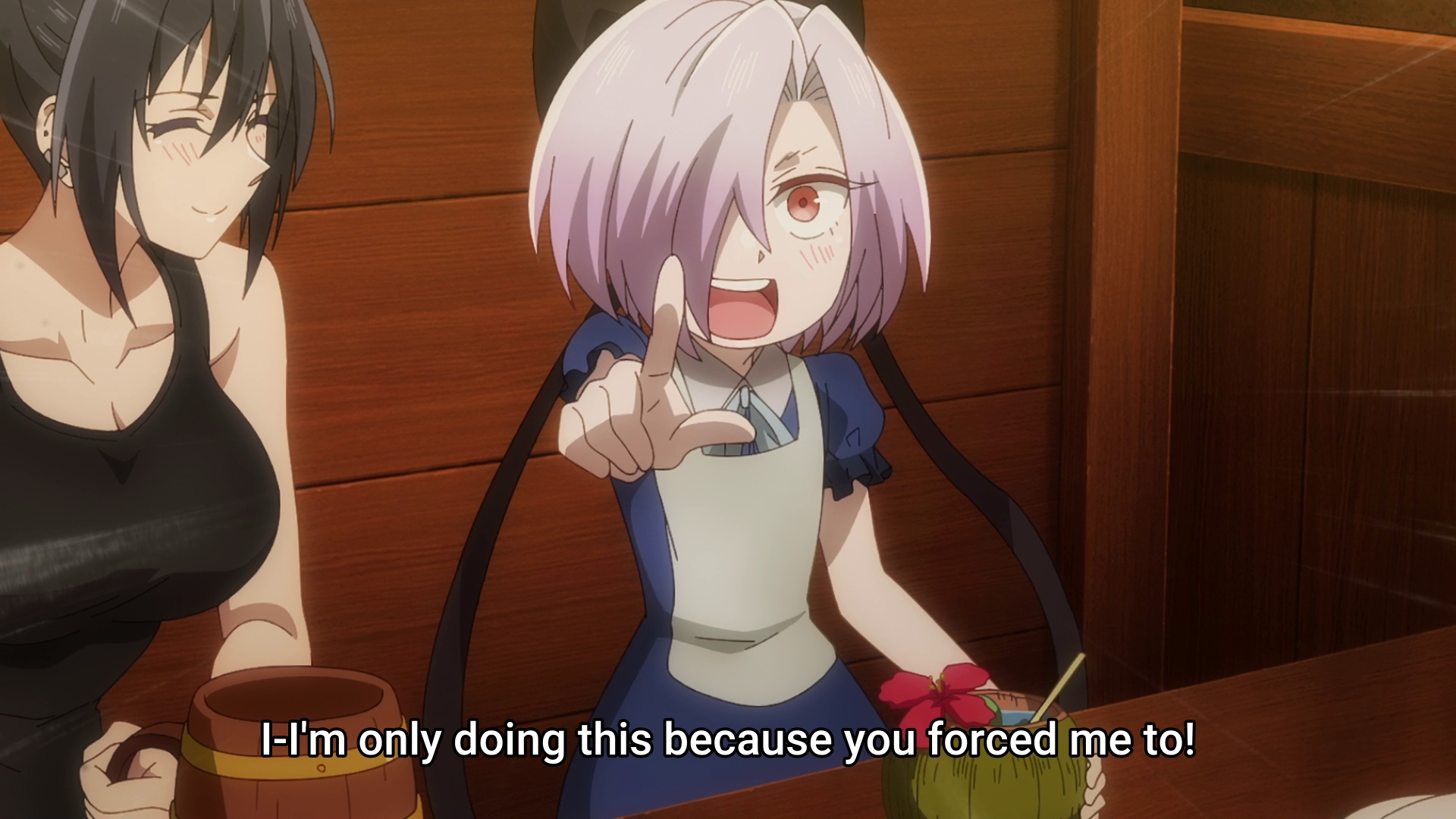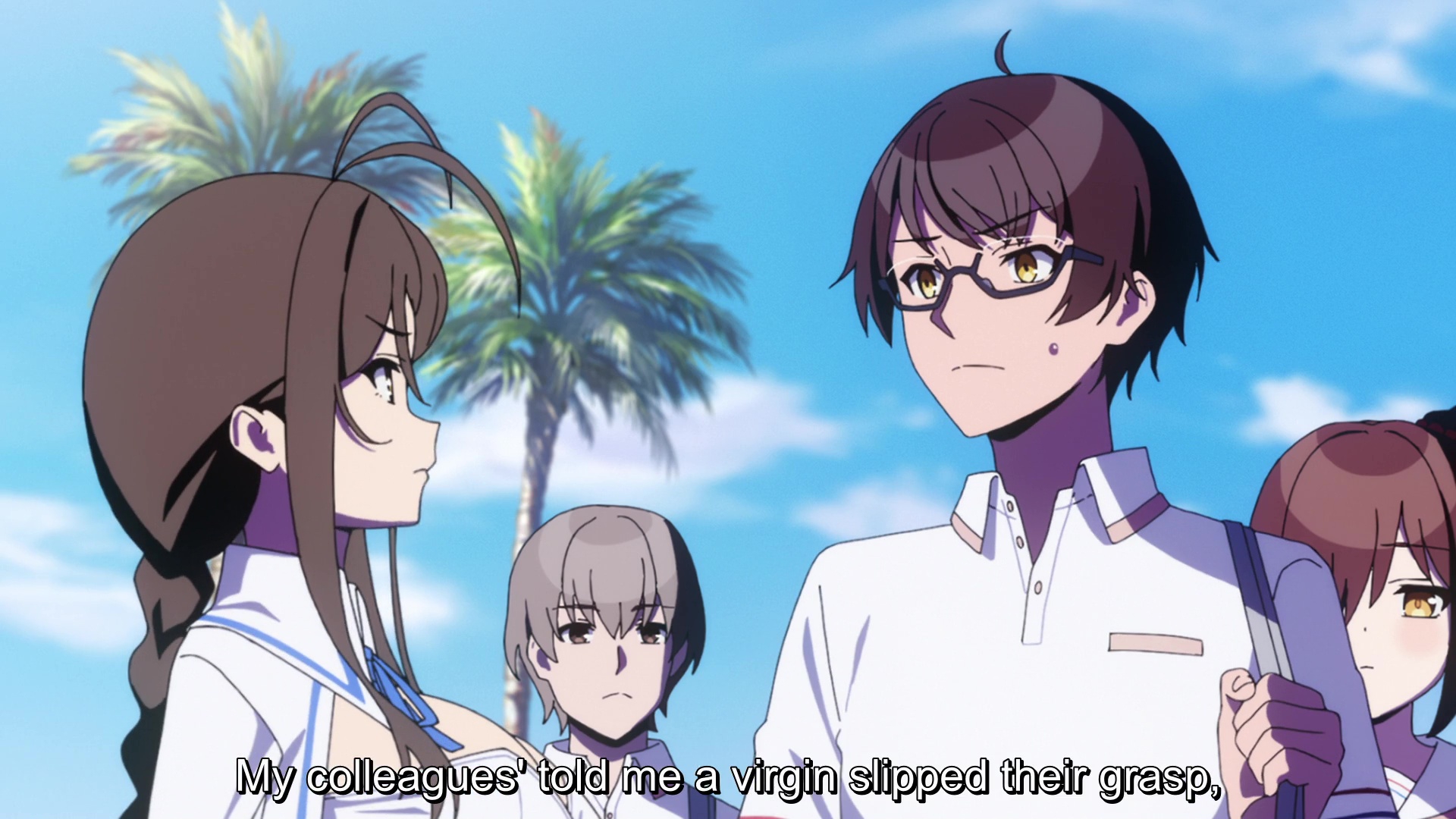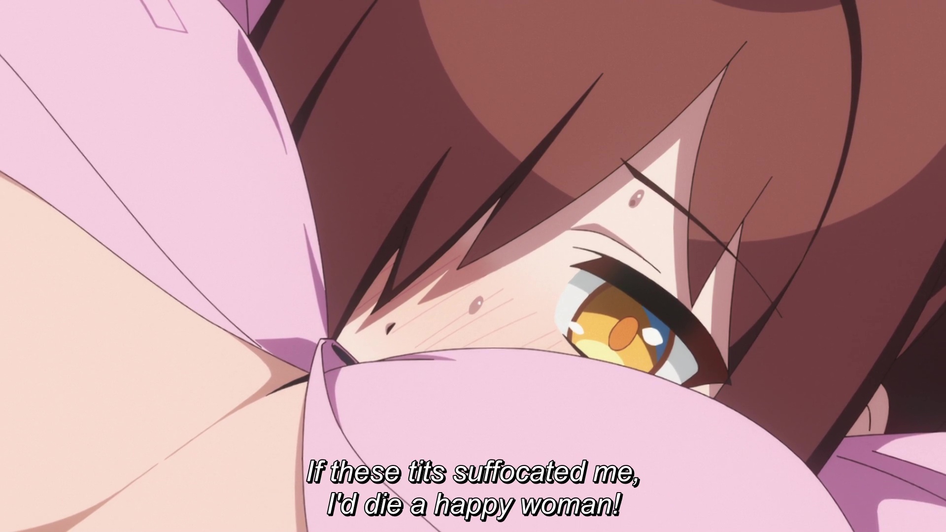 Серия в принципе довольно тупая, но когда в середине была короткая сцена с этой уныл-тян, у которой голос похож на ноющую псину, я чуть не выключил. Чем бы тайтл ни пытался быть, но такую унылую шаблонную поеботу делать тупо стыдно должно быть.