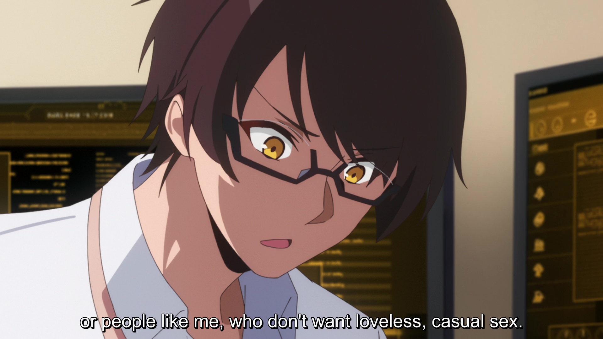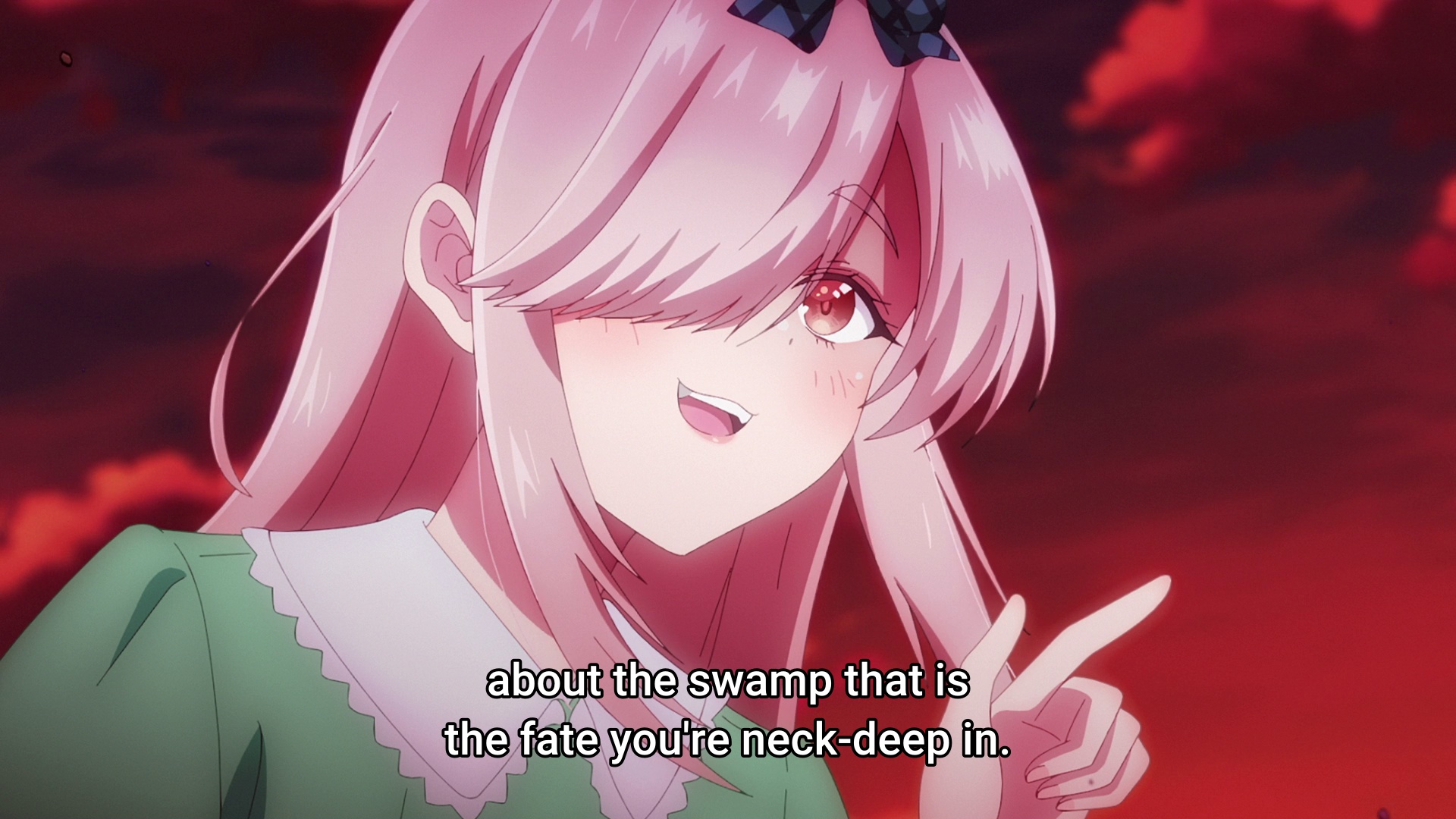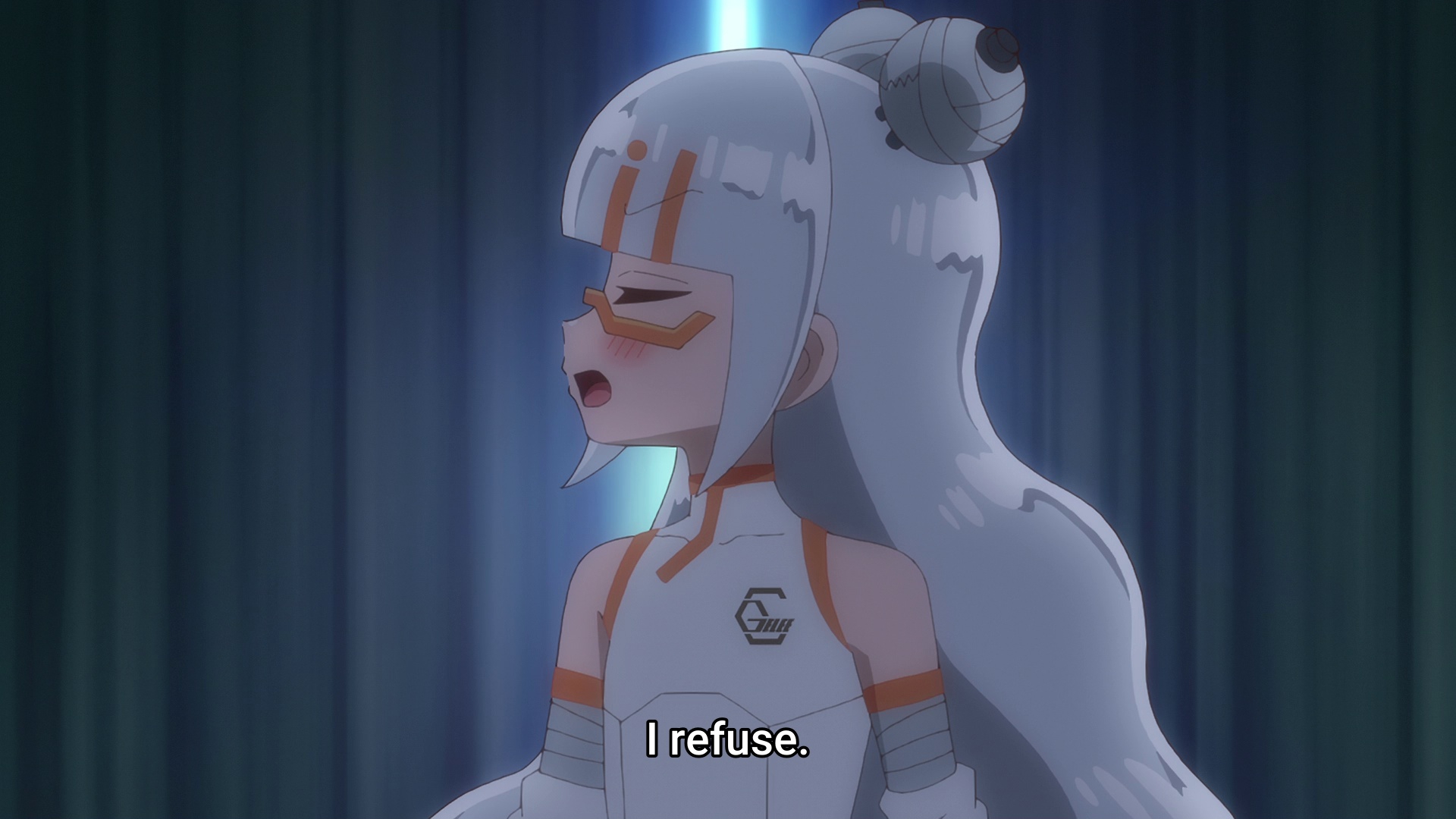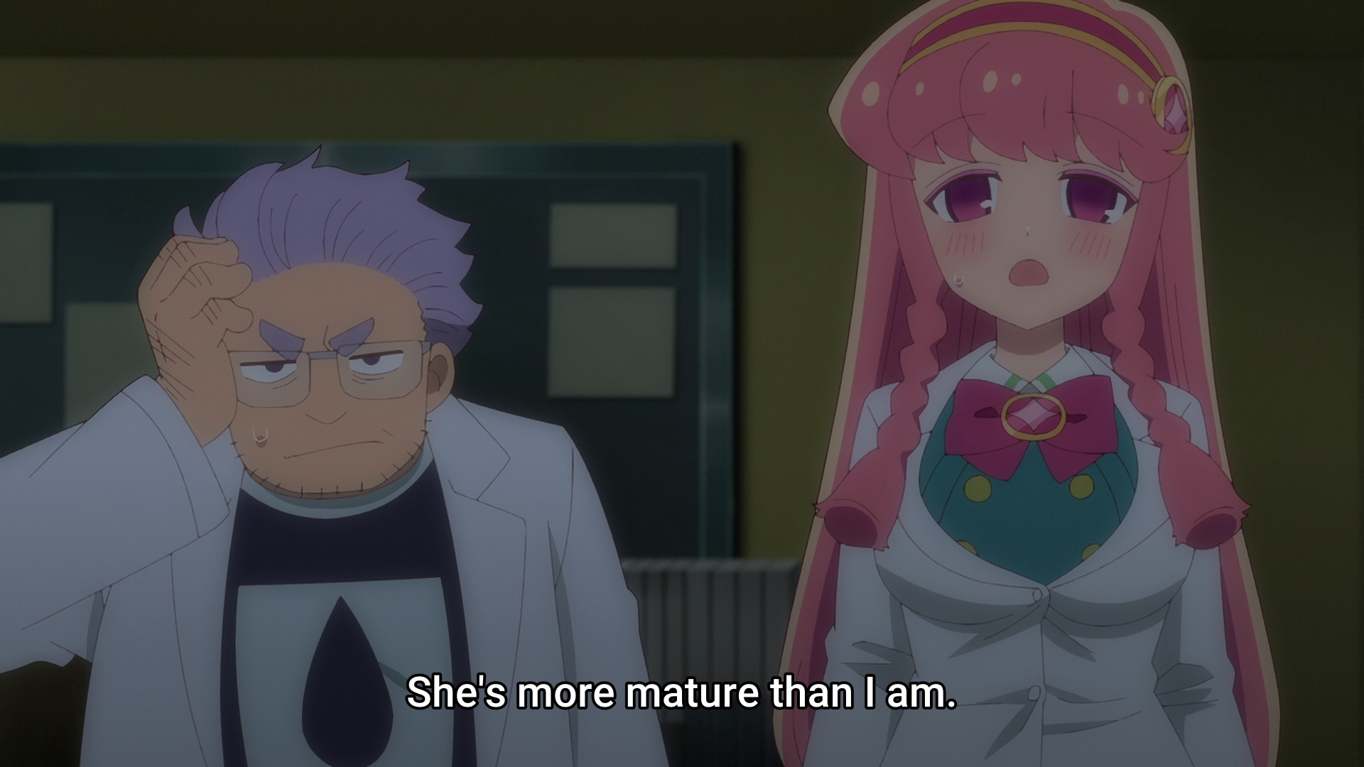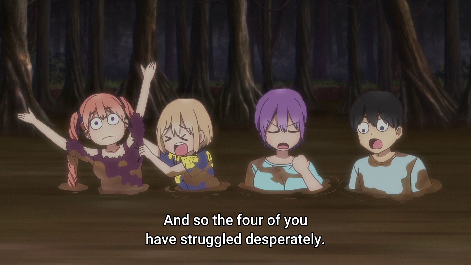 Серия в принципе довольно тупая, но когда в середине была короткая сцена с этой уныл-тян, у которой голос похож на ноющую псину, я чуть не выключил. Чем бы тайтл ни пытался быть, но такую унылую шаблонную поеботу делать тупо стыдно должно быть.