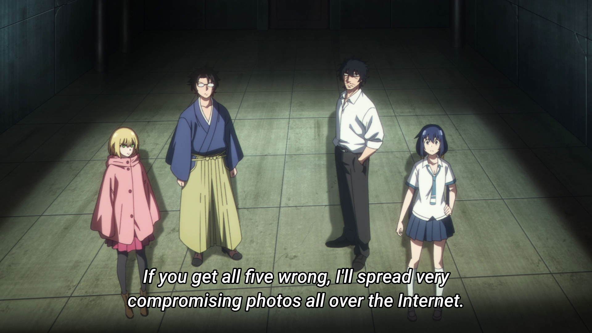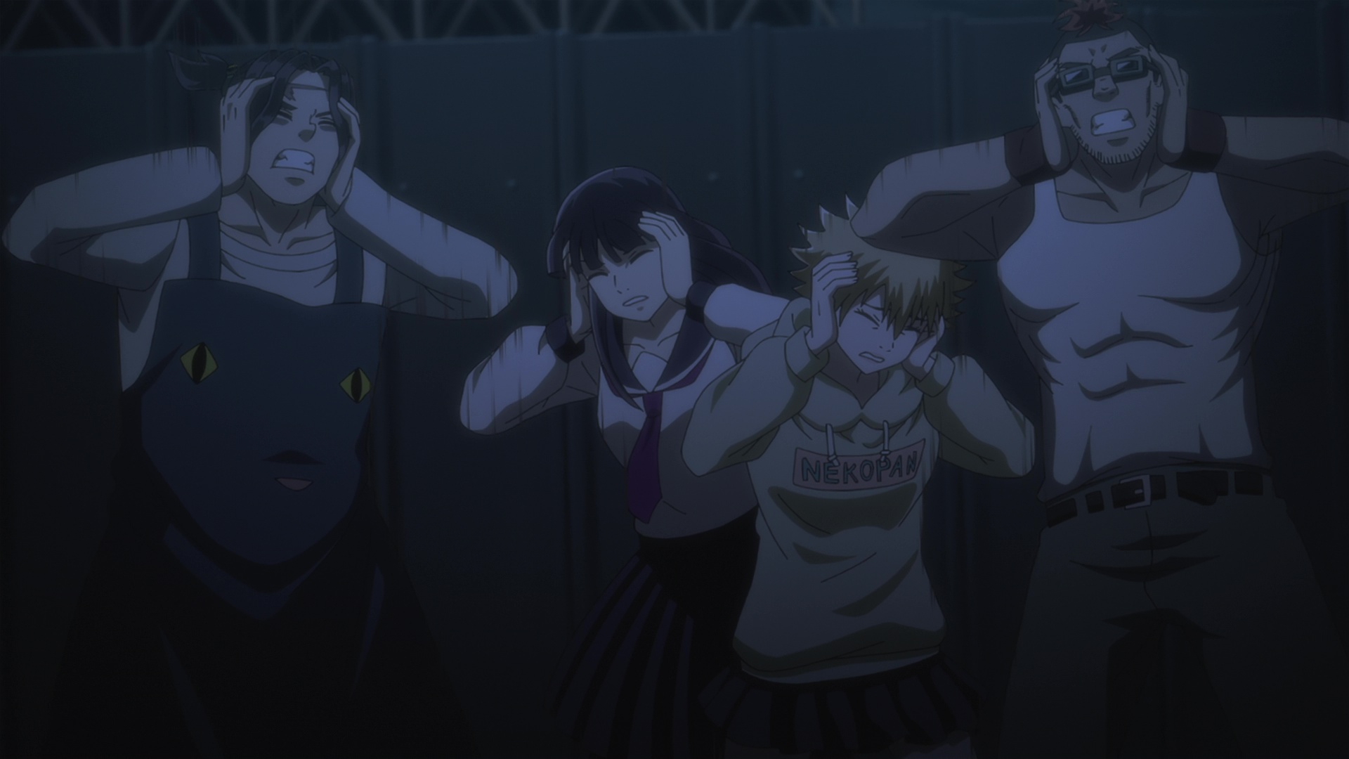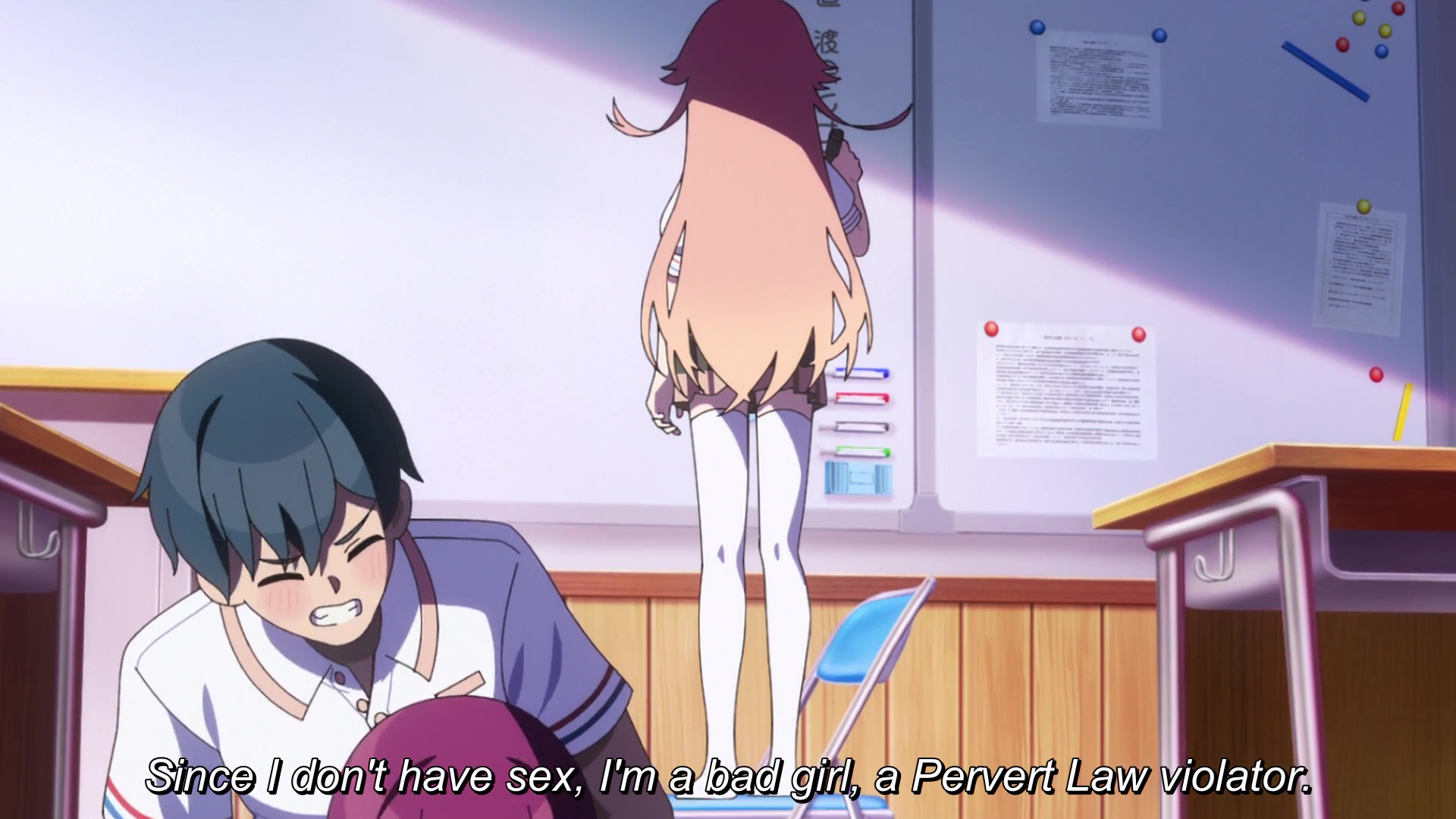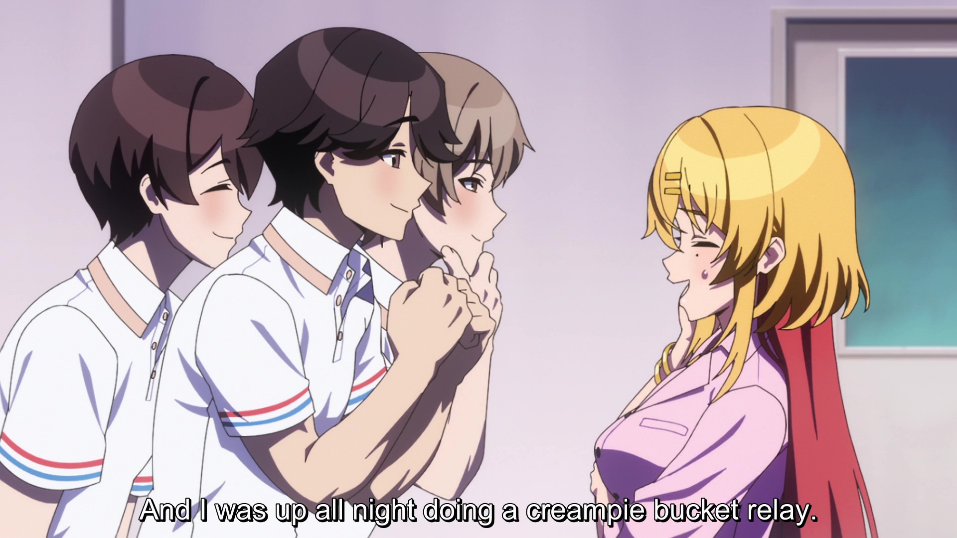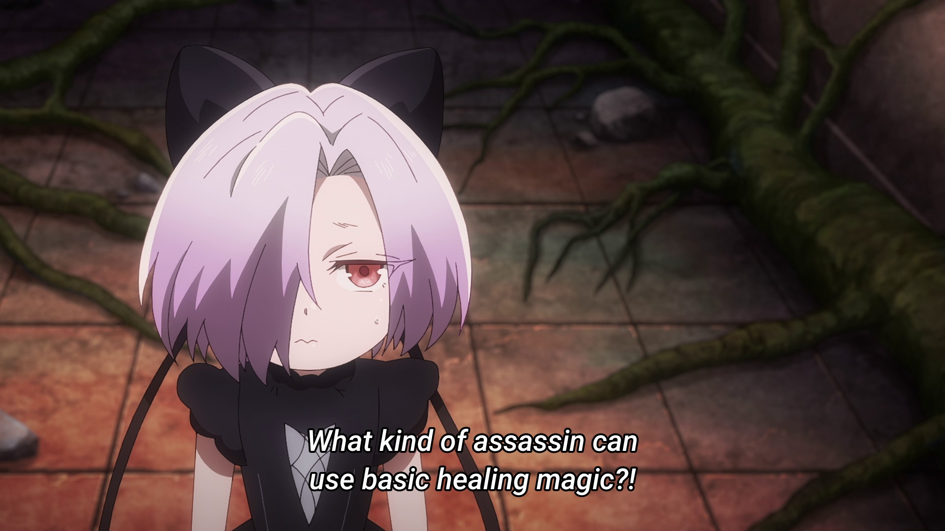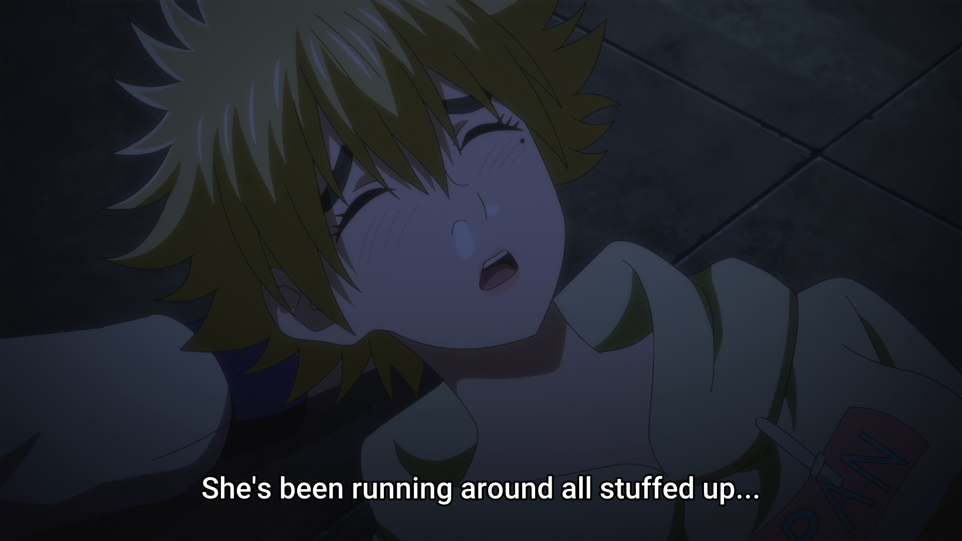 Серия в принципе довольно тупая, но когда в середине была короткая сцена с этой уныл-тян, у которой голос похож на ноющую псину, я чуть не выключил. Чем бы тайтл ни пытался быть, но такую унылую шаблонную поеботу делать тупо стыдно должно быть.
