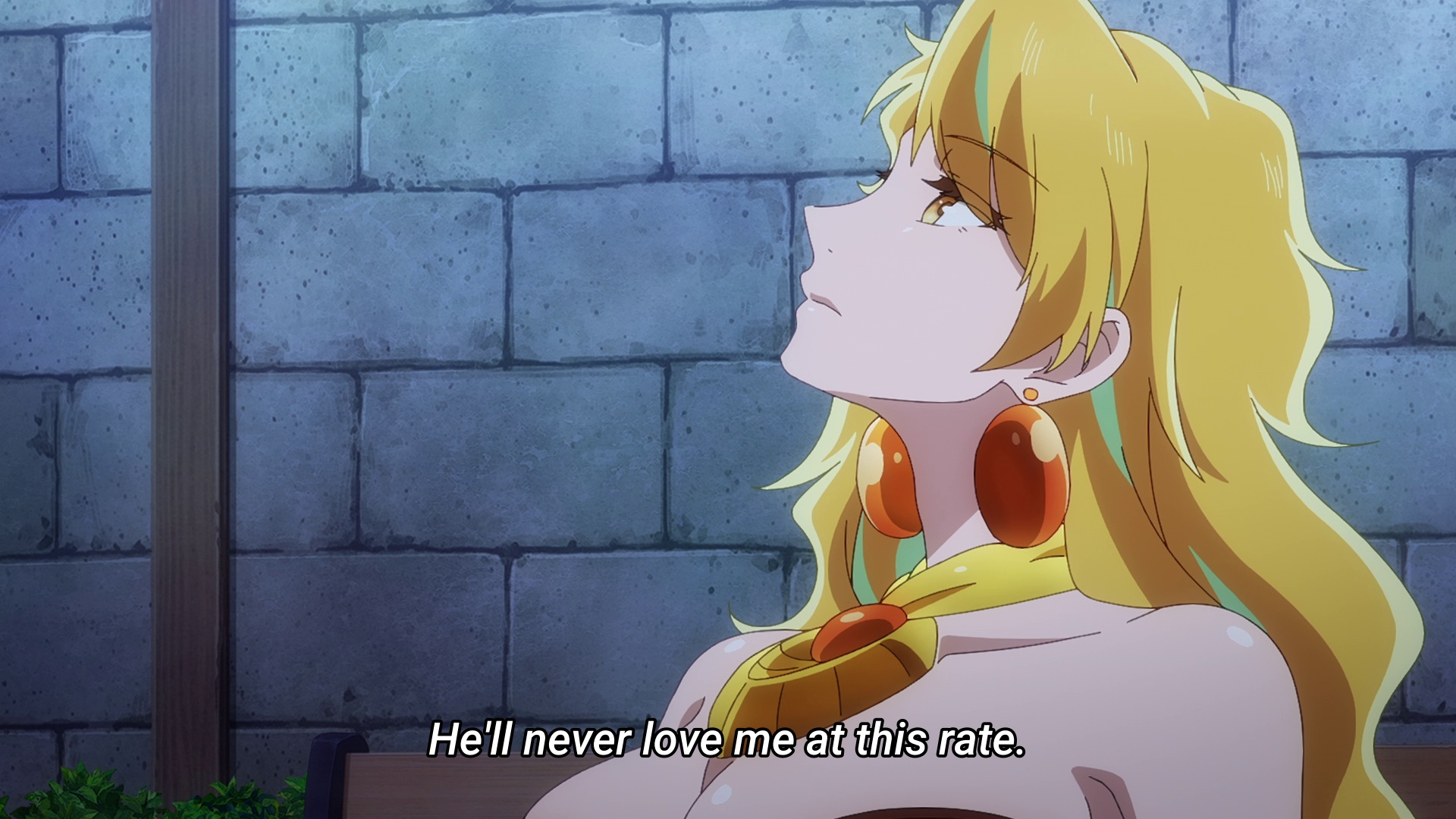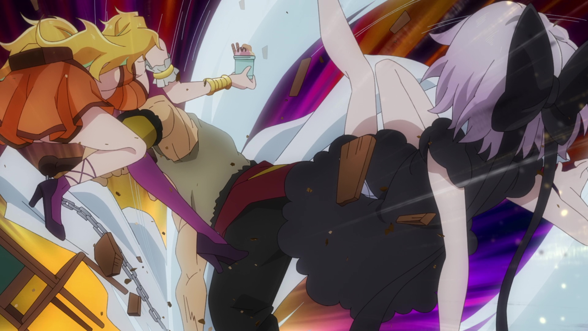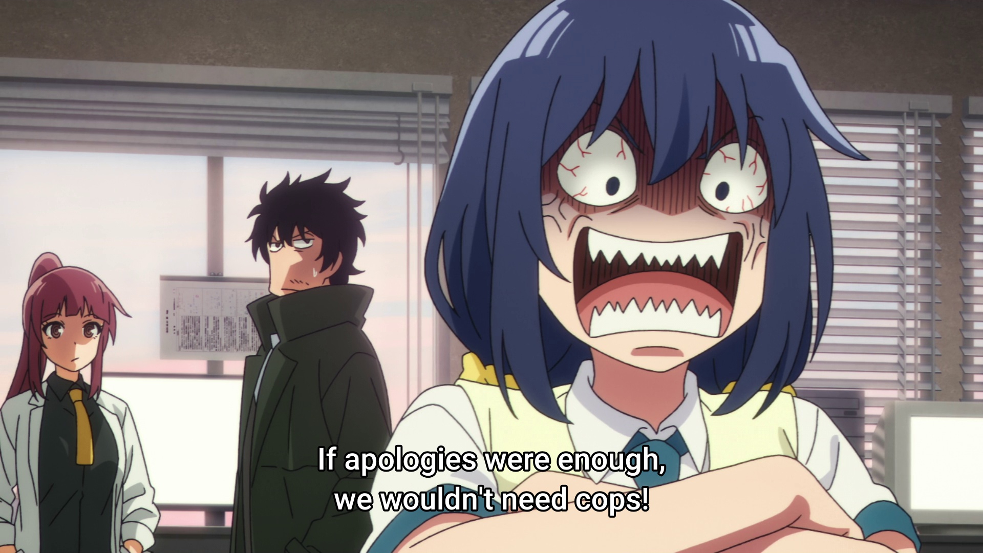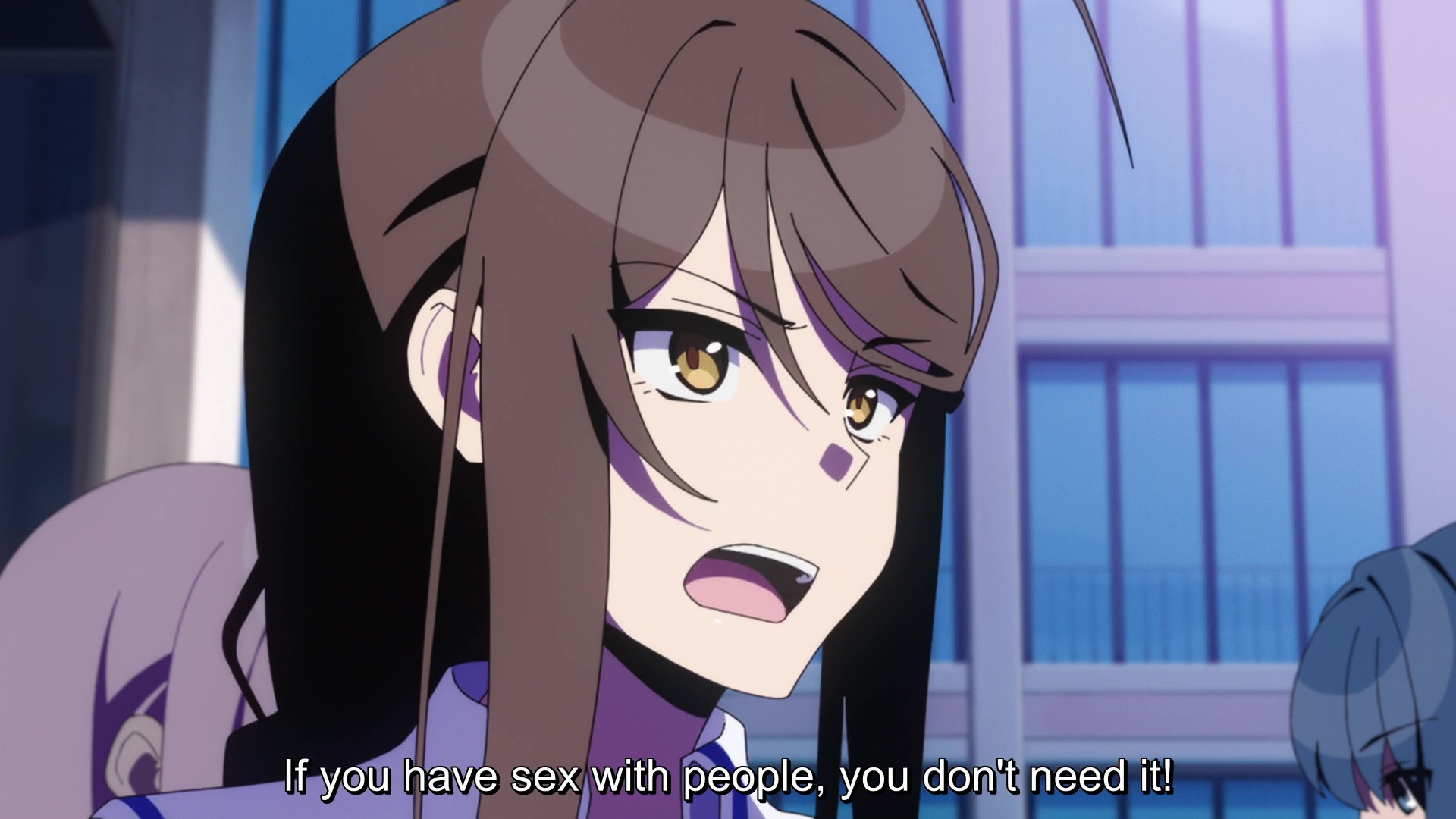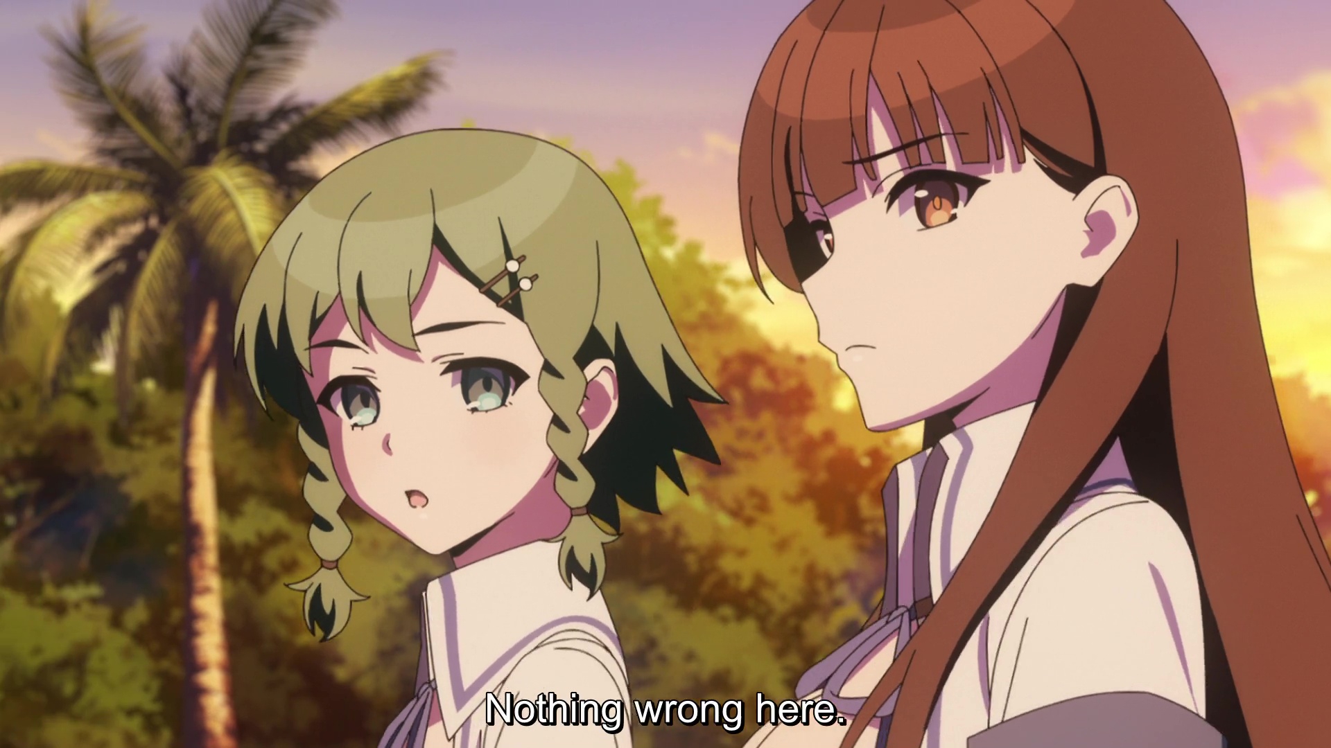 Серия в принципе довольно тупая, но когда в середине была короткая сцена с этой уныл-тян, у которой голос похож на ноющую псину, я чуть не выключил. Чем бы тайтл ни пытался быть, но такую унылую шаблонную поеботу делать тупо стыдно должно быть.