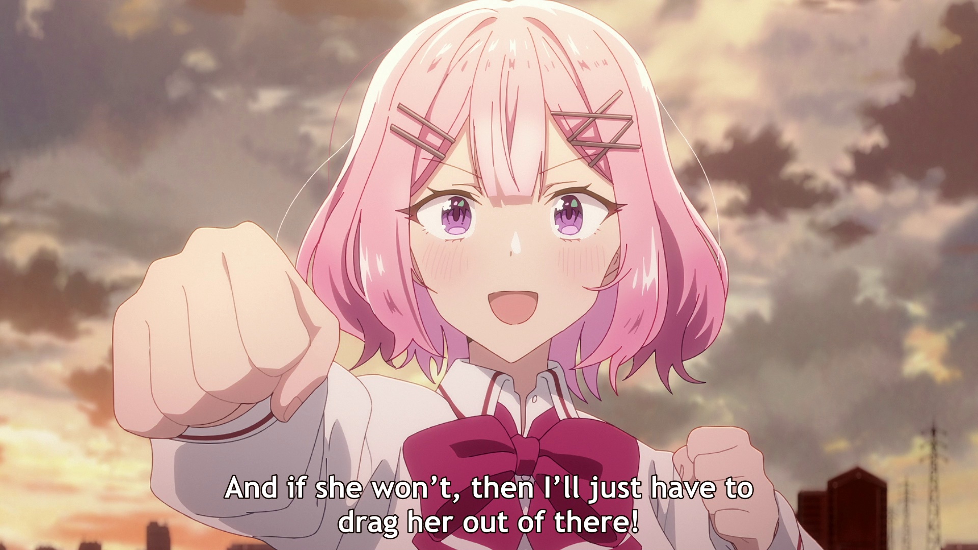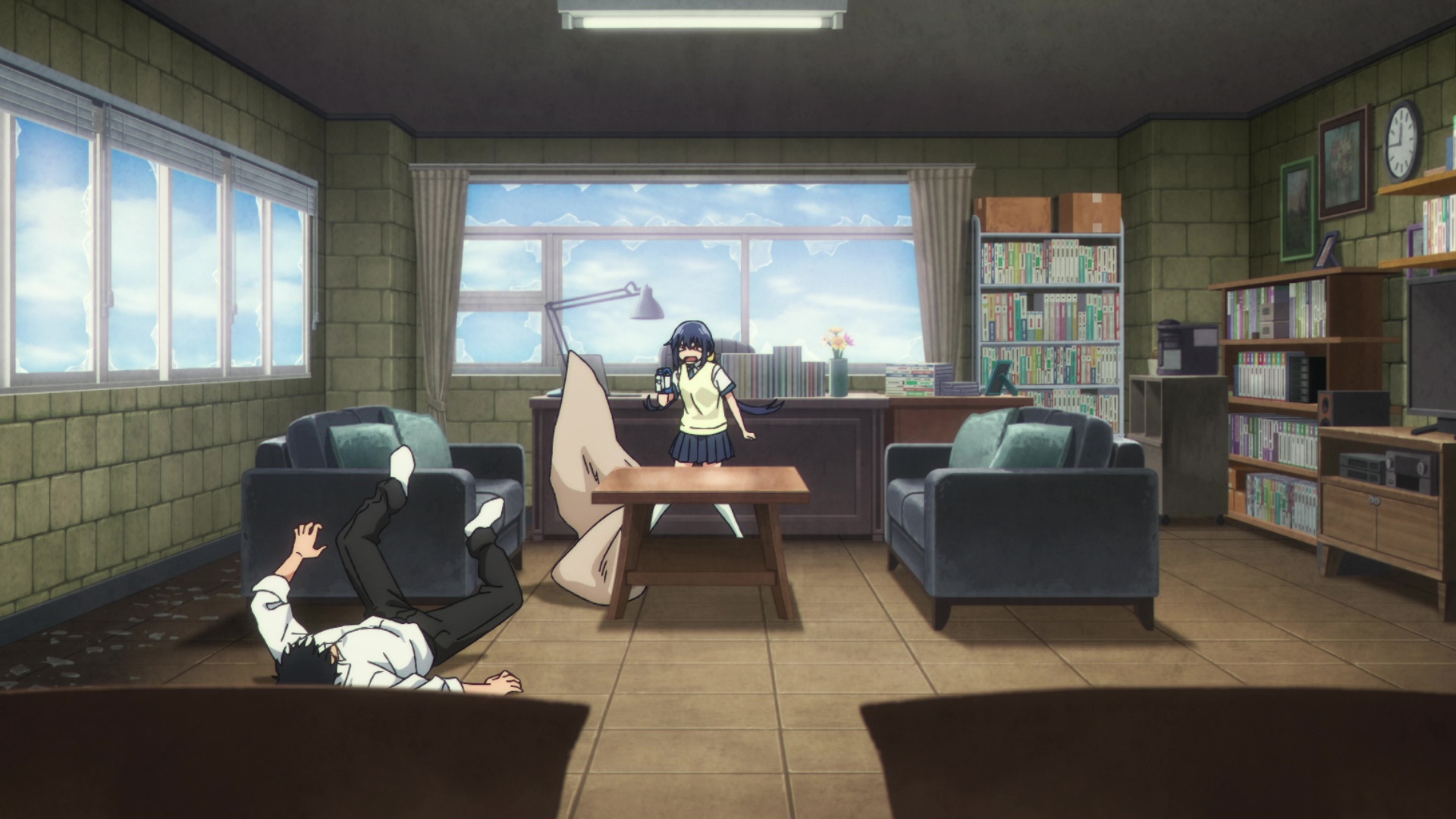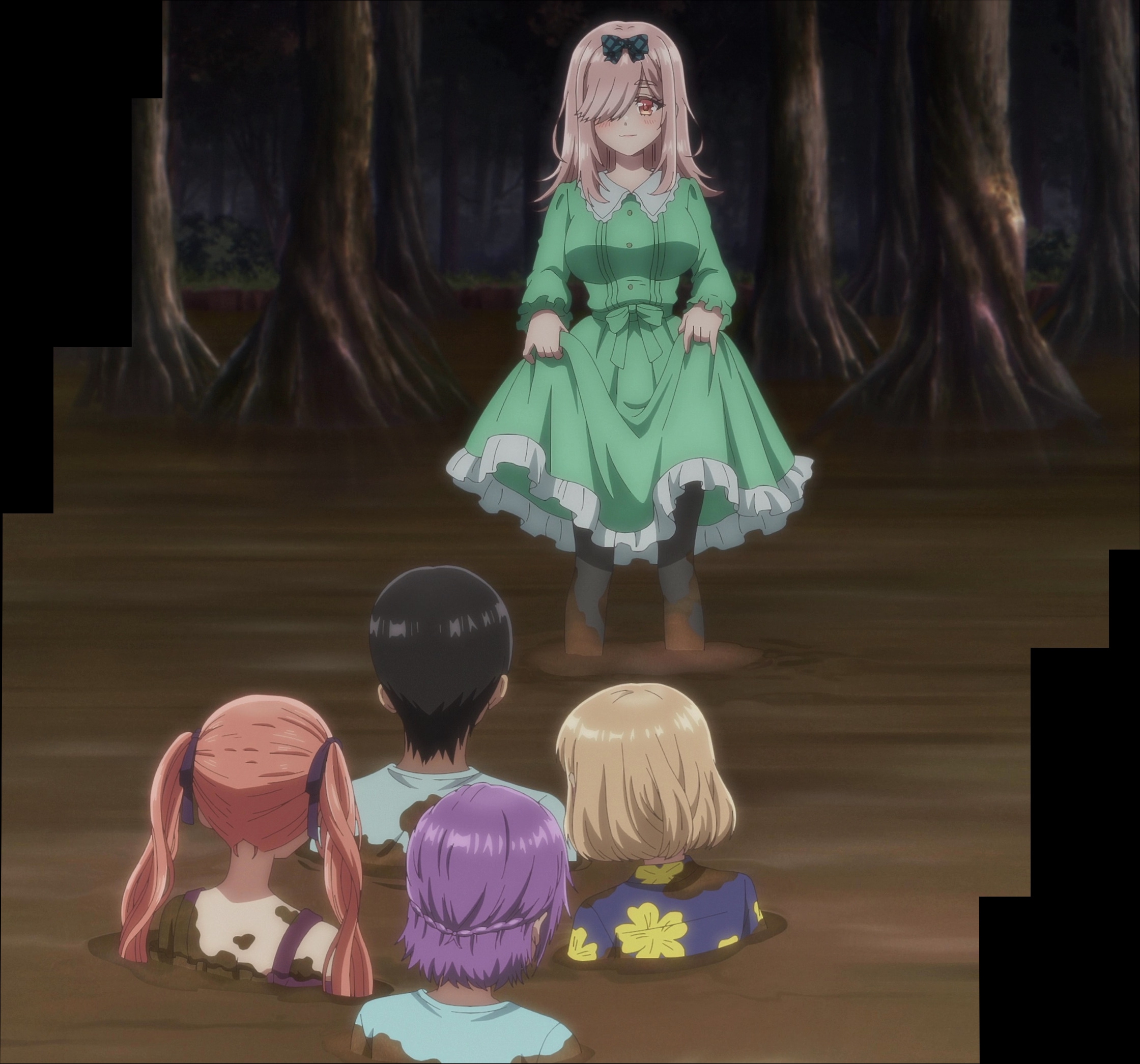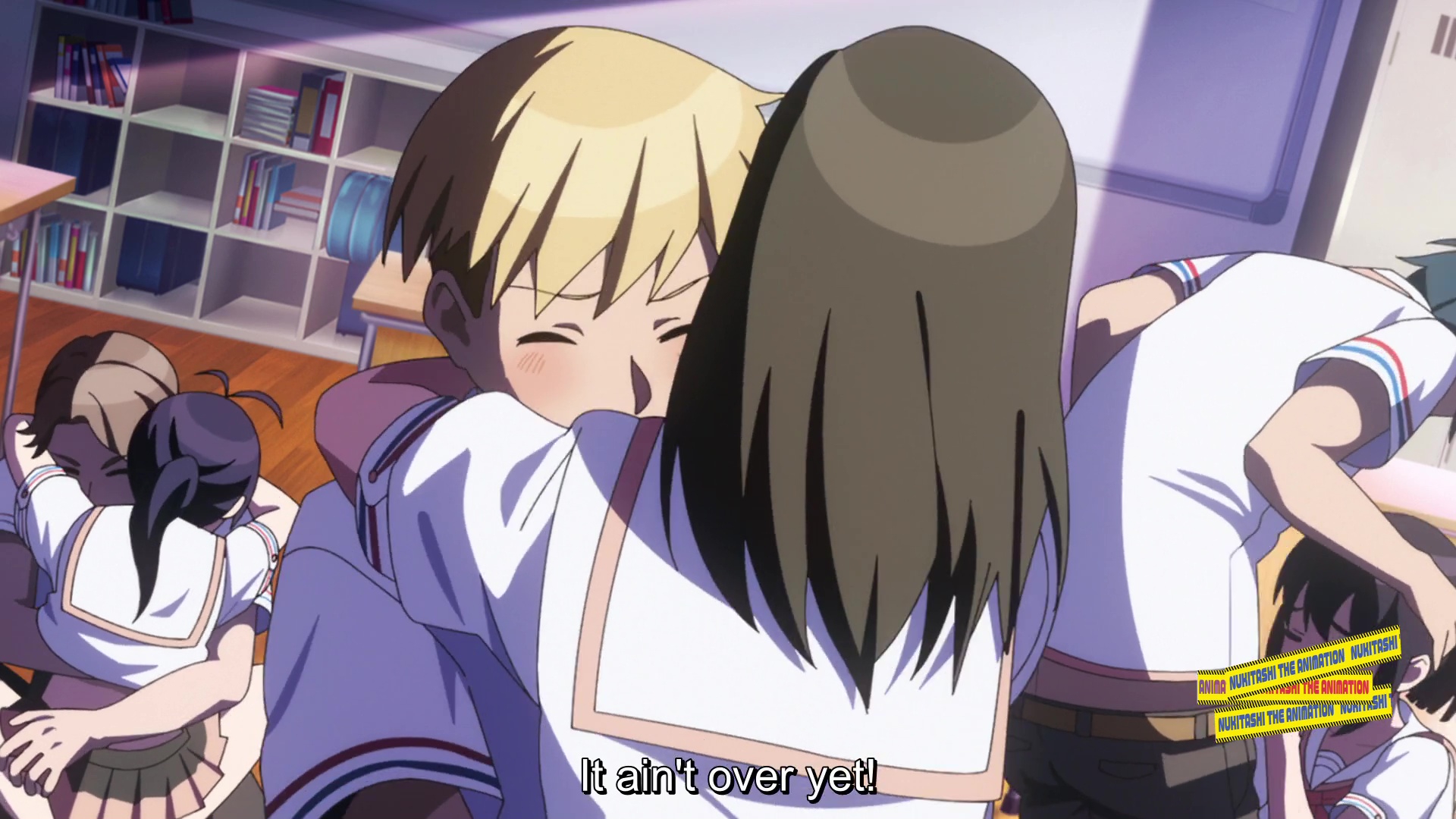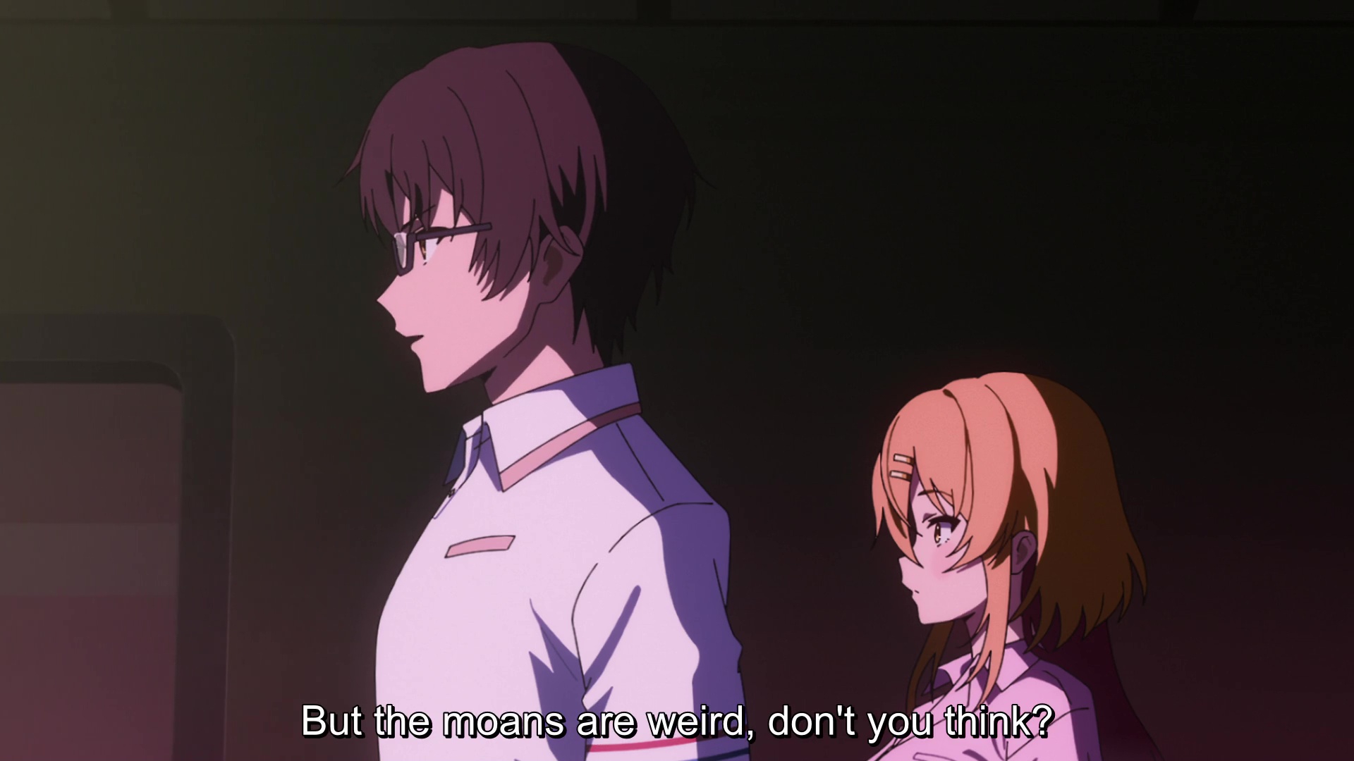 Серия в принципе довольно тупая, но когда в середине была короткая сцена с этой уныл-тян, у которой голос похож на ноющую псину, я чуть не выключил. Чем бы тайтл ни пытался быть, но такую унылую шаблонную поеботу делать тупо стыдно должно быть.