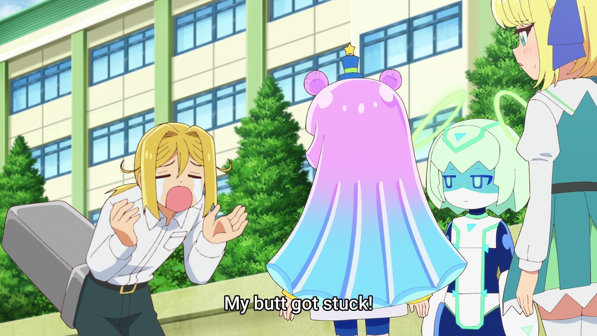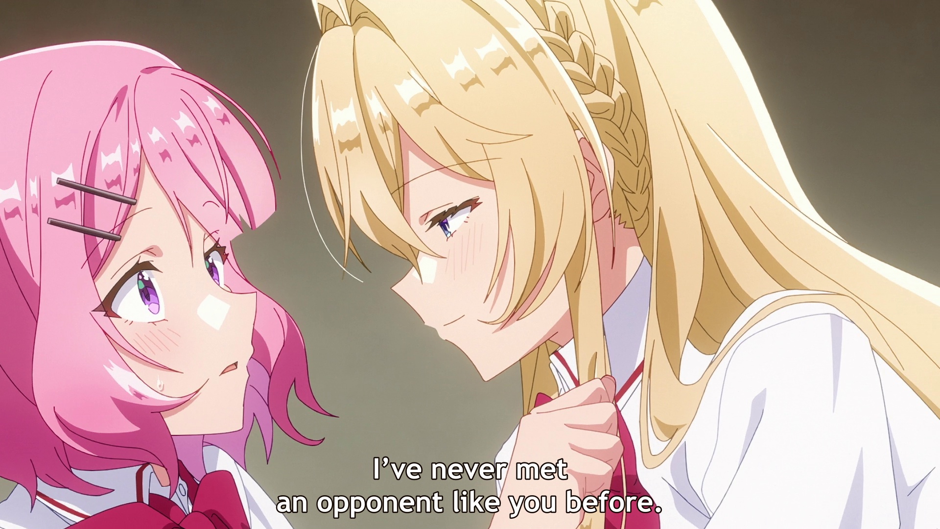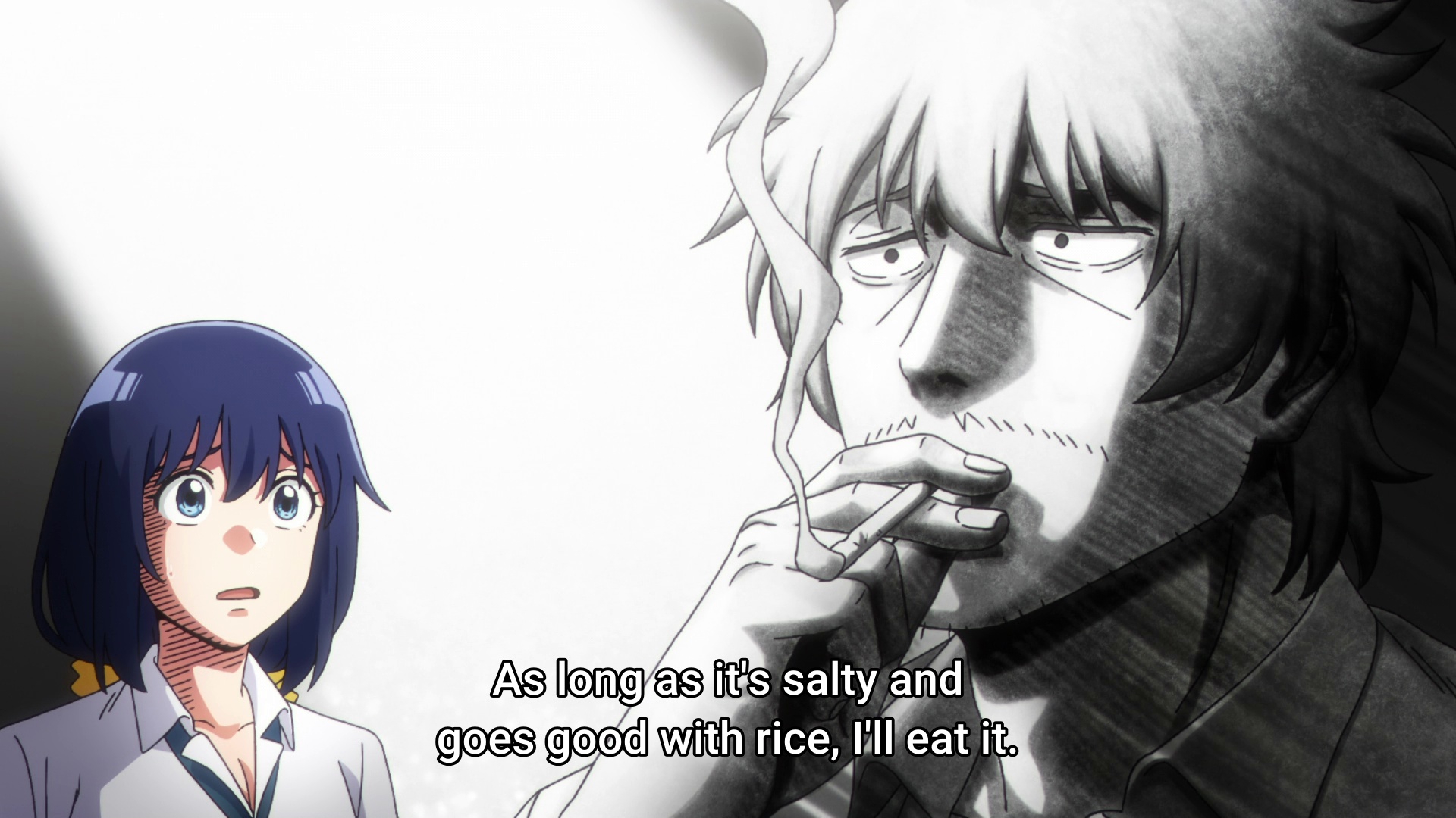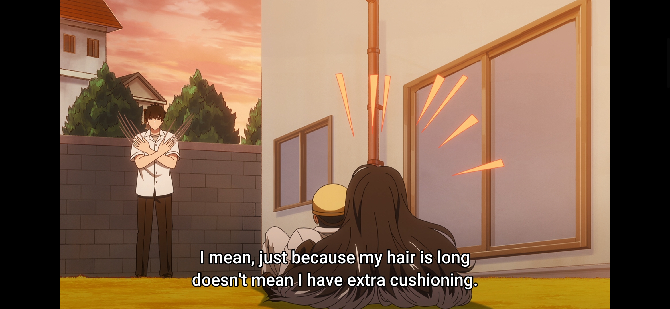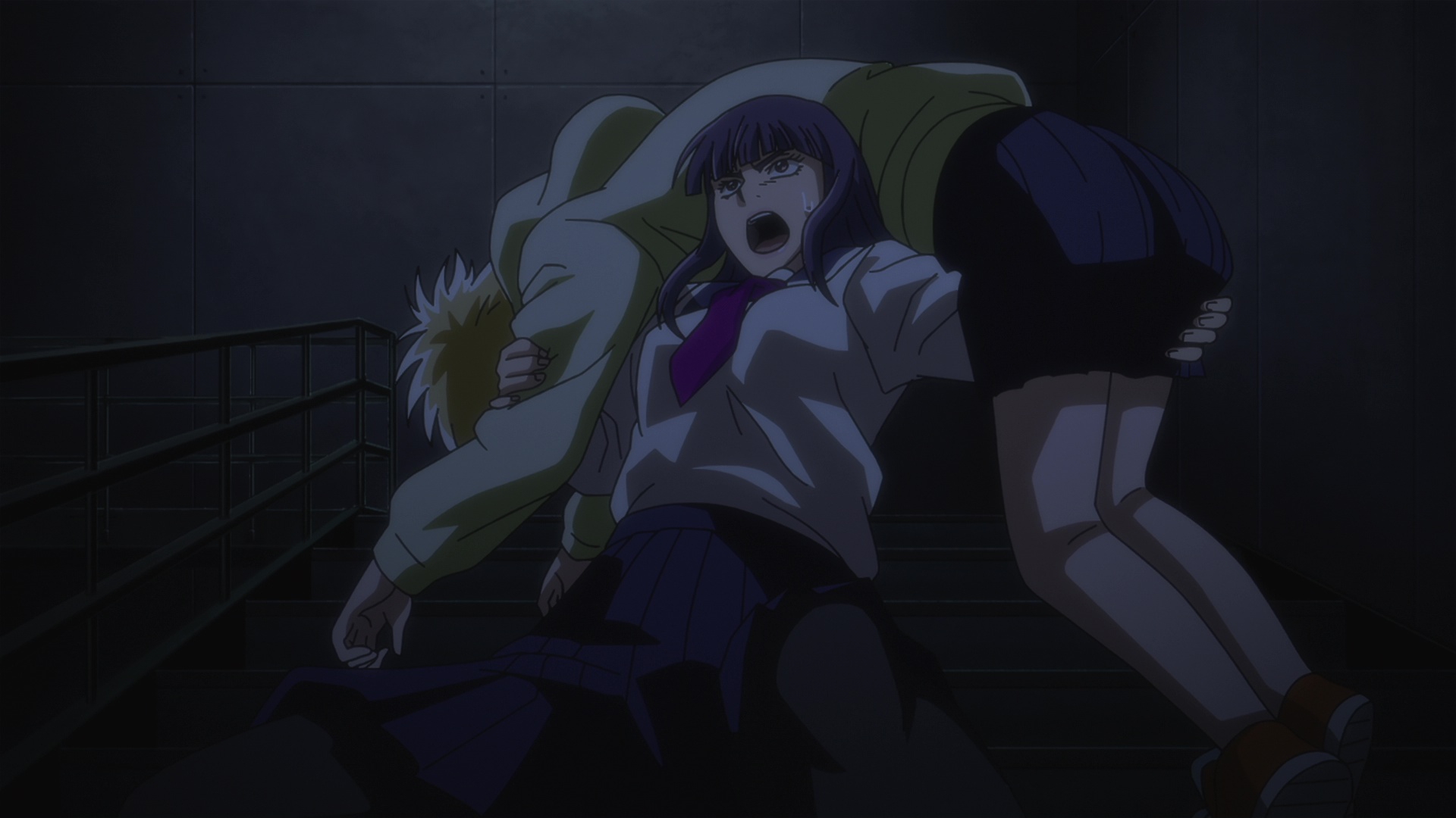 Серия в принципе довольно тупая, но когда в середине была короткая сцена с этой уныл-тян, у которой голос похож на ноющую псину, я чуть не выключил. Чем бы тайтл ни пытался быть, но такую унылую шаблонную поеботу делать тупо стыдно должно быть.