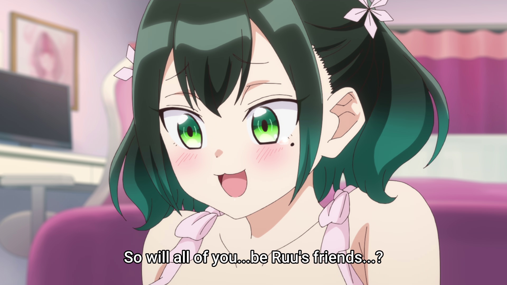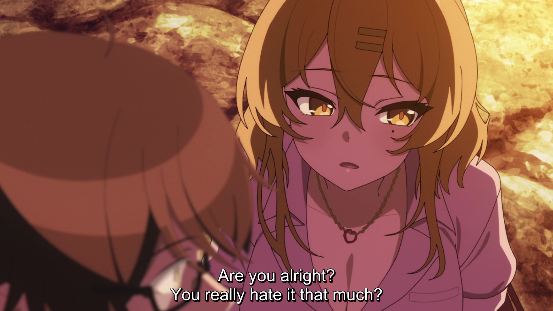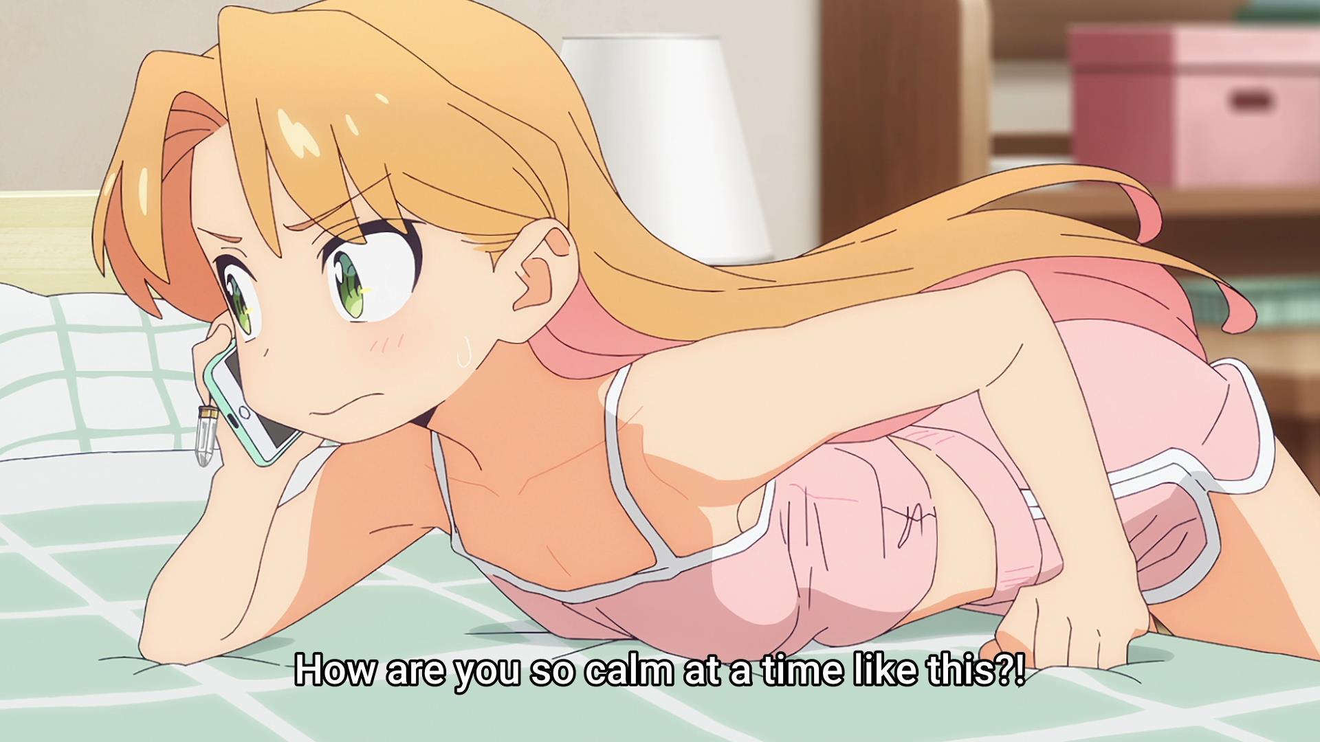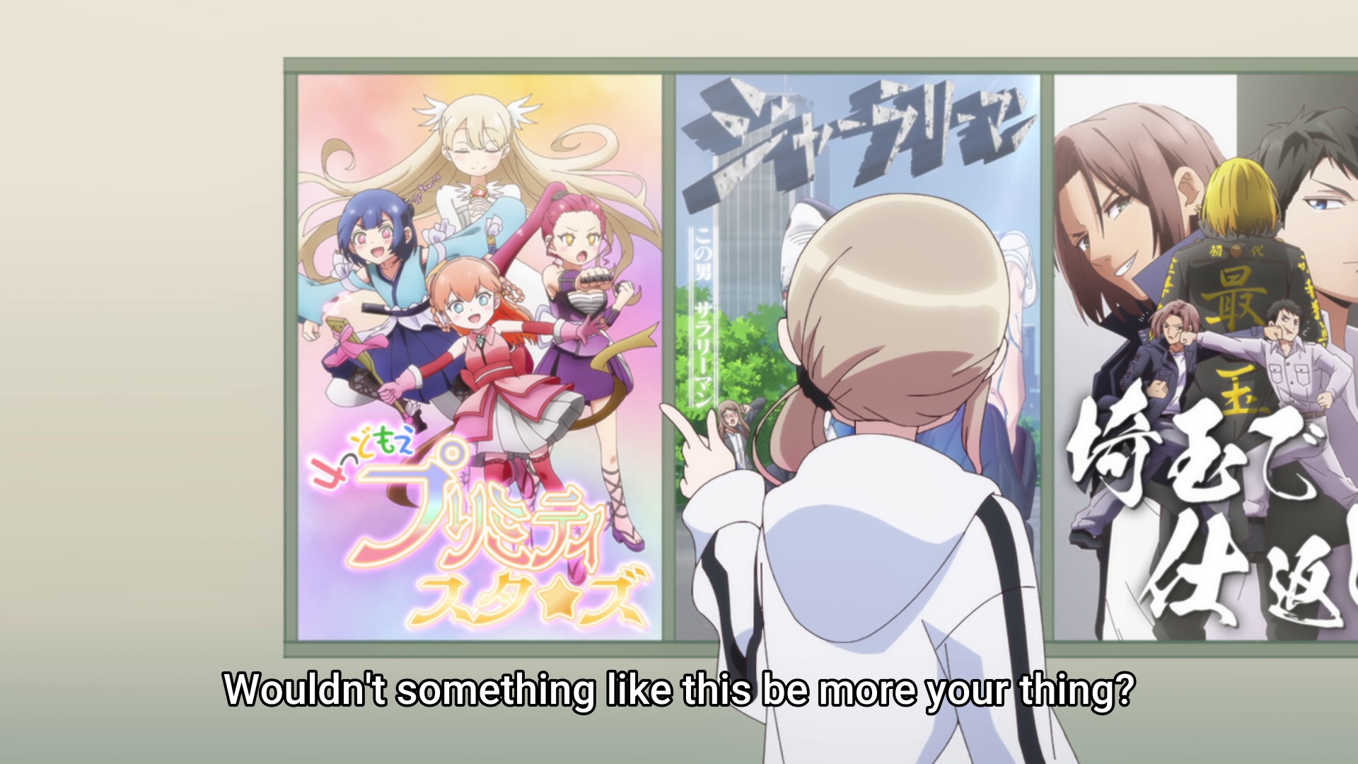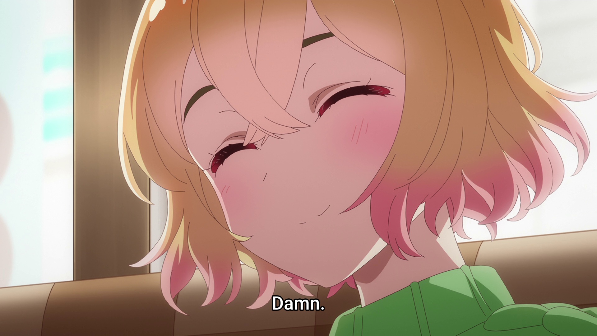 За всю серию из хорошего было: -Толпа именитых сейю у лолек -Сузу в кровати -Цуккоми Сузу в кино -Эндкард Всё. Остальные 22 минуты тупорылых шуток про семпайку, про то, что гг её псина, про дебильные рисунки и про стримерство. Хочется уже дропнуть, но всё же ещё серию потяну, если там всё в том же духе продолжится, то в пизду.