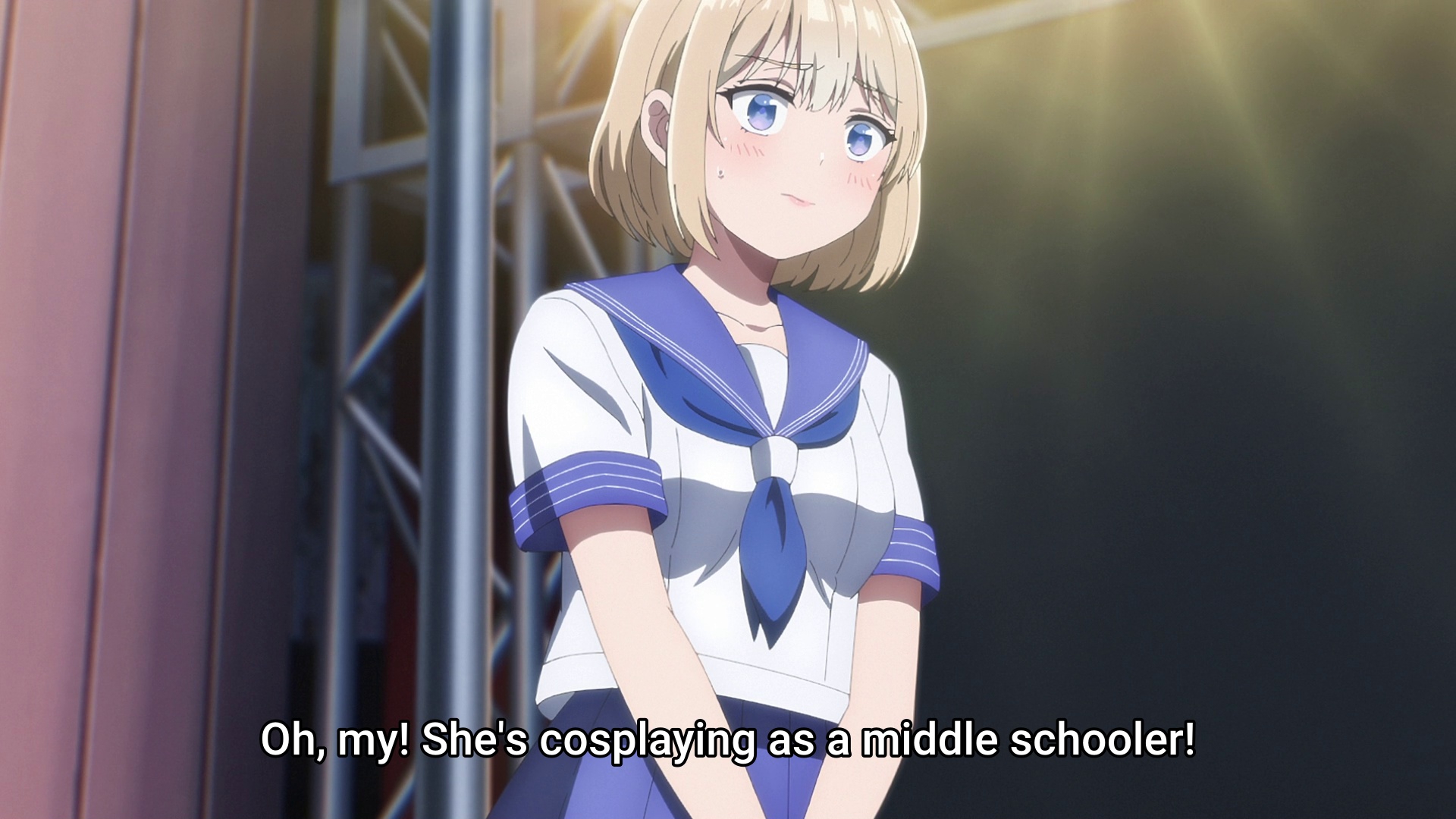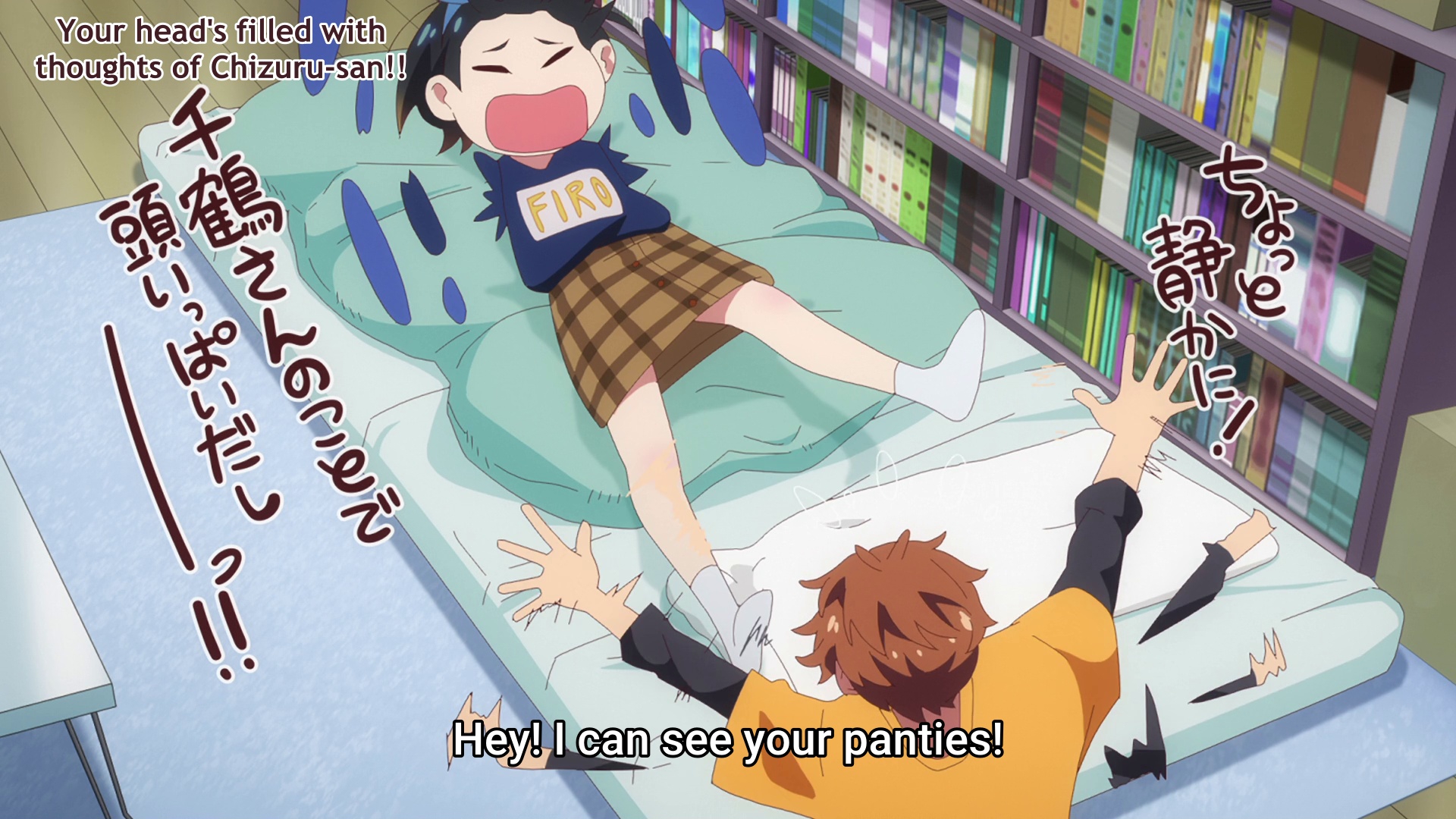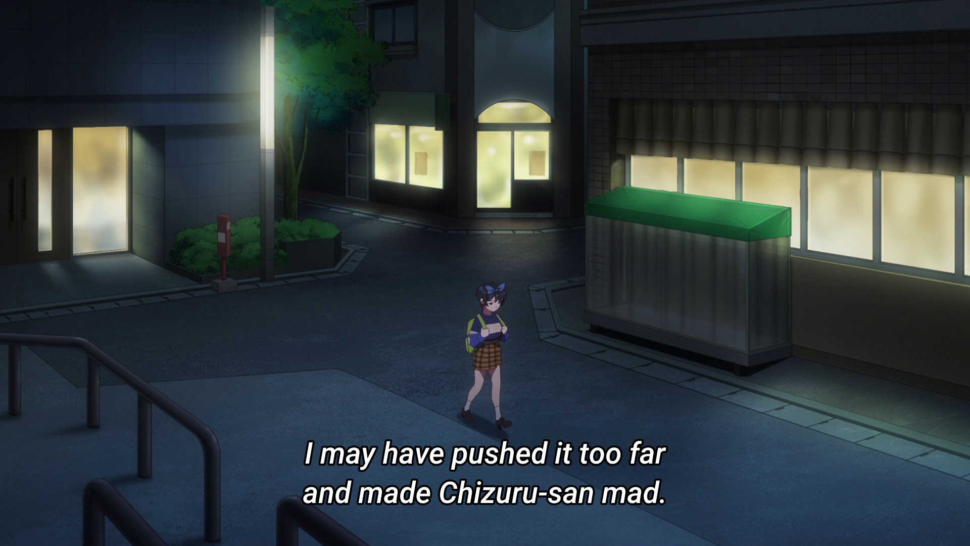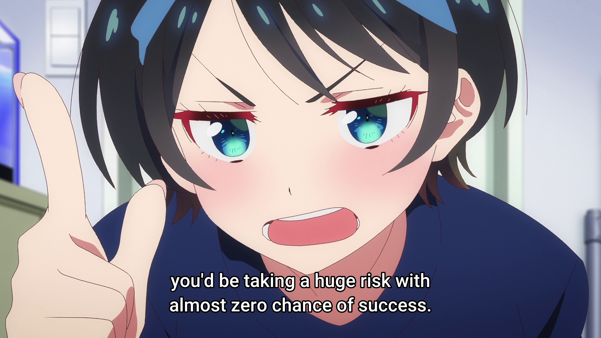 За всю серию из хорошего было: -Толпа именитых сейю у лолек -Сузу в кровати -Цуккоми Сузу в кино -Эндкард Всё. Остальные 22 минуты тупорылых шуток про семпайку, про то, что гг её псина, про дебильные рисунки и про стримерство. Хочется уже дропнуть, но всё же ещё серию потяну, если там всё в том же духе продолжится, то в пизду.