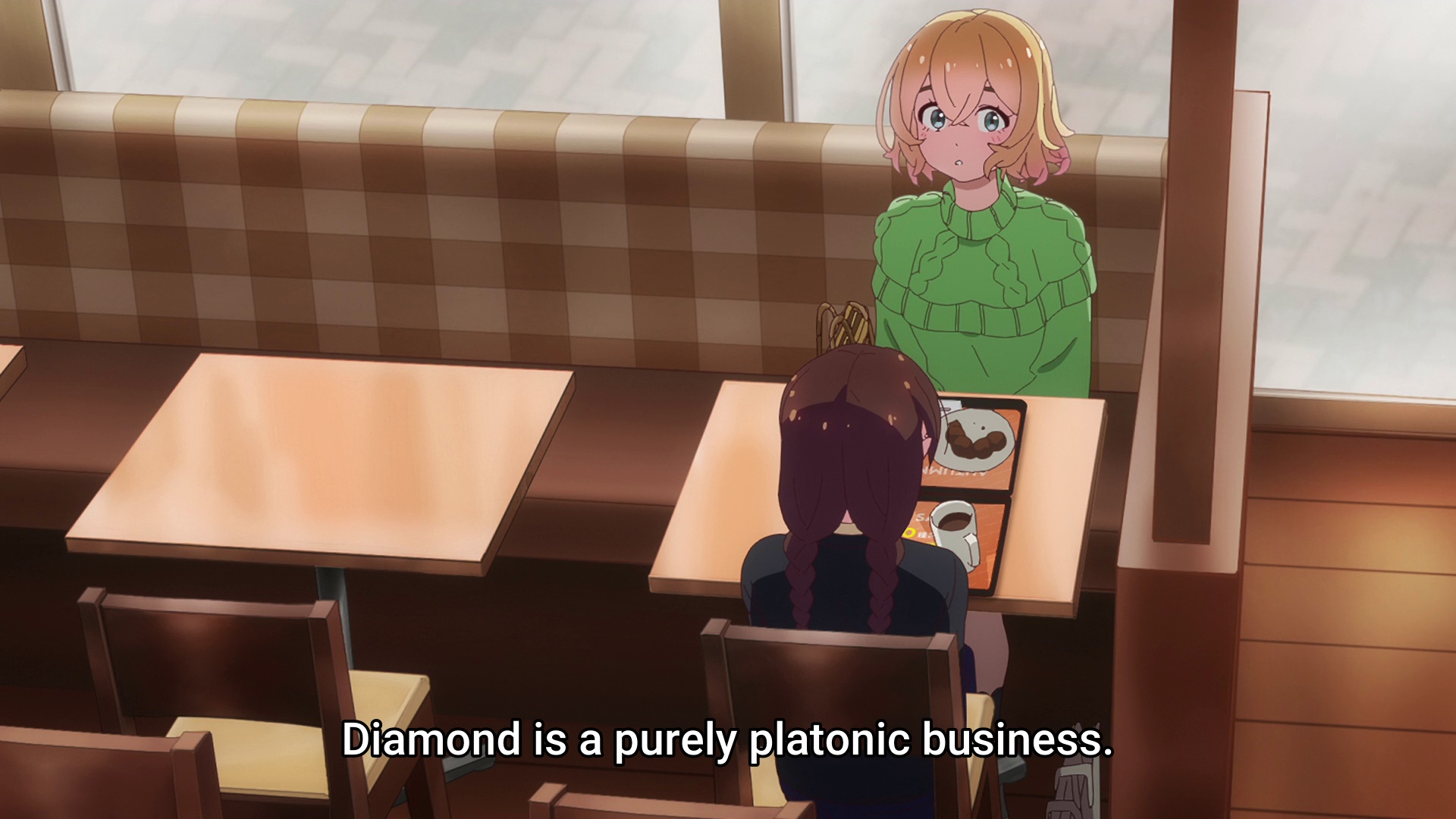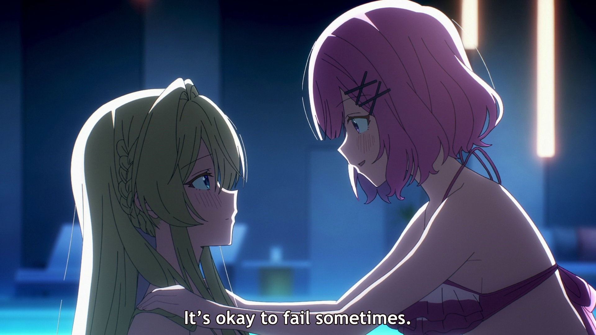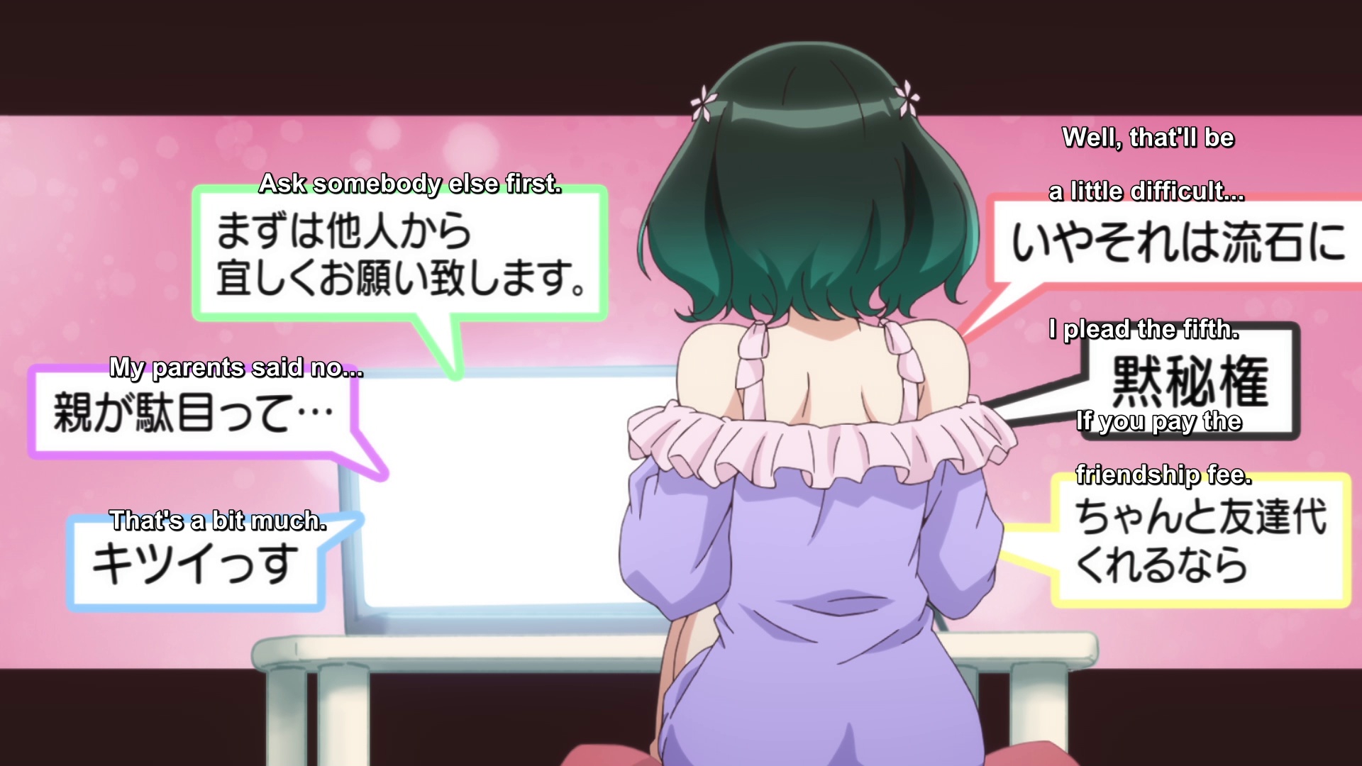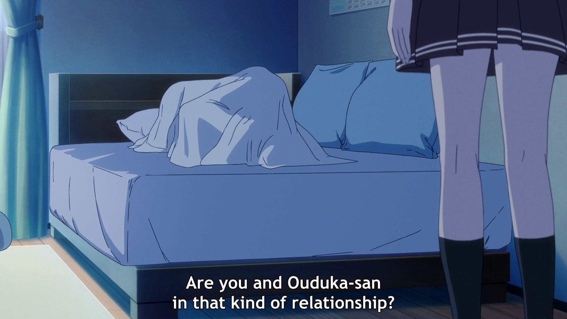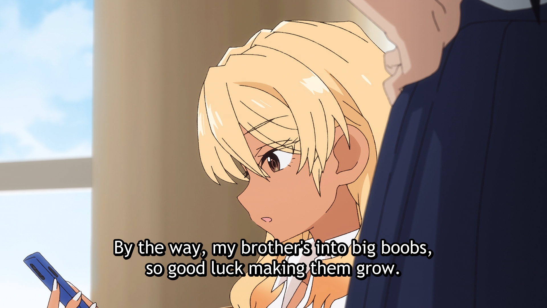 За всю серию из хорошего было: -Толпа именитых сейю у лолек -Сузу в кровати -Цуккоми Сузу в кино -Эндкард Всё. Остальные 22 минуты тупорылых шуток про семпайку, про то, что гг её псина, про дебильные рисунки и про стримерство. Хочется уже дропнуть, но всё же ещё серию потяну, если там всё в том же духе продолжится, то в пизду.