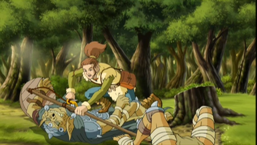 Ну и много всякого порезали. Из овражных гномов осталась одна Бупу, на 2 минутки. Битва с первой дарконицей быстро очень произошла. Даже первой стычки не было, когда она там РиверВинда кислотой облила. Ну и как ночью к Танису похотливая эльфийка завалиилась заменили простым разговором у озера. Зато вон как в мультосе она его встречает, лол.
