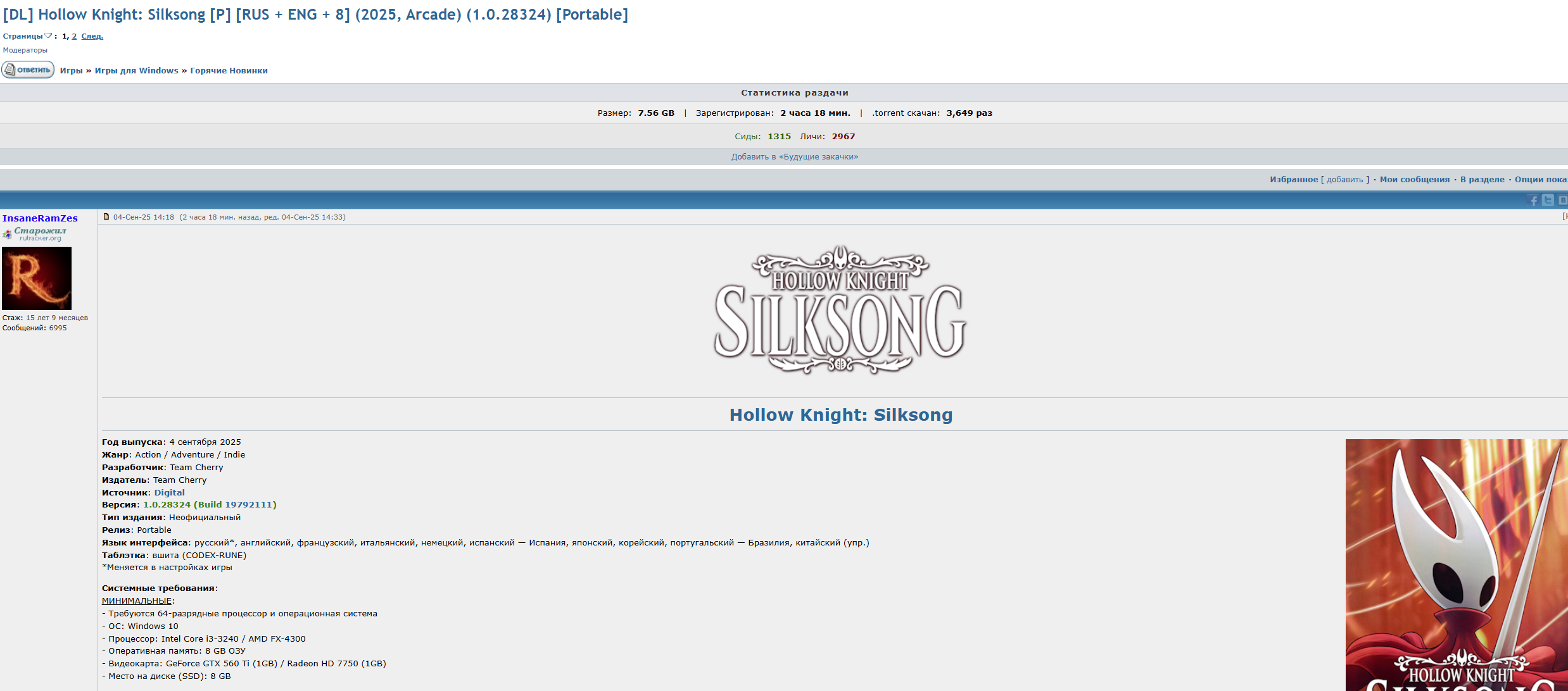 Что я сделаю перед тем, как сыграть в SilkSong 📌Переустановлю Windows 11 📌Установка игры на девственную систему чистую. 📌Взял отпуск с 4 сентября по 17 сентября 📌Разгоню процессор 📌Куплю тупо в гоге без скидки (максимально очистив себя от проблем и поддержав разрабов) 📌Начну играть в день выхода 4 сентября 📌Плотно посплю до 16-17 часов 4 сентября 📌Закажу еды вкусной наверное шашлыка, а может что-то ещё... Плюс энергетик "Red Bull" самый дорогой из обычных. 📌Отключу телефон, и уведомления везде. 📌Планируется 10-15 часовая сессия, если технически позволит игра. 📌Буду настраивать игру часа 1-2 (чтоб выбрать оптимальные настройки)