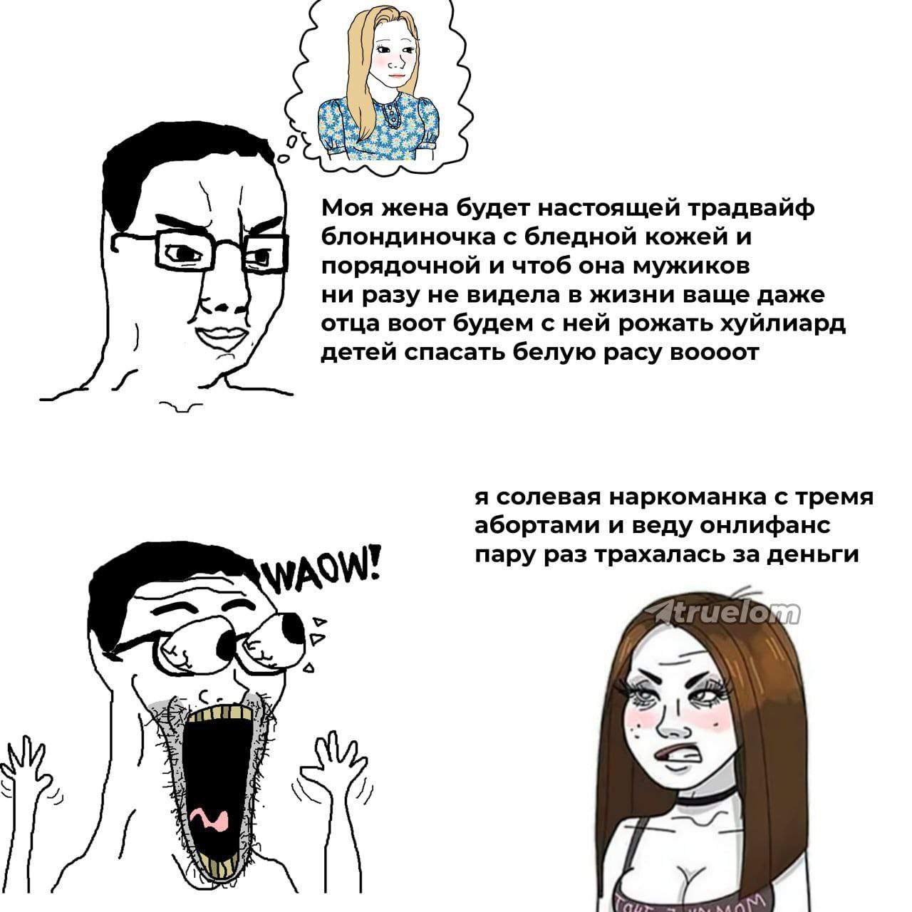 Допустим у вас есть неплохая должность с хорошей зп, есть тян которая оказывает знаки внимания, и согласна на отношашки и в дальнейшем расписаться и родить ребенка, пошли бы в это все? Я вот хз, во первых к свободному образу жизни привык, сложно перестроить себя к такой жизни когда тебе 31 уже а ты жил один все это время. Во вторых, начитавшись за эти годы столько историй на просторах интернета с ютубом, ты уже не веришь в позитивный сценарий семейной жизни, у тебя уже где то на подкорке мысли что тебя наебут и вставят нож в спину. На практике как раз часто такое и бывает, где мужчина все для семьи а его предают. Ну и в третьих, как то нет желания создавать семью с бабой у которой уже были отношения. Пока ты там делал карьеру, получал возможно отказы, любая баба 18+ в это время спокойно отношалась с другими, вела переписки, ебалась, целовалась, в целом была погружена полностью эмоционально в других кунов до тебя. То есть, до тебя она уже говорила люблю кому-то беря хуй в рот. Согласитесь есть некая несправедливость в этом всем? Современный брак что это вообще? Натаха у которой часики затикали ищет подходящего мимокрока чтобы залететь от него? Это же просто выглядит как сделка или совместный бизнес, где ты в проигрышной позиции уже на старте, и помимо роли обеспечуна, ты еще и в разных ситуациях особенно конфликтных должен корчить из себя мужика в социуме, перед своей разъебаной натахой. Я такое наблюдаю очень часто,особенно в напряженных ситуациях, стоит Скуф со своей Наташкой и он всегда все разруливает а она со стороны на это смотрит с похуизмом, иногда даже не вмешиваясь. Нахуя мужику сегодня брак Антош? Сегодня лучший варик это когда залетела от тебя, и ты в закат уходишь. Ты и род продолжил, и поднял плодячку.
