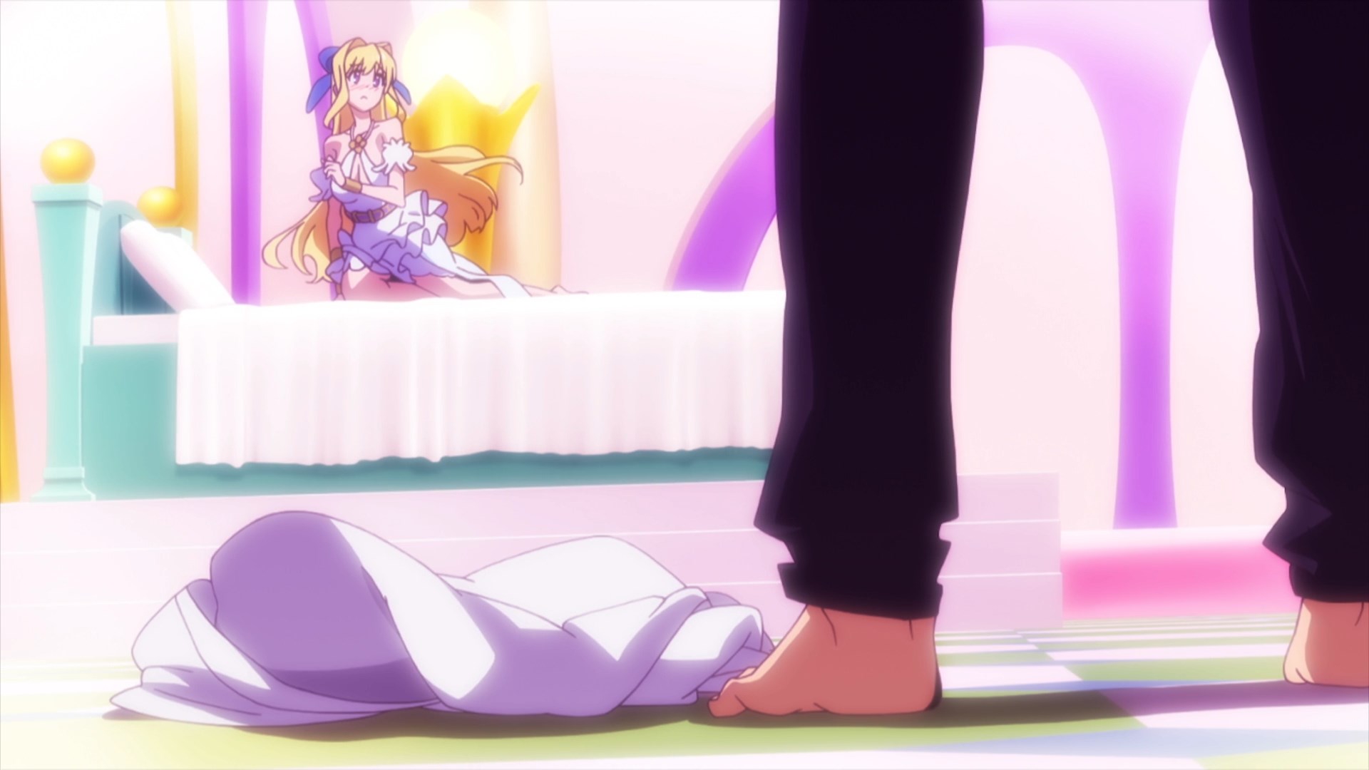 Это прям вот тайтл, который никуда не хочет двигаться. Не хочет персонажей интересно раскрывать (разве что бабу проклятую сделали террористкой, чтобы от неё избавиться поскорее и чтобы соотношение баб к сасикам стремилось к идеалу), не хочет сюжет двигать, не хочет тайны дополнительные вводить или существующие раскрывать. Сказали вначале, что есть вот принц, что его хотят убить, ну и всё, на этом движение кончилось, дальше просто бесконечный повтор шуток про хикку, показ сасиков, и периодические флешбеки о том, как Моника страдала.