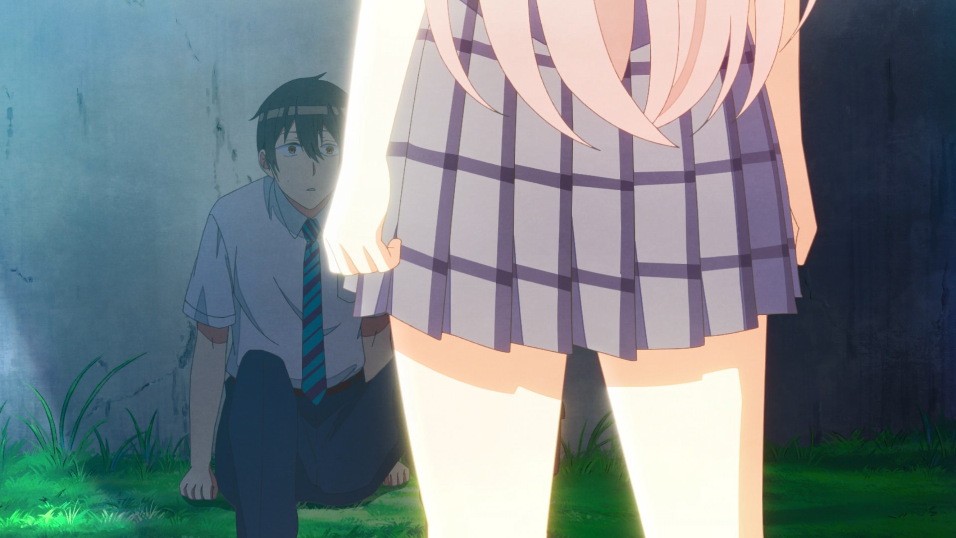 Как-то хидойно сажать чмошеля флиртовать с новинкой, сразу после романтической серии, в которой Китагава чуть ли не в любви ему признавалась. Здесь либо неудачный скип куска манги, либо сценарист совсем ебобо.