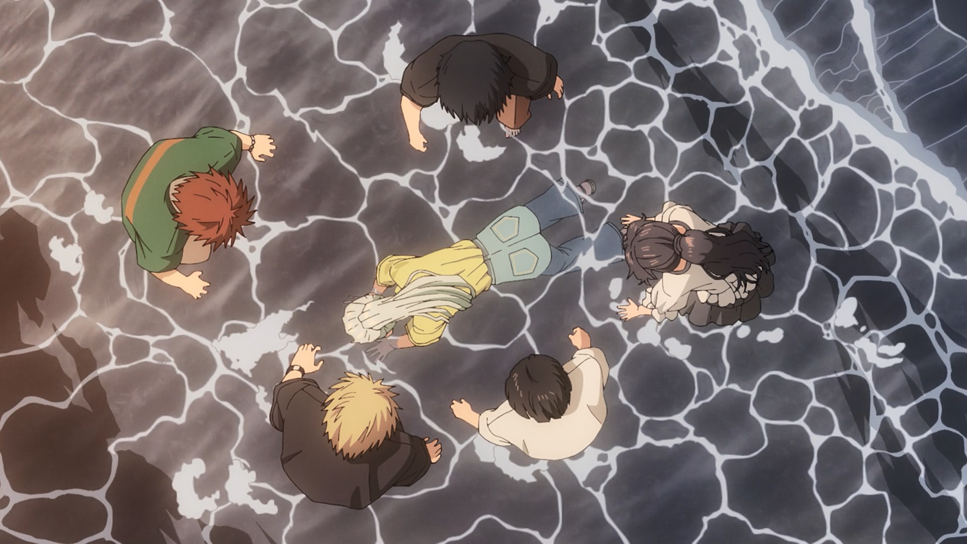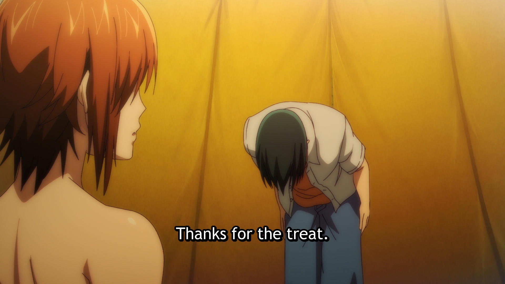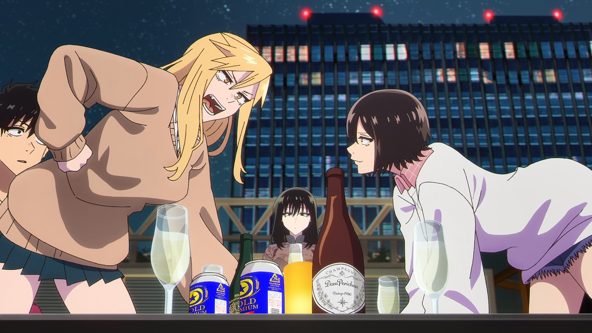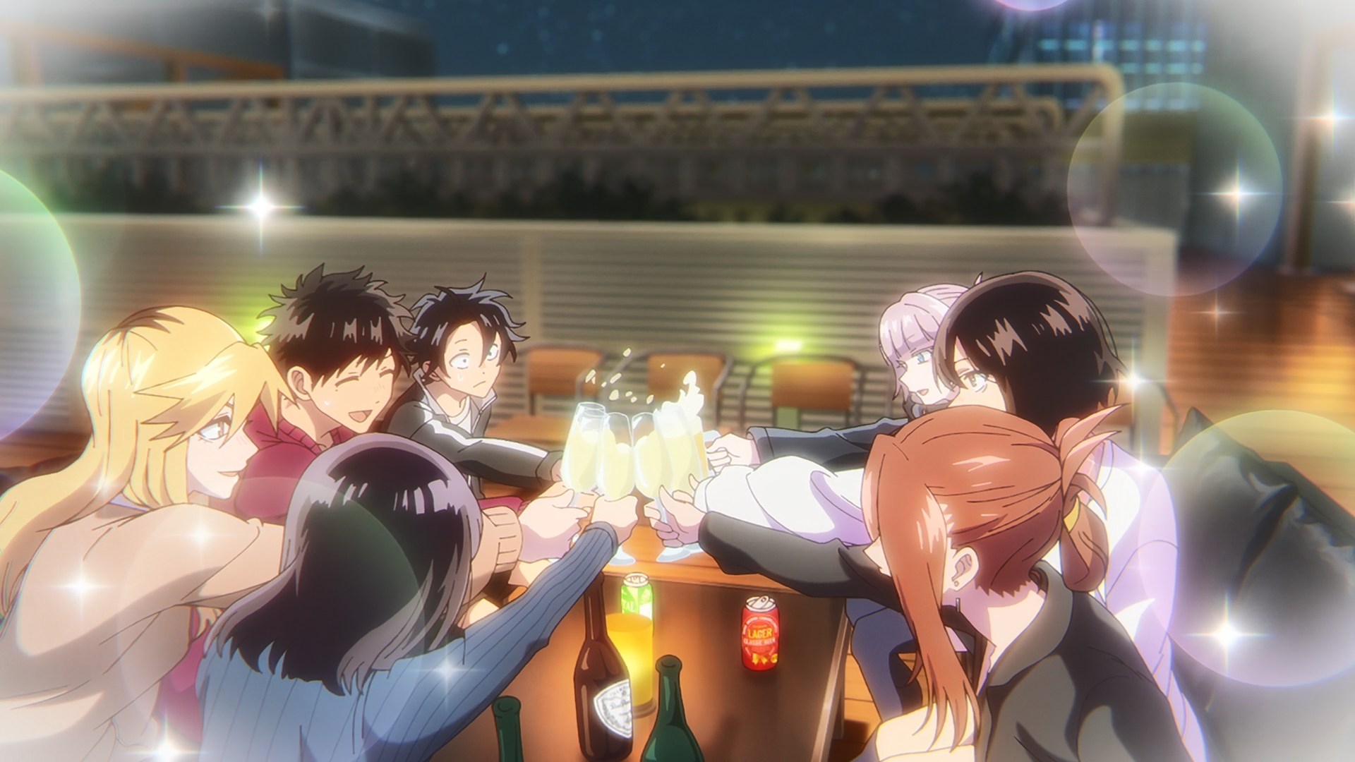 Все до одного сидят бухают, а ГГ один хер сок налили, потому что несовершеннолетний. Взрослая жизнь с точки зрения аниме, надо понимать. Видимо такая же скрепа для япов, как пиксельная пизда в порнухе, которую если нарушить, то вместо проката на тв получаешь хуй.