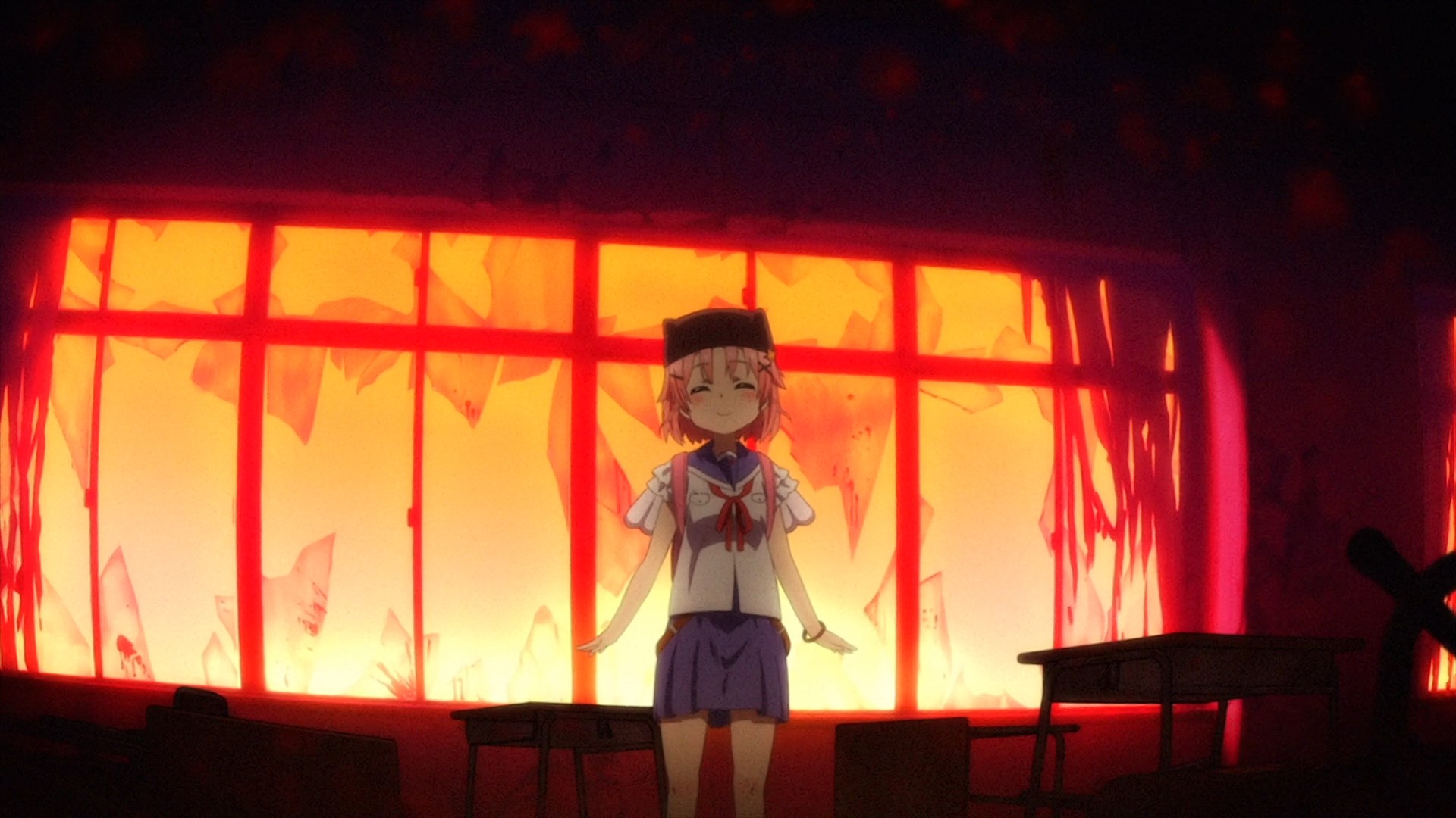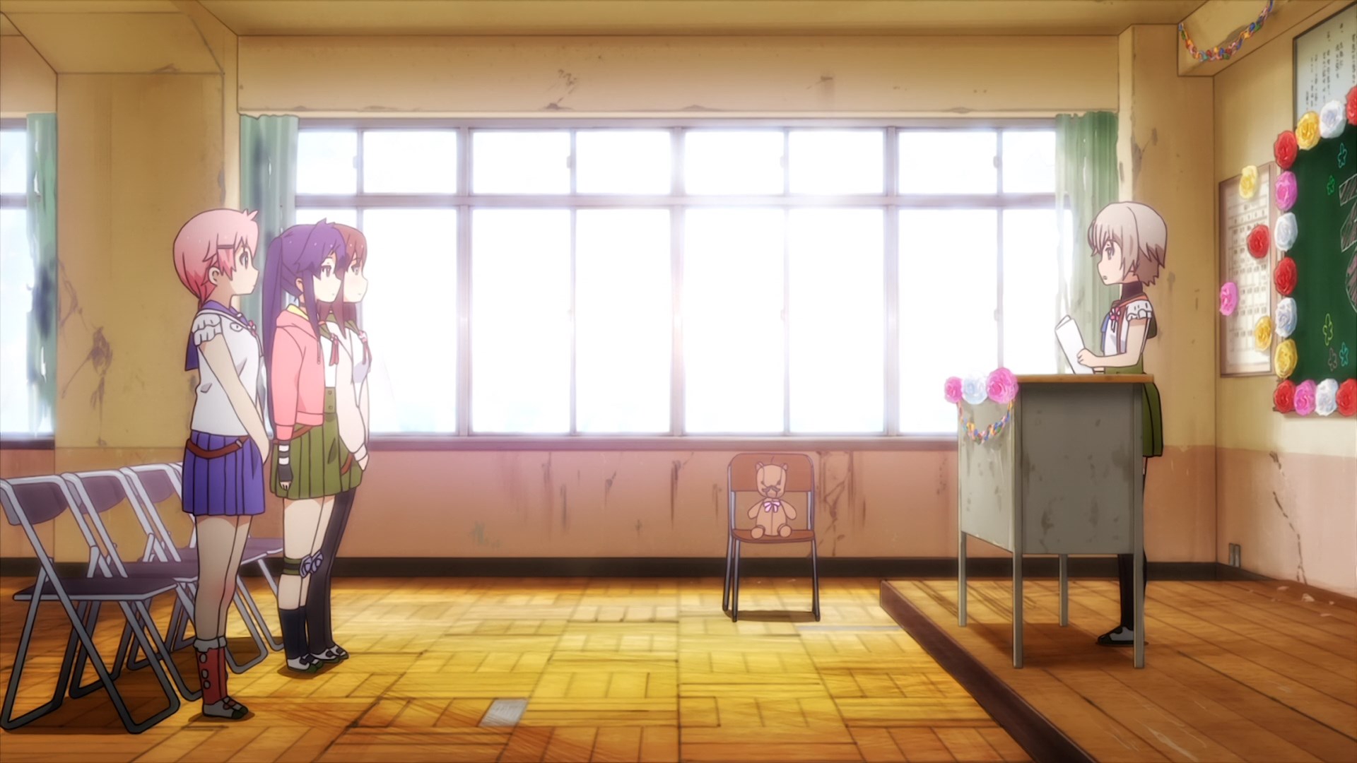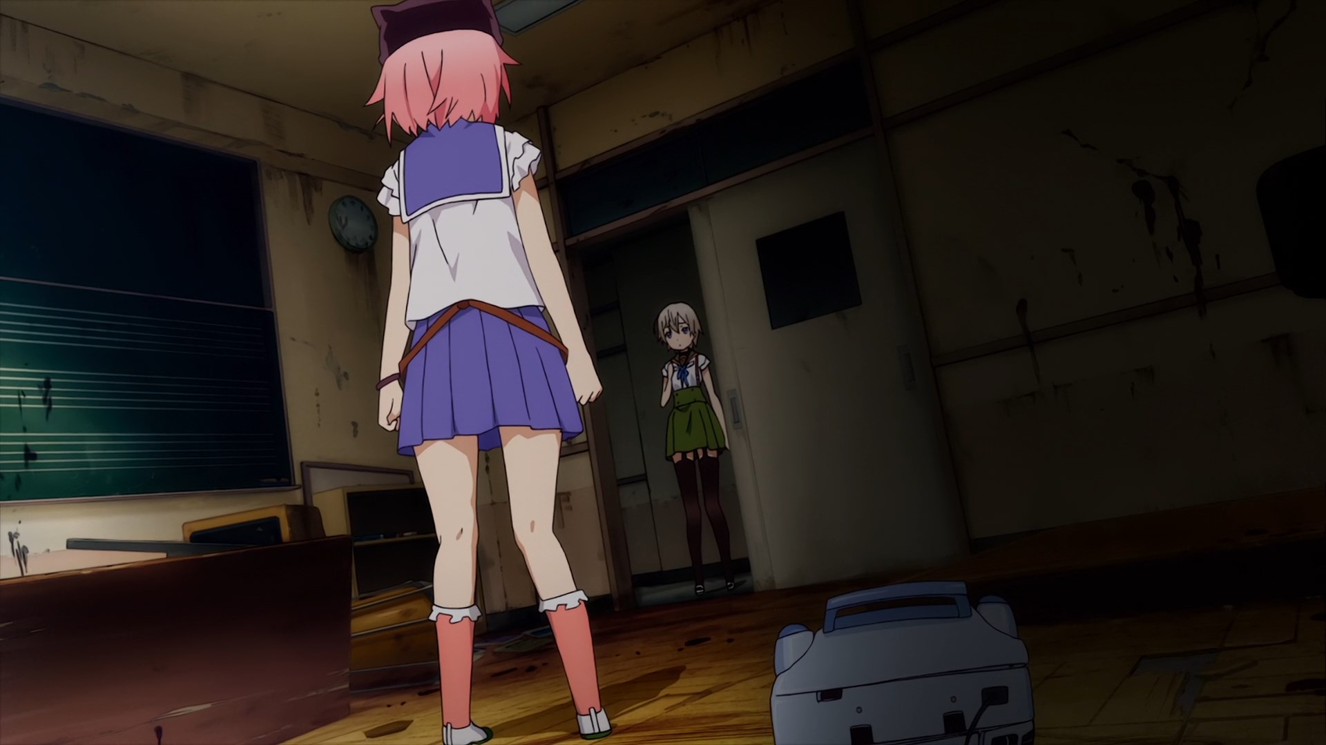 Очень странное произведение, взять слайсик с милыми девочками и поместить его в центр зомби апока звучит интересно, но вышел хуевый винегрет из слабо сочетающихся вещей, слабая режиссура и прописка, они живут в школе которую толком не исследовали, школа какая-то непростая и обустроена для того чтобы в ней можно было комфортно жить в условиях кризиса, на крыше огород, солнечные панели и электрогенераторы, заборник дождевой воды с помпой очистки, все на 100% автономное, в подвале убежище/бункер, в который вообще никто никогда не ходил, в самой школе можно найти документы о биологическом оружии и эпидемии, которая очевидно в их городке и разыгралась. Лор раскрывается очень плохо и как бы мимоходом, на переднем плане слайсобыт или потужная драма, параллельно еще педалятся темы которые я в прошлых постах описал.