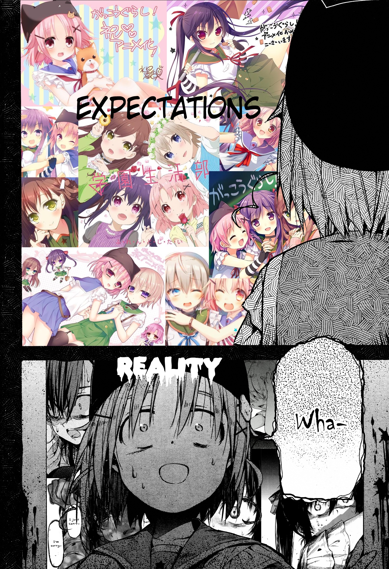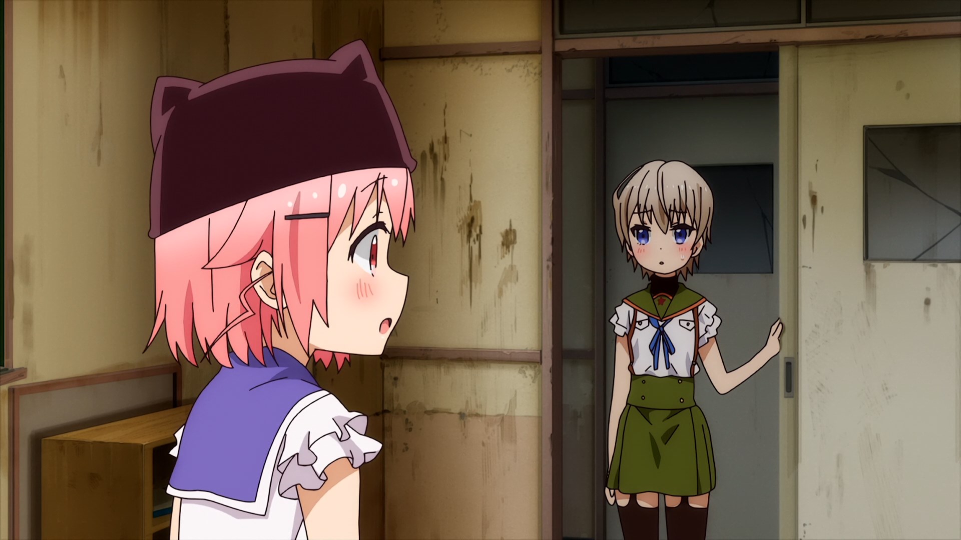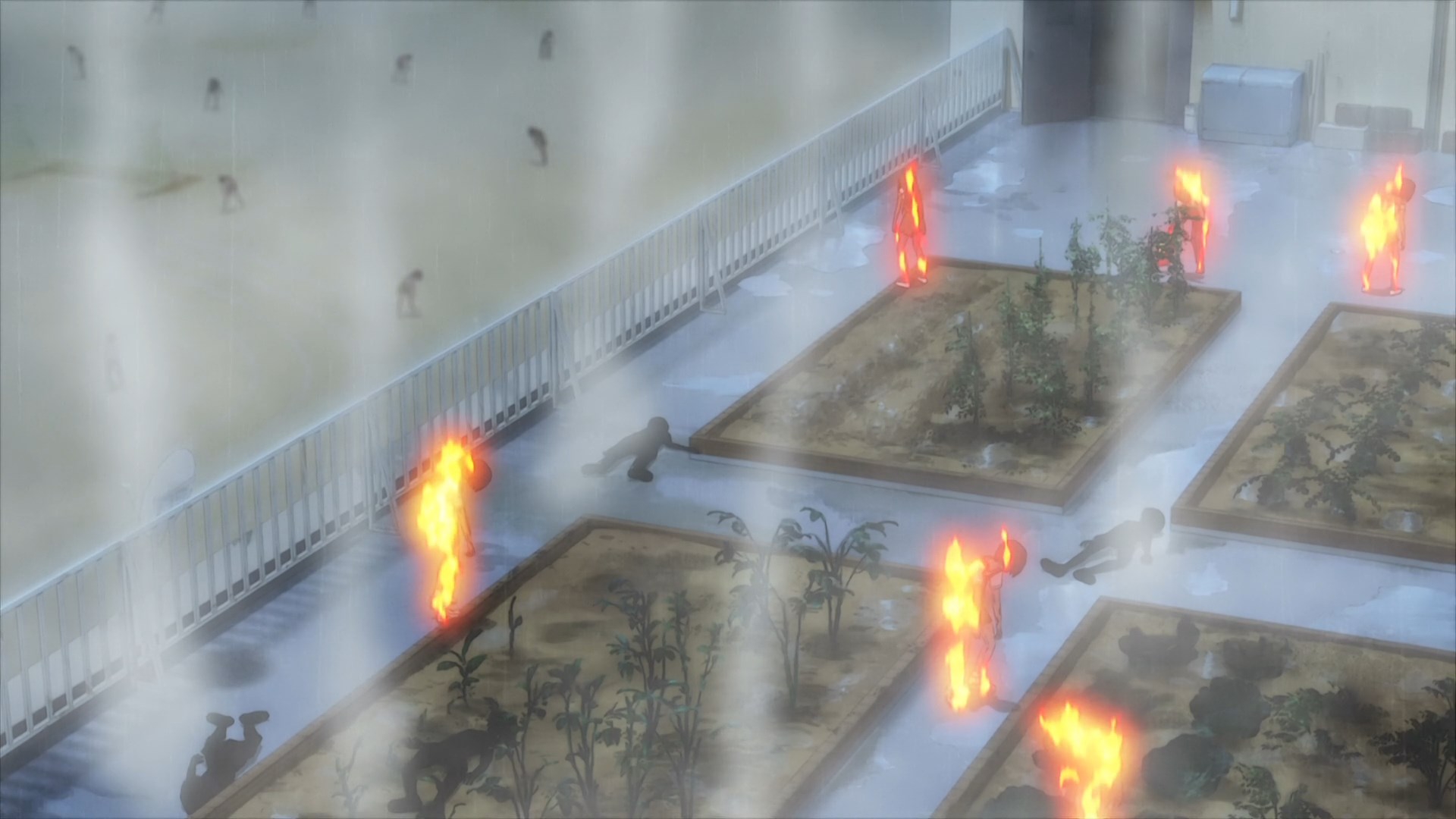 Очень странное произведение, взять слайсик с милыми девочками и поместить его в центр зомби апока звучит интересно, но вышел хуевый винегрет из слабо сочетающихся вещей, слабая режиссура и прописка, они живут в школе которую толком не исследовали, школа какая-то непростая и обустроена для того чтобы в ней можно было комфортно жить в условиях кризиса, на крыше огород, солнечные панели и электрогенераторы, заборник дождевой воды с помпой очистки, все на 100% автономное, в подвале убежище/бункер, в который вообще никто никогда не ходил, в самой школе можно найти документы о биологическом оружии и эпидемии, которая очевидно в их городке и разыгралась. Лор раскрывается очень плохо и как бы мимоходом, на переднем плане слайсобыт или потужная драма, параллельно еще педалятся темы которые я в прошлых постах описал.