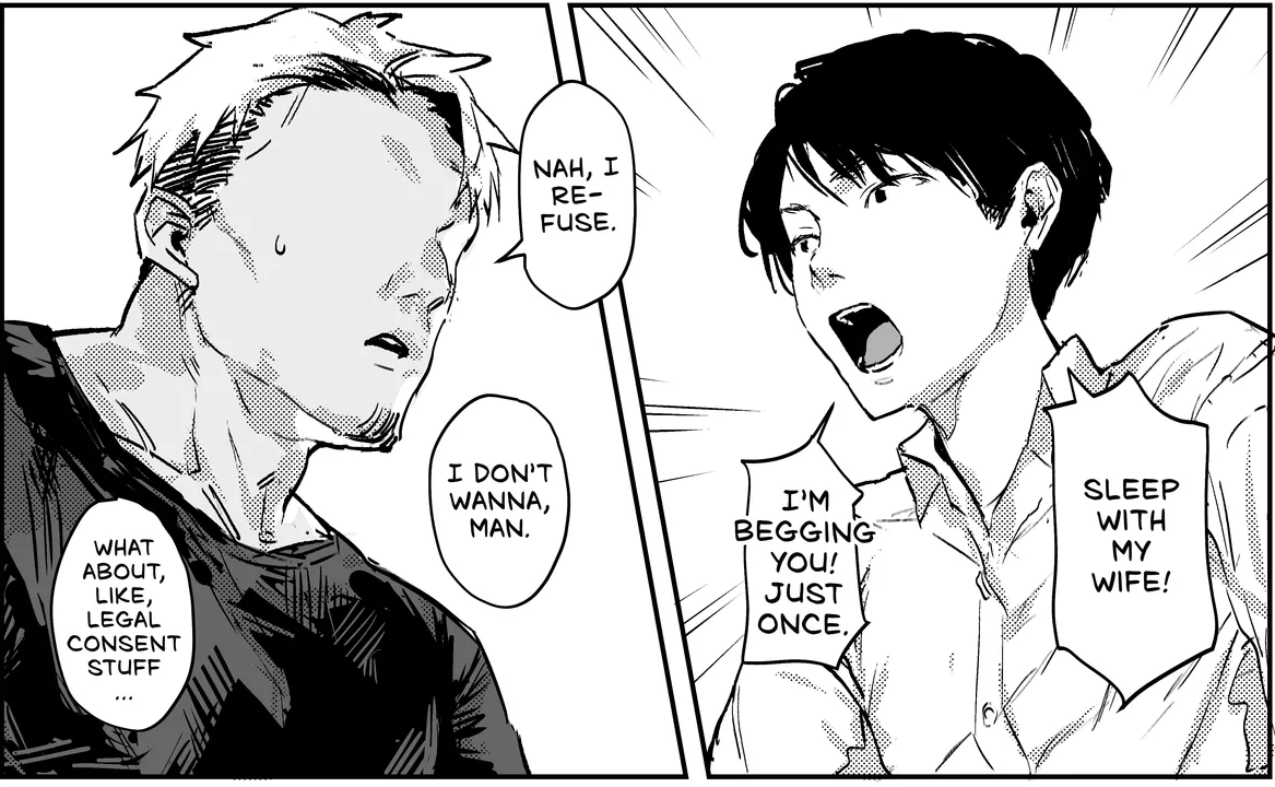 Тут по правилам признание в любви должно было быть, но авторку куда-то не туда понесло и получилась максимально ебанутая попытка подложить под чедика свою подругу.