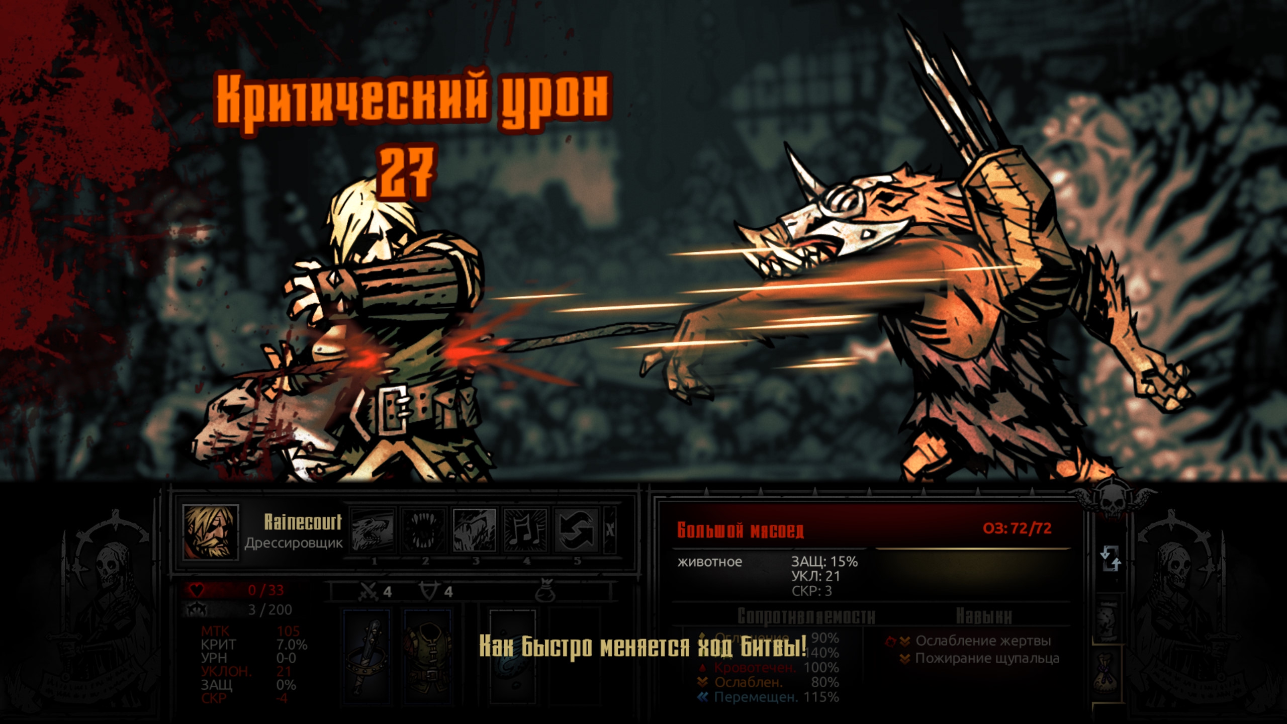 >>1083853 Первым ходить хорошо, но враги всеравно потом ебать будут, если не успеешь вынести. Хорошо конечно самого опасного бы минусануть. Я когда первый раз с этим хрюнделем встретился, я ахуел. Он первой же атакой кританул по здоровому персу где-то на 50 урона. И вот эту тварь, которая стоит сзади, фиг вынесешь за ход.