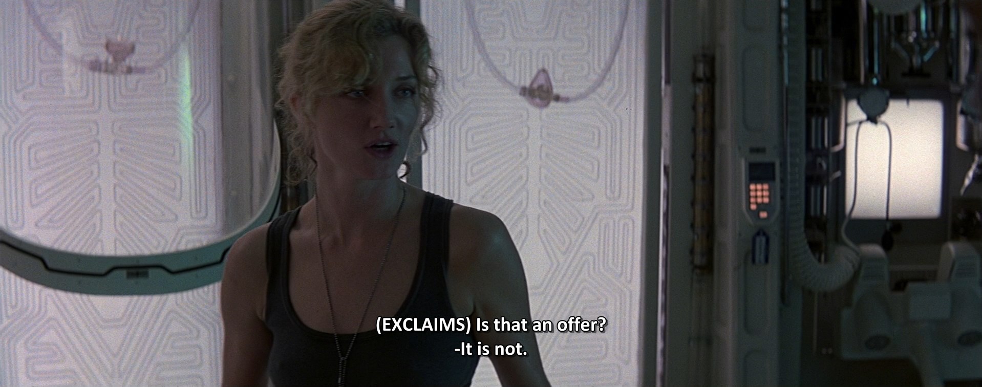 Всё это звучит как годный НУ ЧТО ЖЕ ВЫ СЕБЯ НЕ БЕРЕЖЕТЕ подпивас и технически две с половиной сцены в космосе с экшоном сделаны очень грамотно и весьма балдёжные, но между ними лютый би-муви трешак с этими дебилами, когда челы полторы минуты молча смотрят в комп/иллюминатор, неуклюже вставленные библейские мотивы и под конец на 20 минут вообще пошел слешер с поехавшем хуилой с другого корабля Я СЕМЬ ЛЕТ БЕСЕДОВАЛ С БОГОМ. ОН ПОВЕЛЕЛ МНЕ ЗАБРАТЬ ВСЕХ НА НЕЕБЕСА ояебу ещё и картинку максимально плющит.