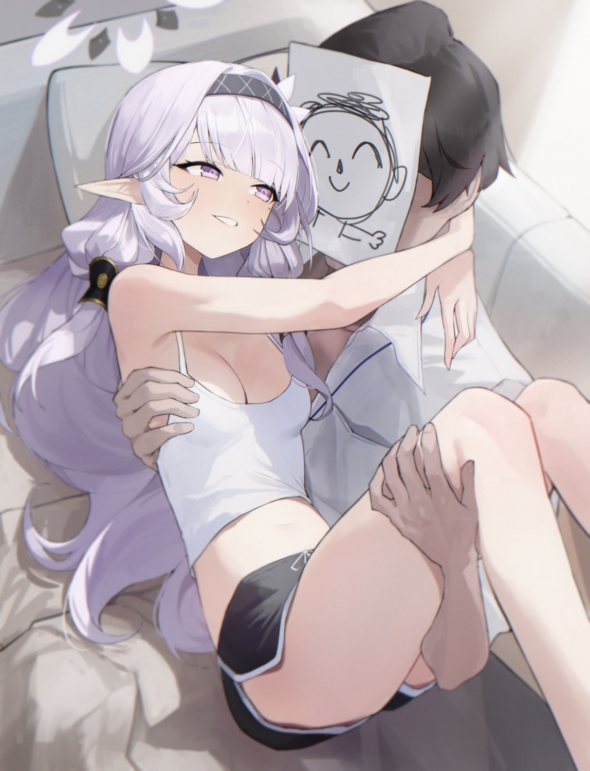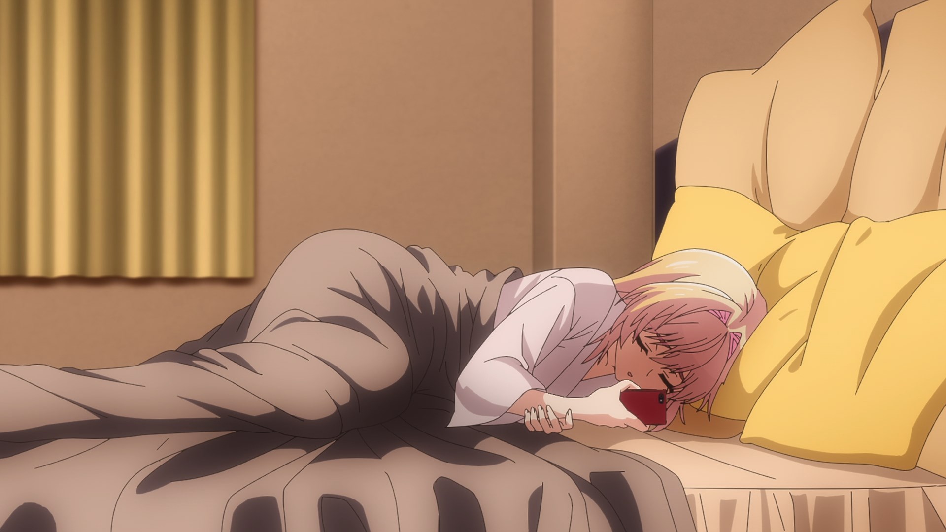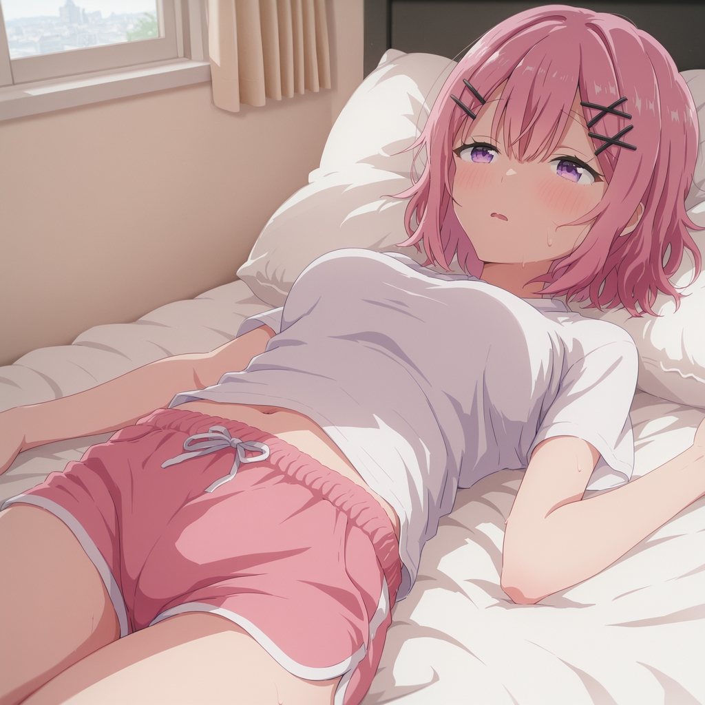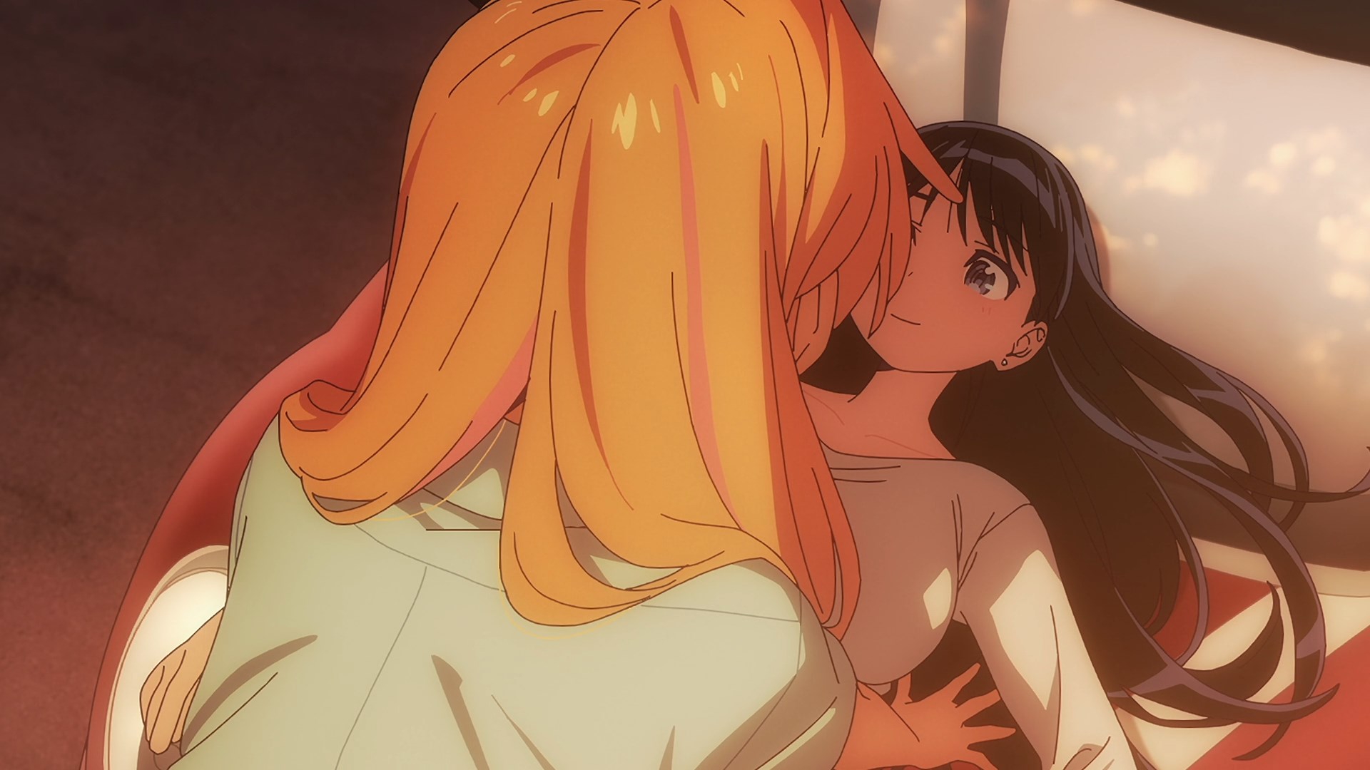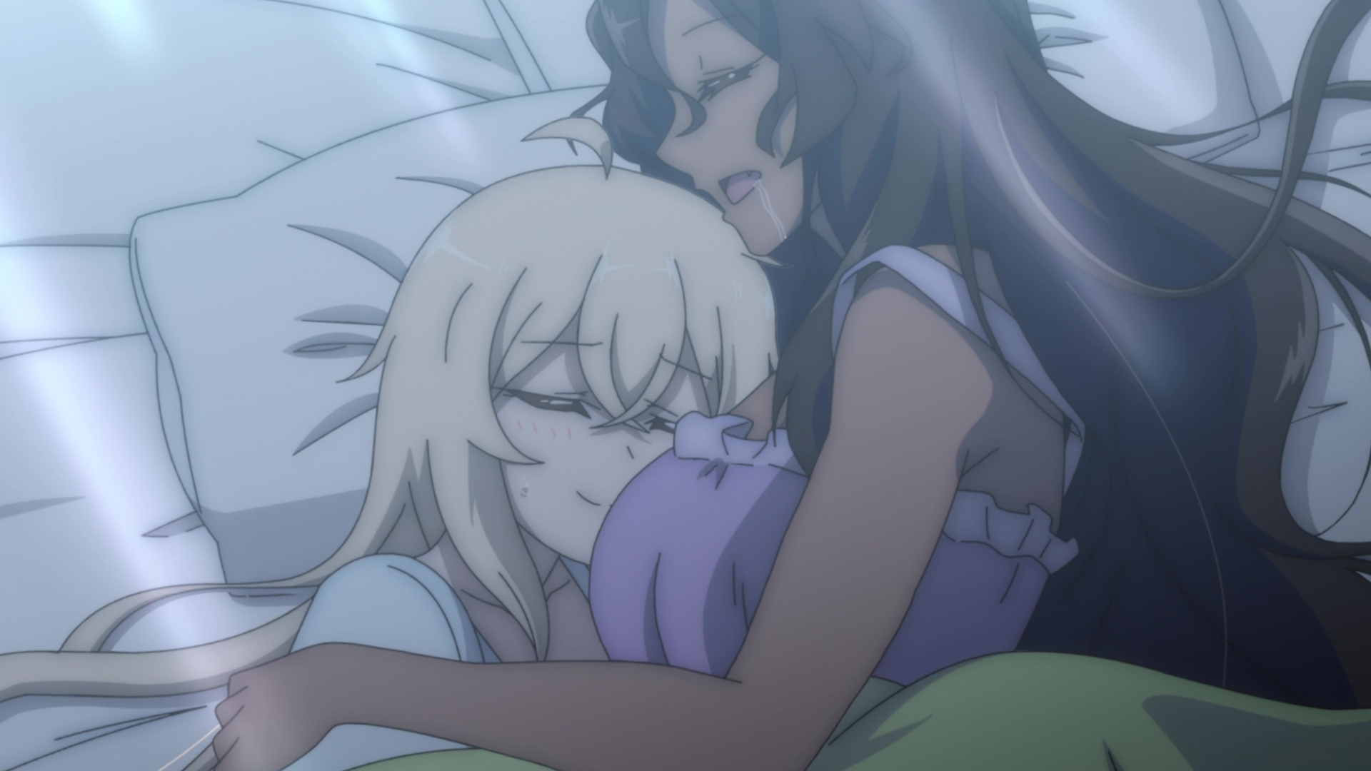 >Wait, but then how was I supposed to get the lights? I felt around for buttons on the bed and tried them one by one. One turned on music, another turned on or off weird mood lighting. I finally managed to kill the lights and lay down too. Then, just as I did, Kaho-chan flopped on top of me. Whoa! >She lay her head on top of my stomach and made a little purring noise in her throat. With how light she felt, she really was like a cat. >Just then, Kaho-chan mumbled in a voice like she was already dreaming, “Your tummy’s nice and soft, Rena-chin… You’d make a good pillow to sleep on.” >“Uh, really? Well, thanks for the compliment…?” Was this a stealthy way of calling me fat? >I could feel her grinning. “Gotcha,” she said. As she was using my stomach for a pillow, I worried that she could hear my heartbeat.