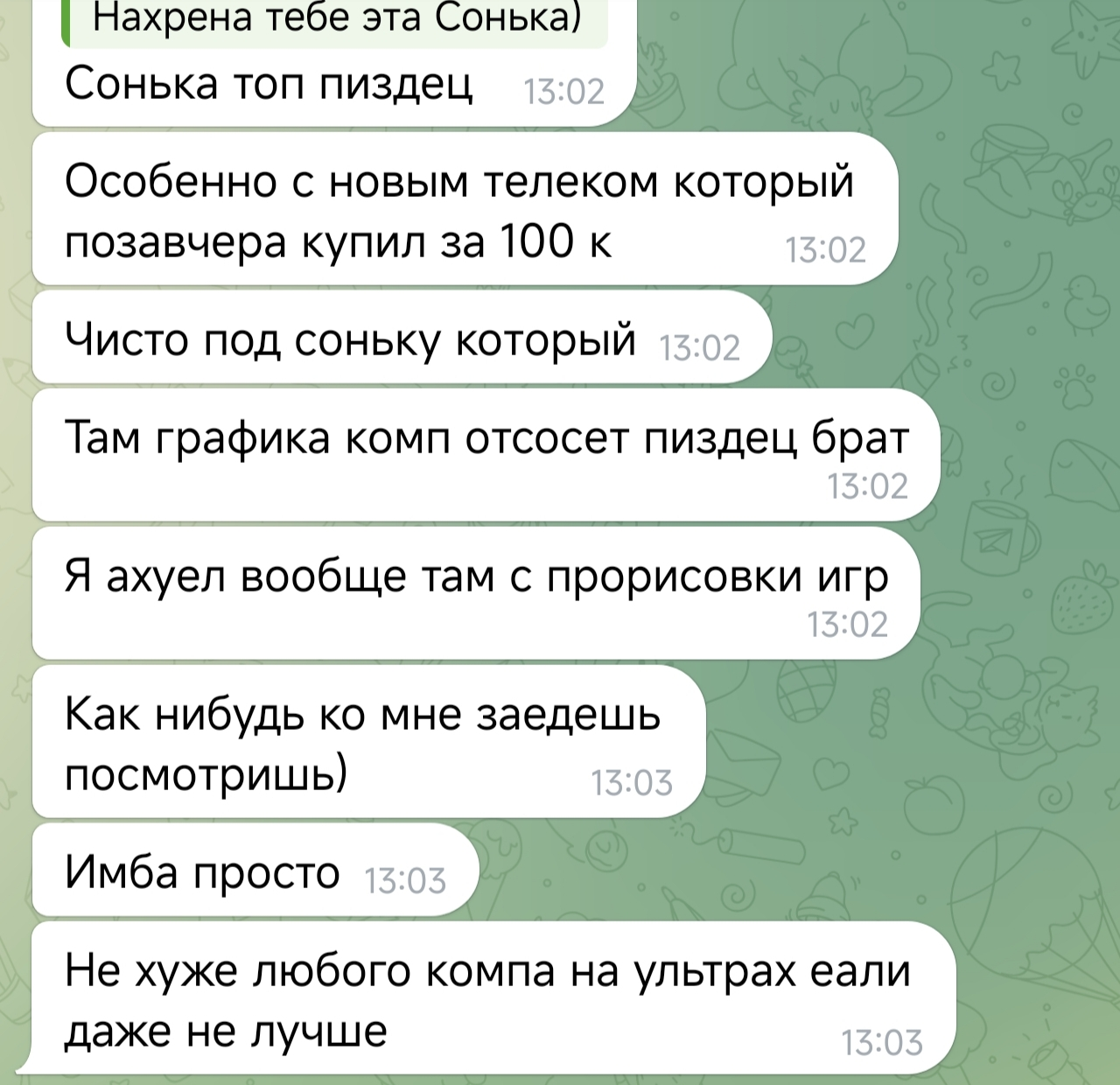 >>1088867 Чему радоваться? >, а спарринг здорового человека без перегибов. Ещё и обнимашки устроили под конец, можно только порадоваться за молодёжь, трогающую траву - ещё не всё потеряно. Вот тут верим. >Зумеры организовали бойцовский клуб и терроризируют краснодарские дворы >Жители сразу нескольких районов Краснодара жалуются на подростков, по вечерам устраивающих драки во дворах, где нет камер. В «бойцовский клуб» входят примерно 30 подростков от 12 до 16 лет. >Жестокие избиения снимают на видео и выкладывают в сеть. От действий зумеров пострадали несколько человек, среди которых минимум четверо детей. >14-летнюю девочку избили до потери сознания — перелом носа, выбиты зубы, гематомы по всему телу. Мужчину, который сделал подросткам замечание, увезла скорая — после удара он на время потерял память. >«Тайлером Дёрденом» у зумеров считается 16-летняя девочка по имени Лиза — у неё нет передних зубов, стрижка каре, а ещё она очень любит драться. Практически все участники, включая саму Лизу, занимаются единоборствами. >Родители пострадавших написали заявления в полицию и планируют идти в СК.