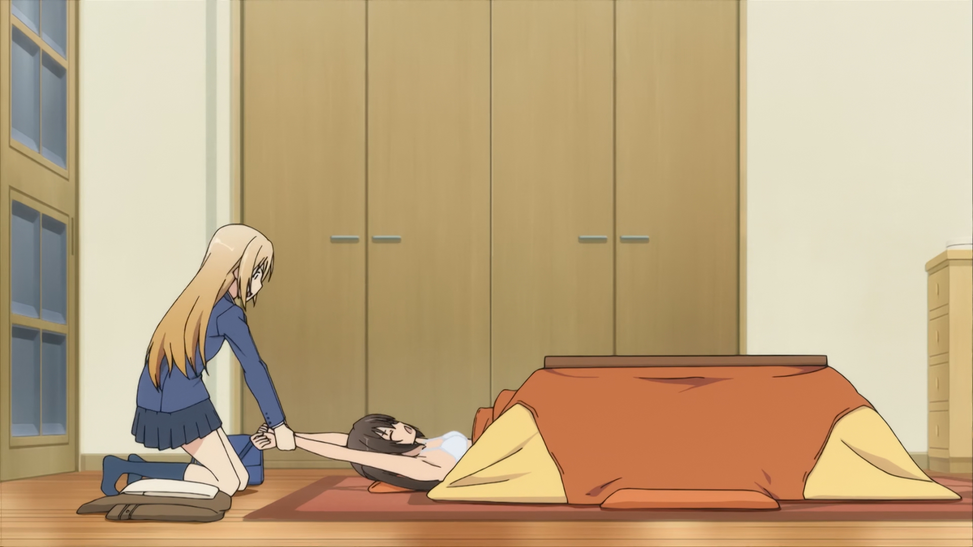 >Miyagi acted without giving me an order and suddenly took off my necktie while undoing the third button on my blouse. >And without asking me, she brought her face towards my now exposed cleavage.