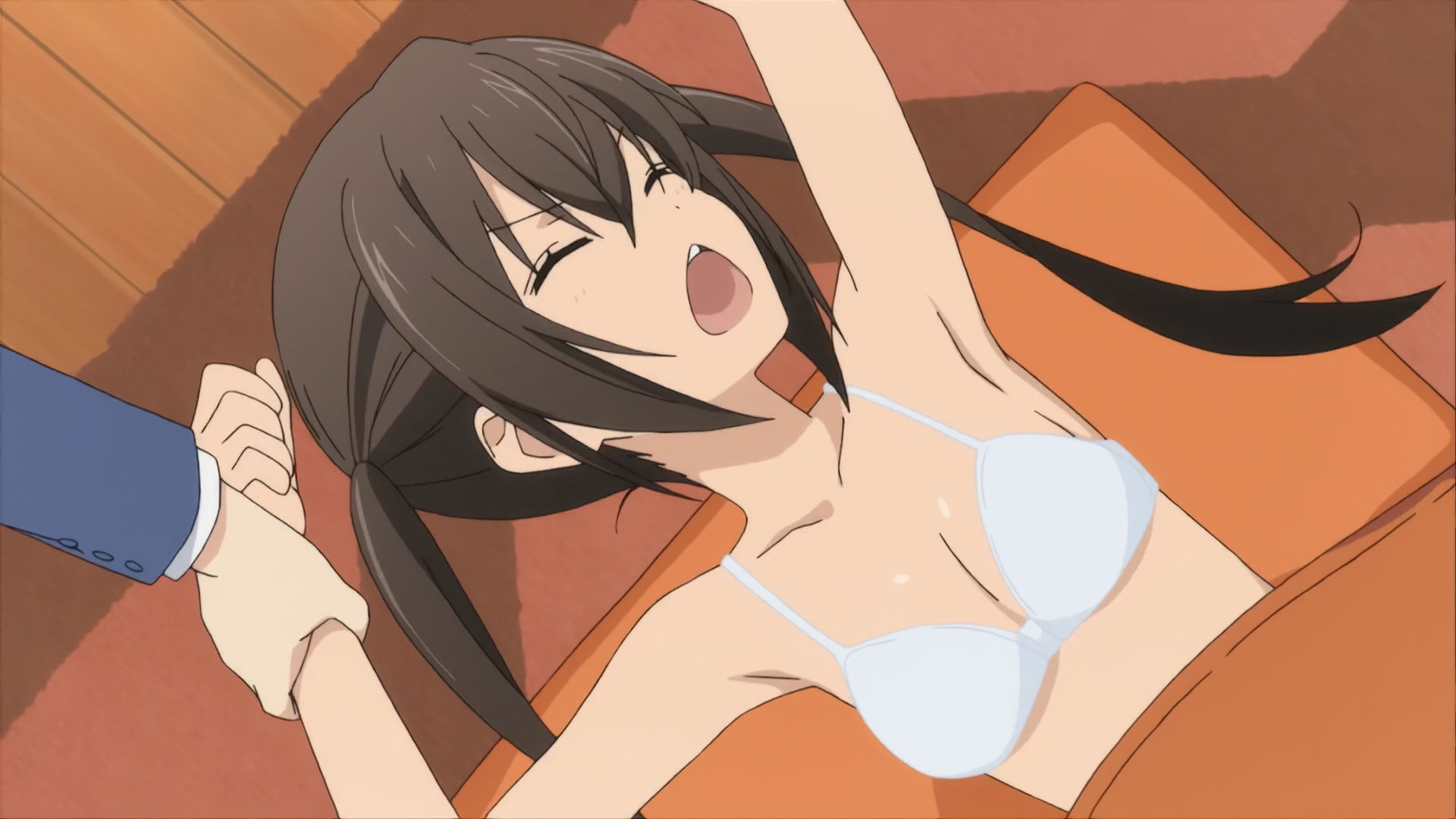 Второй раз подразнили лифчиком через мокрую блузку, и даже немного показали. Но как же хуево он прорисован. Нужен был крупный план, чтобы рассмотреть всякие девчаьи завиточки на лифане.