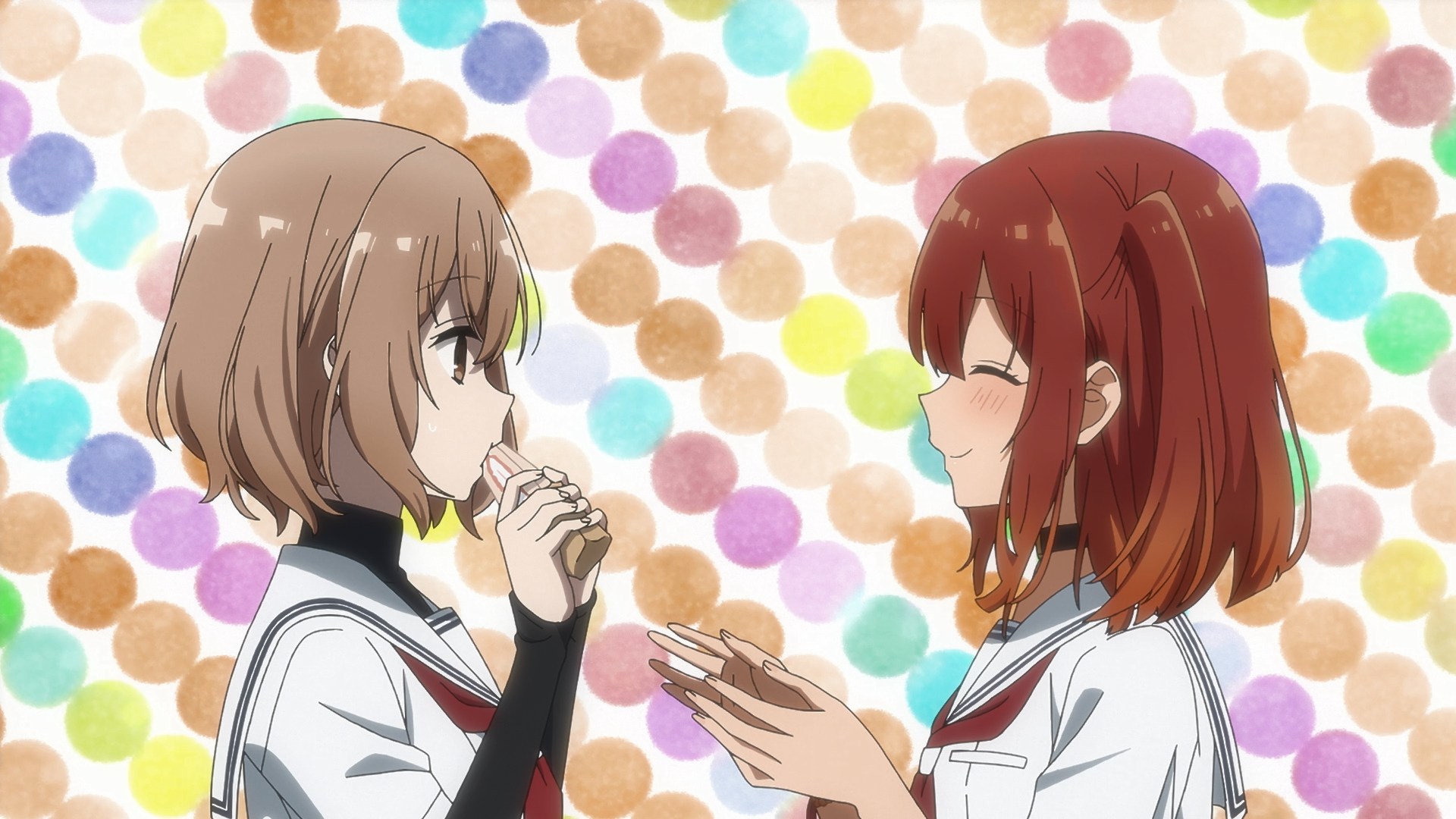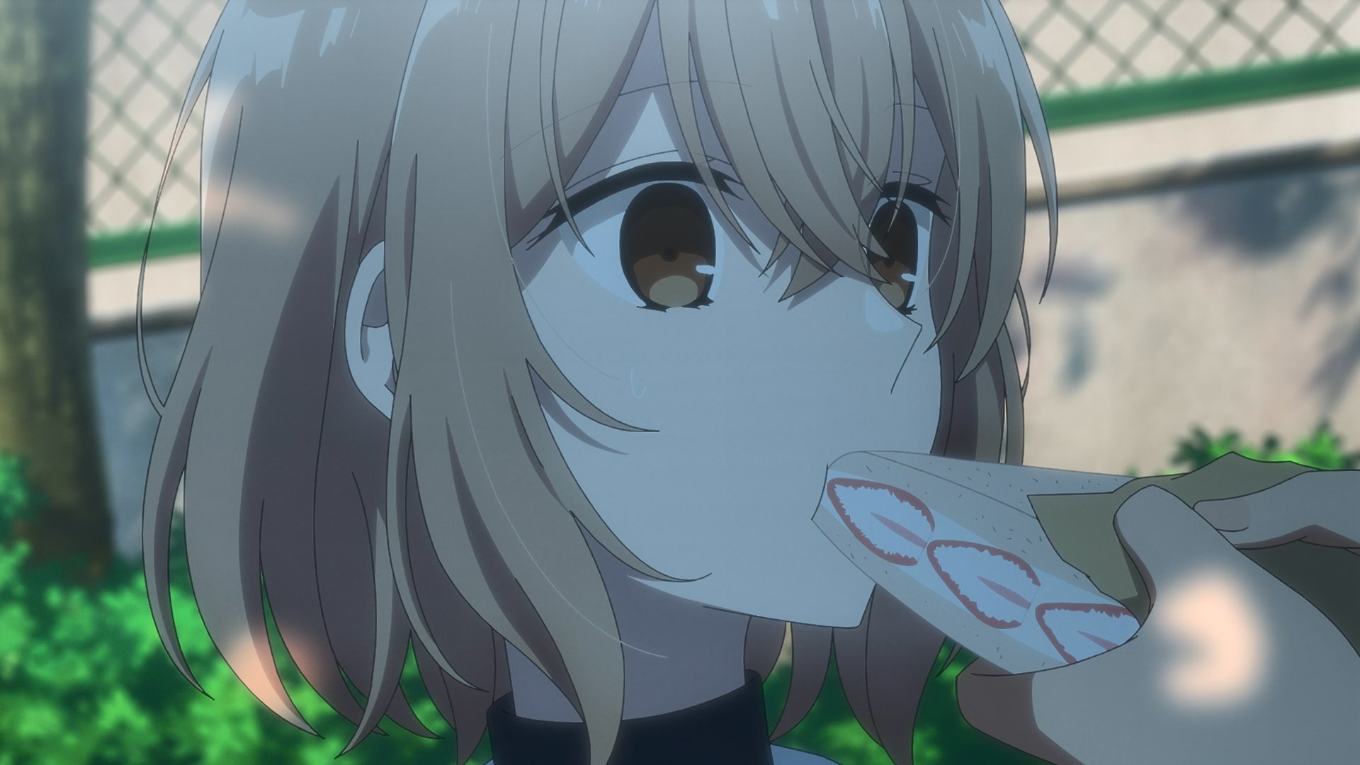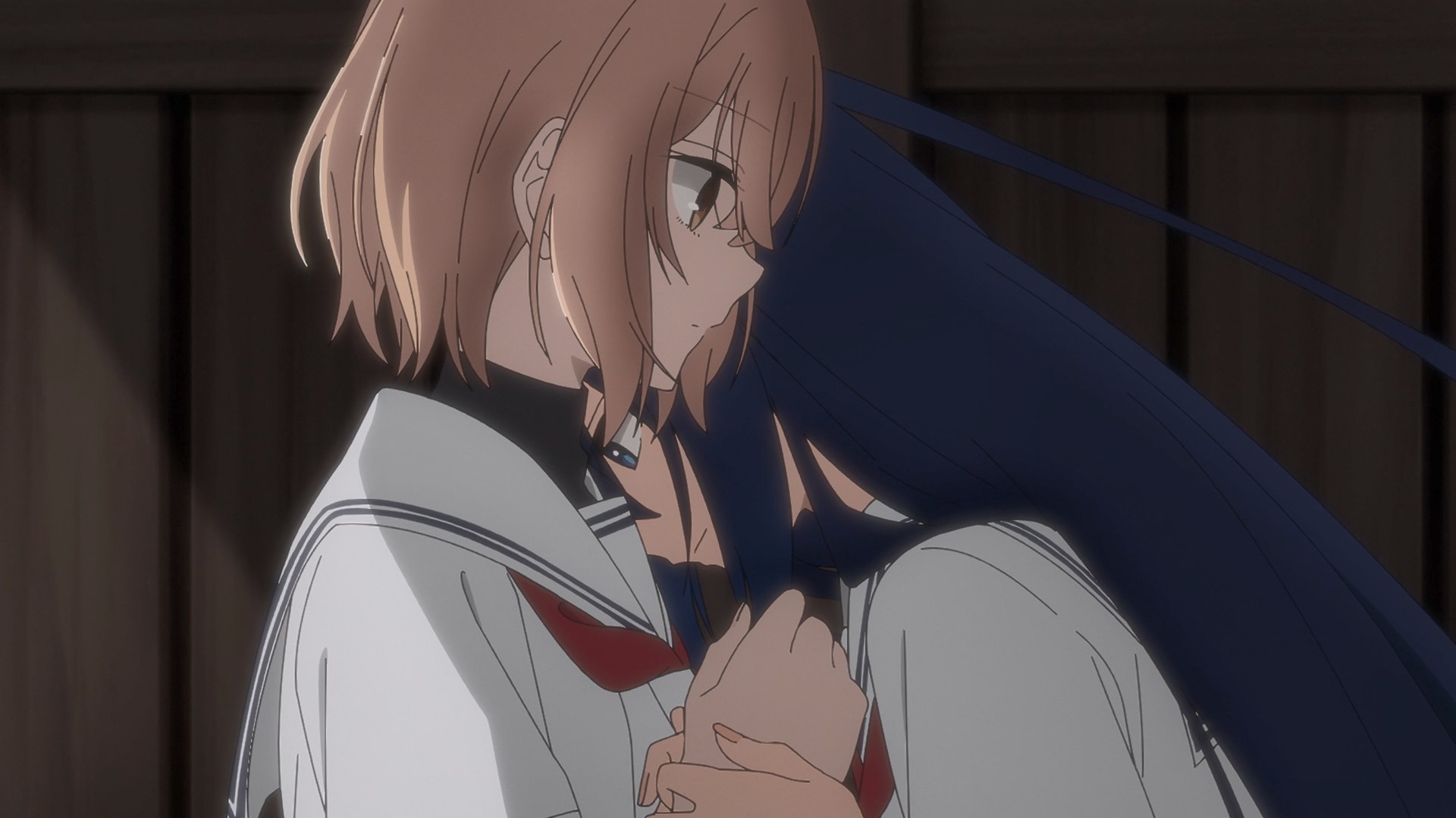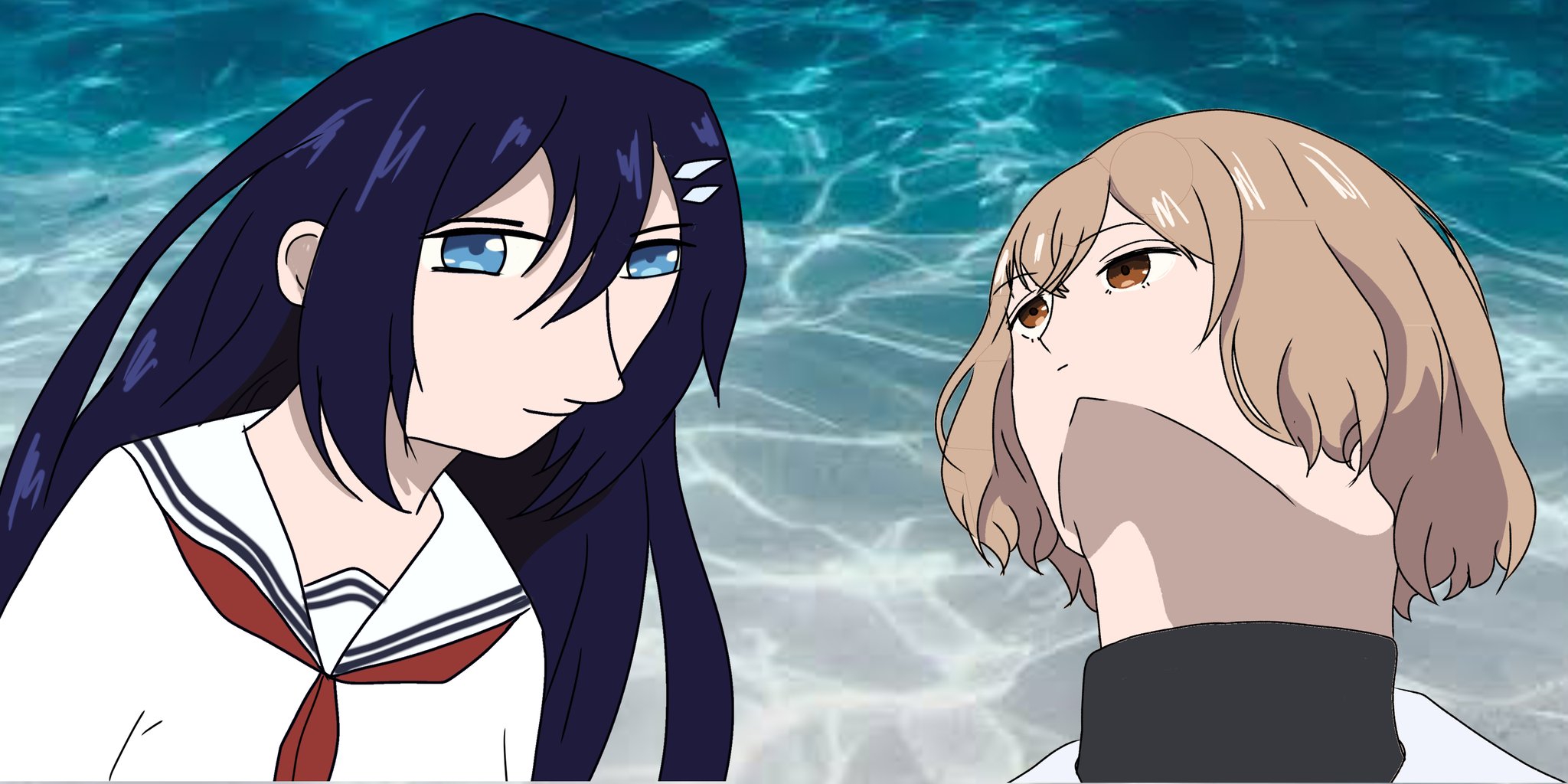 >I brushed my lips against a spot right below her ear, and the sound of my own heartbeat grew louder in my head. >I pressed my lips firmly against her skin, attempting to drown out the sound of my pounding heartbeat. Just as I was about to bite down, the sensation of her soft flesh beneath my teeth snapped me back to my senses, and I quickly pulled away. >As I hastily scrubbed my lips, as if trying to erase the memory of what had just happened, I felt a tug on my blouse. >「What were you doing?」