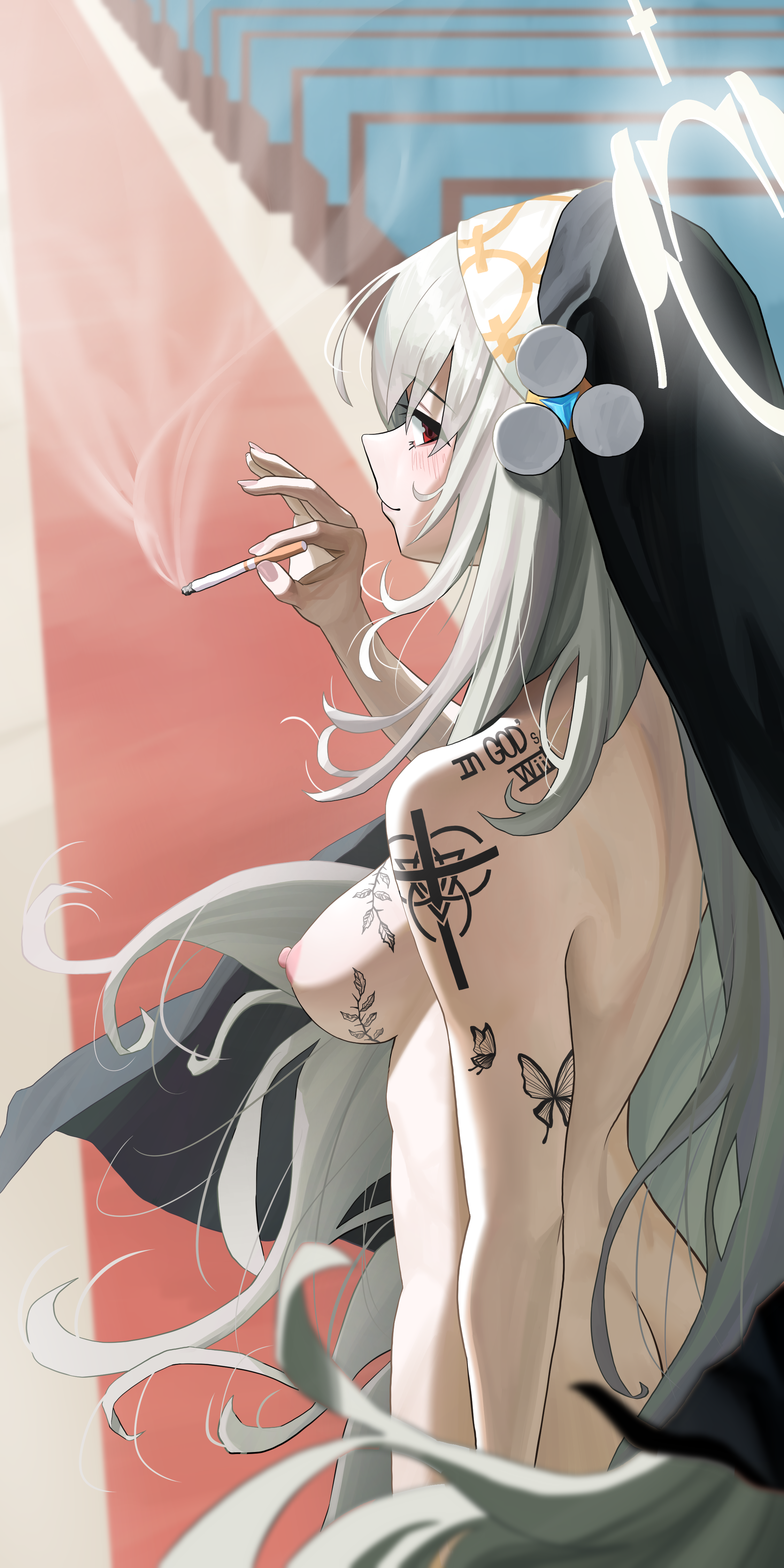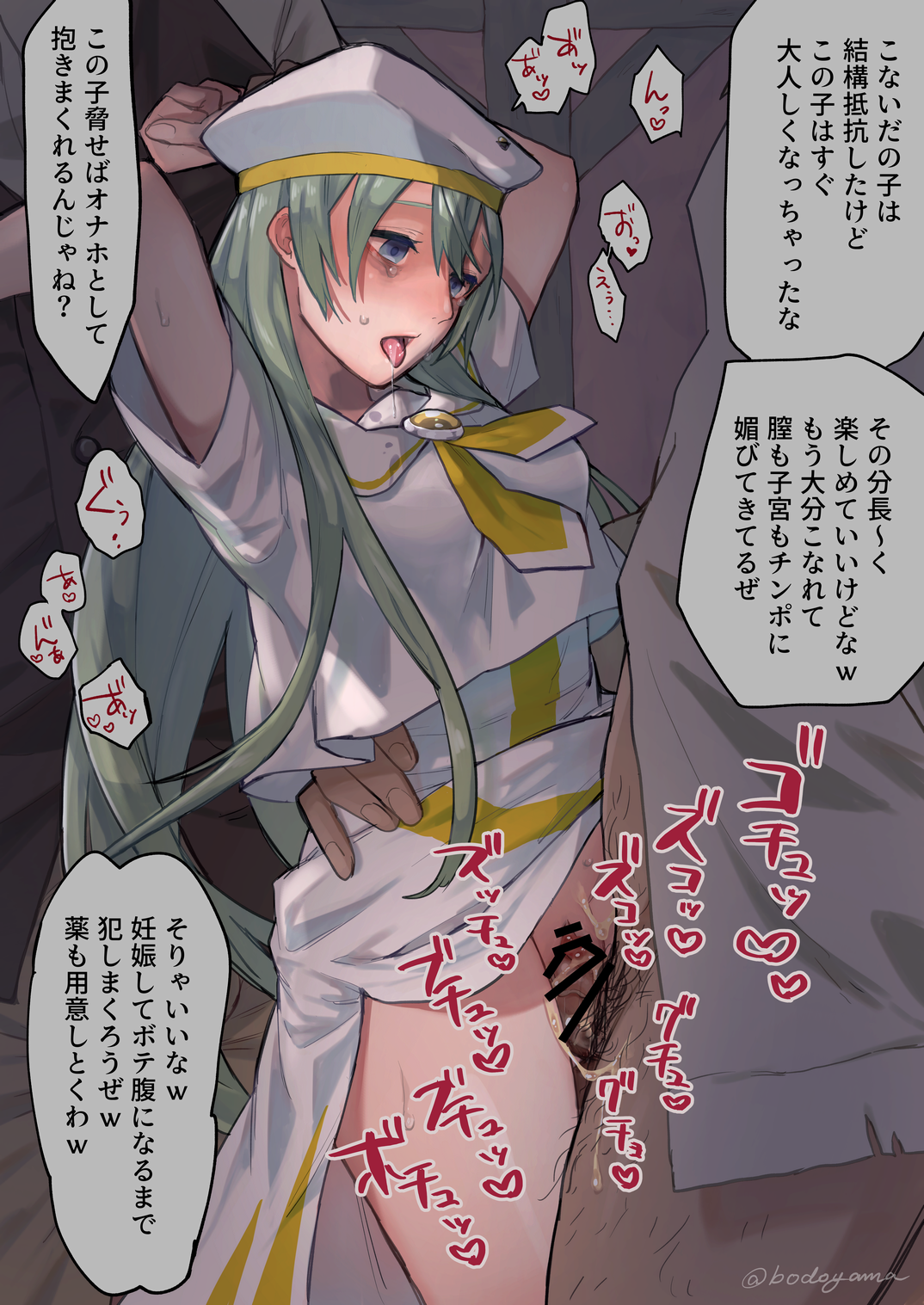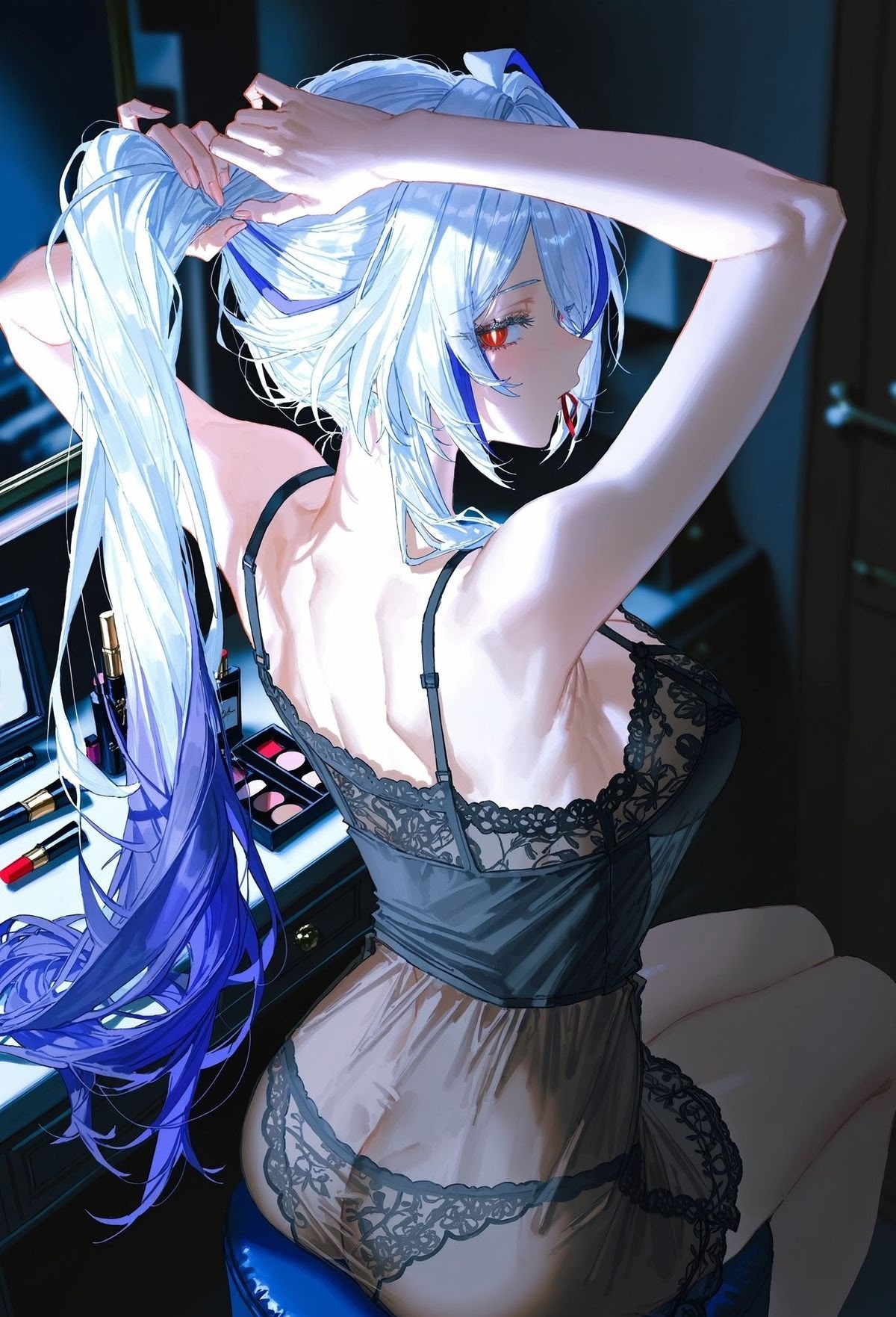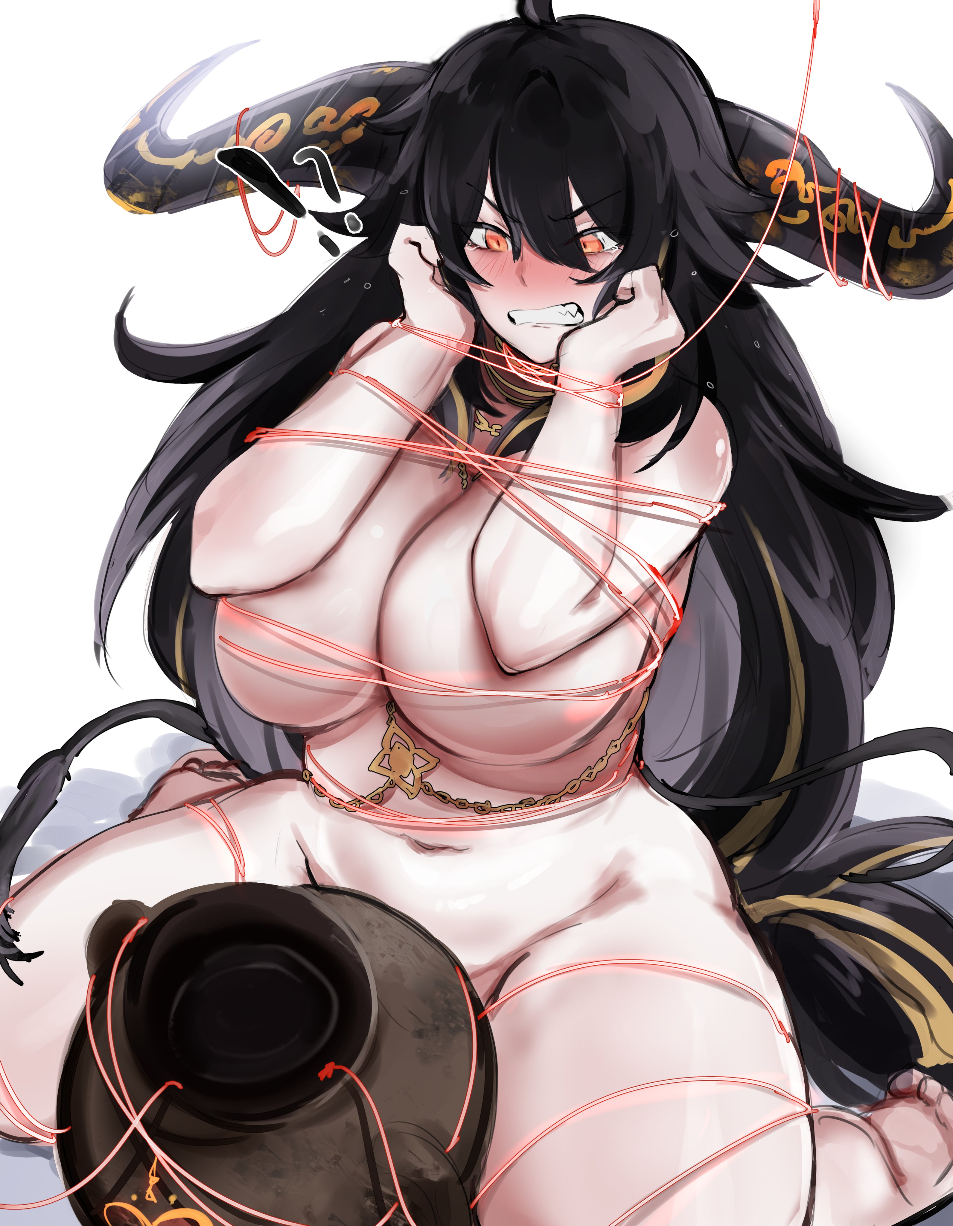 >I brushed my lips against a spot right below her ear, and the sound of my own heartbeat grew louder in my head. >I pressed my lips firmly against her skin, attempting to drown out the sound of my pounding heartbeat. Just as I was about to bite down, the sensation of her soft flesh beneath my teeth snapped me back to my senses, and I quickly pulled away. >As I hastily scrubbed my lips, as if trying to erase the memory of what had just happened, I felt a tug on my blouse. >「What were you doing?」