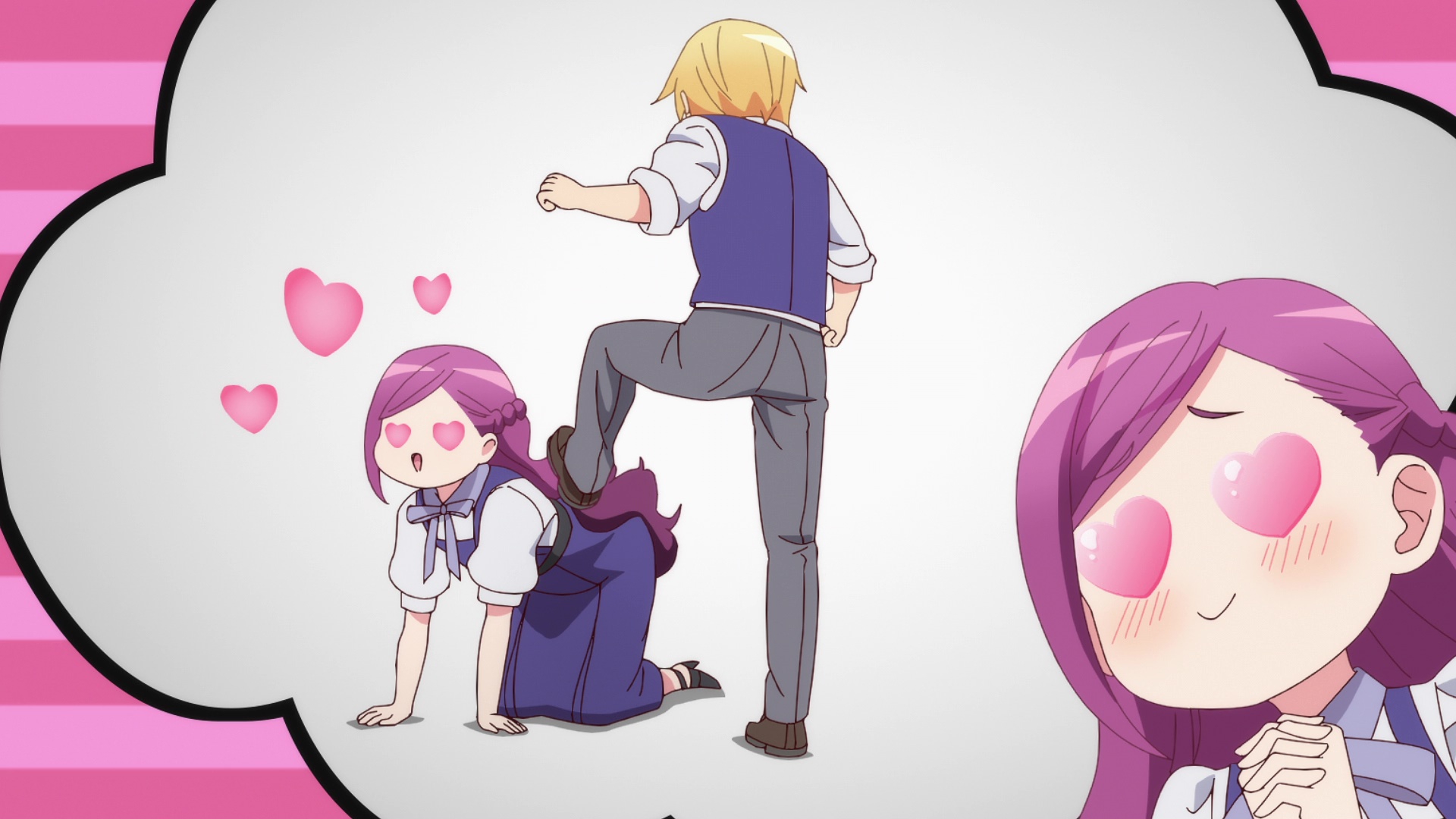 Смотрел первую половину сериала, уже после первых разборок героям становится просто нехуй делать. Проскроллил до конца тайтла и там какая-то рандом школьная самодеятельность типа ходим вместе по ТЦ/друг другу в гости/школьный фестиваль. При чем тут романтика, проигравшие героини, вообще непонятно.